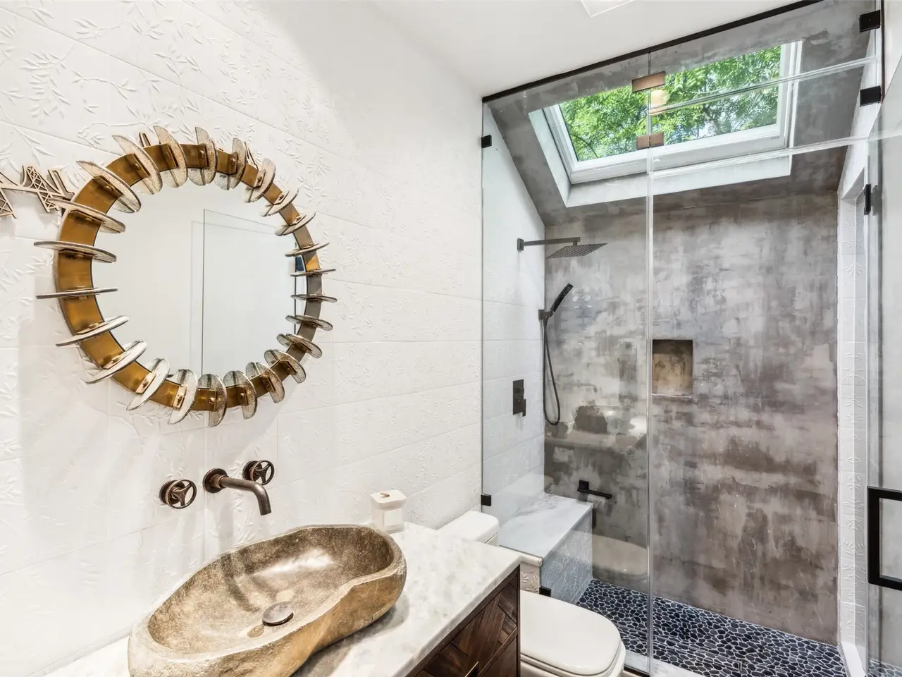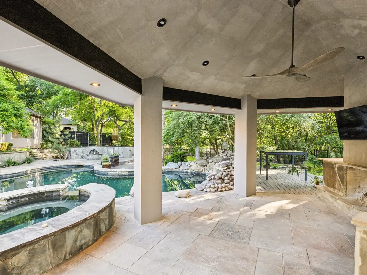 Upstairs remodel just completed September 2025 creating an additional bedroom or flex room, full bathroom, half bathroom and a dedicated game room! One of the most incredible properties in all of Plano! Rare find on a gorgeous creek lot with mature trees on a cul-de-sac in the coveted and highly sought-after Shoal Creek neighborhood of West Plano. Remodeled and reimagined for 2025 living. Set on a lush landscaped wooded lot, this remarkable 6,137 square foot estate showcases extensive updates and expansive indoor-outdoor living, creating a home that is truly made for entertaining. Step through the grand entryway into light-filled interiors featuring three generously sized bedrooms on the main level, including a serene primary suite and a private home office. At the heart of the home, the fully renovated gourmet kitchen impresses with custom cabinetry, Viking and Thermador appliances, sleek countertops, and sweeping views of the backyard oasis. The adjacent living and dining areas flow effortlessly, offering three distinct living spaces that invite both relaxation and celebration. Beautiful flooring throughout the main level enhances every room, while unique touches like a private patio off the primary bedroom and two additional downstairs bedrooms create a seamless connection to the outdoors. Upstairs has been brilliantly reimagined to add a dedicated game room, a versatile flex room that can serve as bedroom number five with a full bath or use it as a media room space, plus an additional half bath for guests off of the game room. This level also features a charming reading loft, built-in bookcases, a workout space, or creative play areas and lots of storage. Every inch of the home has been designed for both fun and function. Outside, the lushly landscaped grounds are framed by mature trees and feature a sparkling pool with a swim-under waterfall, outdoor entertaining area, fireplace, multiple seating areas, and a grassy play space, perfect for summer parties or intimate evening gatherings.