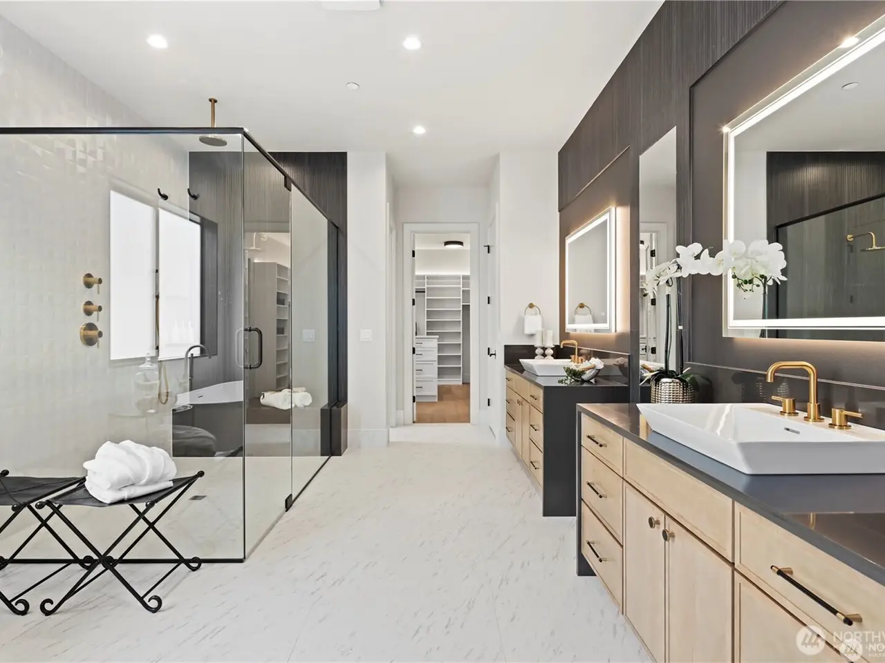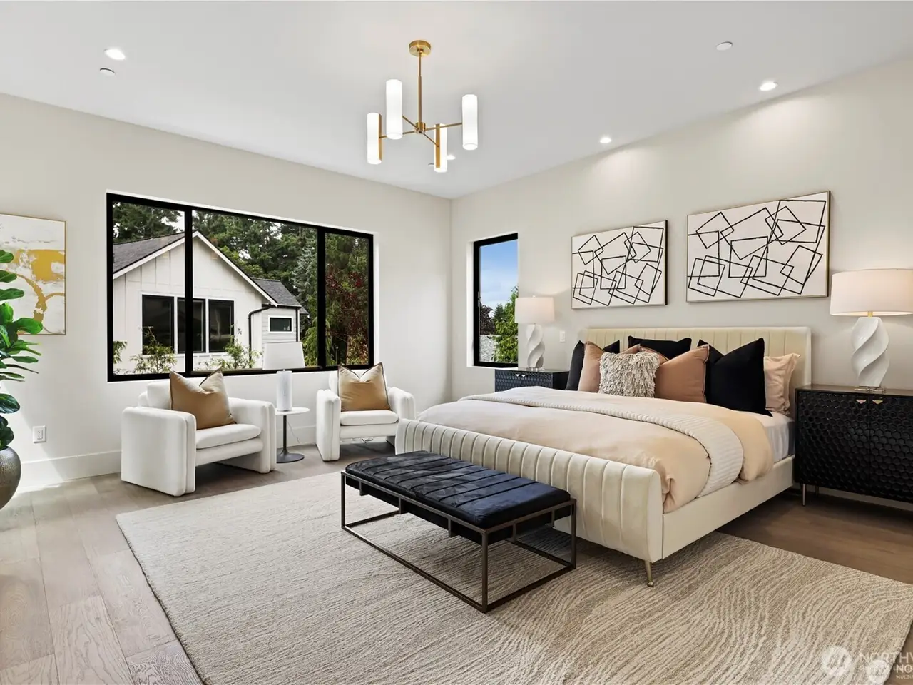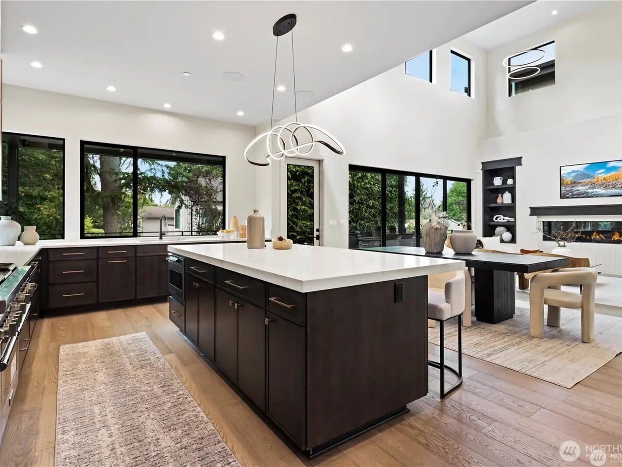 JUST COMPLETED NEW CONSTRUCTION! Grand Primary Suite on Main Floor w/Level Entry! New 5 BD/5 BA custom home by premier builder Serena Construction, sophisticated luxury in every detail. Coveted central Houghton location! Open concept blends Great Room w/85 fireplace, dining area w/entertainer’s buffet & gourmet kitchen w/high end appliances & walk-in pantry. 480 sqft outdoor covered deck w/heaters & speakers. Also on main, guest suite, office, laundry rm & mud rm. 3BD, 2BA on upper w/ bonus/media rm & 2nd laundry. Built-in gas-fueled generator, smart tech for lighting-heating-security, 2 gas furnaces & 2 heat pump/hot water heaters. Expansive 826 sqft 3-car garage & EV charging conduit. Solar panels & fully fenced back yard.