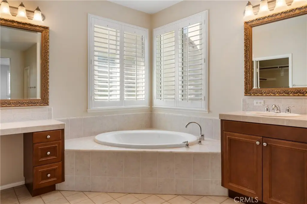Welcome to this beautifully maintained 6-bedroom, 4.5-bathroom home tucked away in a quiet cul-de-sac in one of Santa Clarita’s most desirable neighborhoods. Designed with both comfort and functionality in mind, this spacious home features hardwood floors, tile, and elegant shutters throughout the first level. The main floor includes a full bedroom and bathroom — perfect for guests or a Mother in law suite! — plus a convenient half bath for visitors. Upstairs, you'll find four generously sized bedrooms connected by Jack and Jill bathrooms, a loft, and a dedicated laundry room. The luxurious primary suite offers a retreat-like experience with a massive en-suite bathroom and dual walk-in closets. Additional highlights include a 3-car garage, tankless water heater, and a whole house fan. The backyard is a true oasis, featuring a lush garden with an impressive variety of fruit trees and vines — including figs, apples, lemons, blackberries, strawberries, and grapes. Located within a top-rated school district, this home offers a perfect setting for family living in a safe, vibrant community. NO MELLO-ROOS! A rare gem — come see it for yourself!