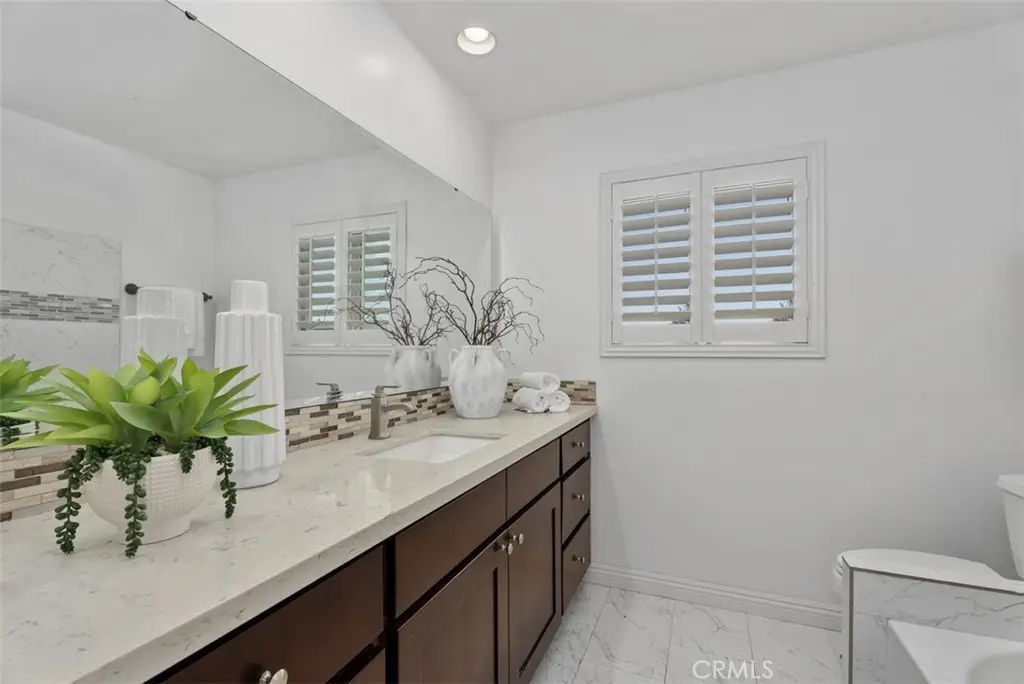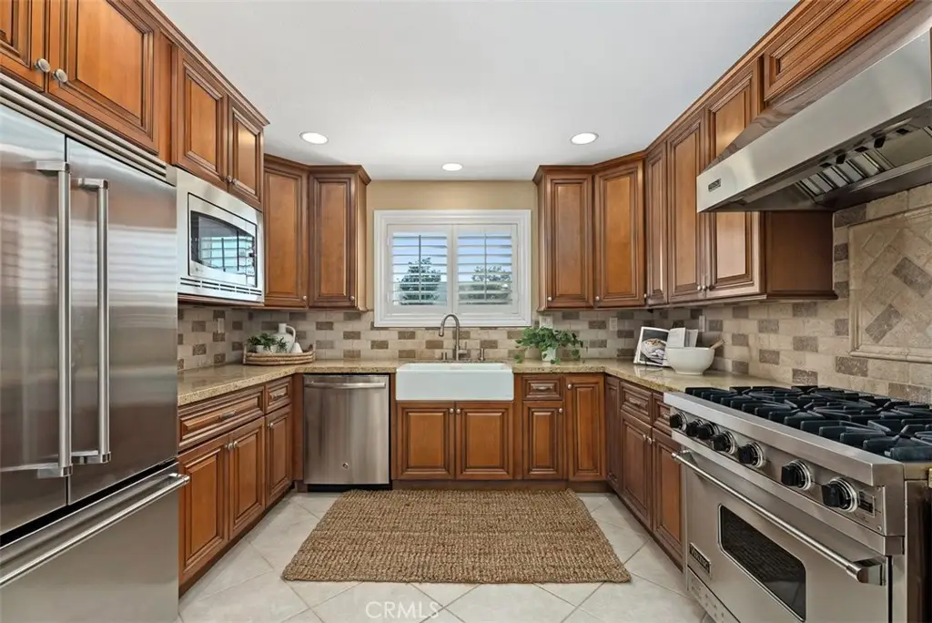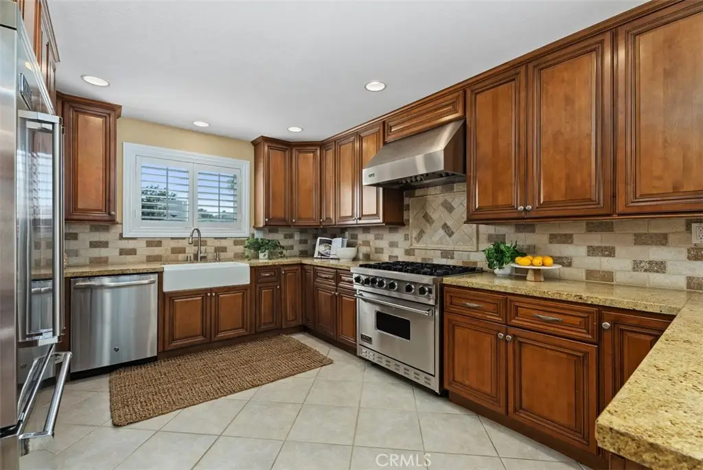 Perfectly situated on an oversized corner lot in the highly desirable community of College Park East, this charming tri-level home is waiting for you to arrive! This S&S built Plan 21 model offers a warm and inviting feel, with a practical floor plan designed for comfortable everyday living and entertainment made simple. Step inside to discover a beautifully remodeled kitchen, a true chef's delight! Featuring granite countertops, abundant custom cabinetry for storage, and a suite of high-end stainless-steel appliances, including a Viking Professional 6-burner gas range and refrigerator/freezer, a Kohler farmhouse sink, an over the counter microwave, full-size dishwasher, and a 40-bottle Uline wine refrigerator to complete this exceptional space. Adjacent to the kitchen is a separate dining area, perfect for intimate meals or gatherings. The home's unique tri-level layout provides distinct living zones. The upper level hosts a spacious living room, featuring a cozy fireplace and a built-in entertainment center, making it the ideal spot for relaxation. All three bathrooms have been remodeled, each with its own shower. The primary suite offers a serene retreat with his-and-hers mirrored closets. A generous downstairs bedroom with a walk-in closet and an attached 3/4 bath offers a perfectly private space for guests or multi-generational living. The spacious backyard and built-in BBQ ultimately make this house an entertainer's dream! Not to mention the RV-sized side lot, which currently houses a 10' x 12' shed painted to match the home's exterior. This versatile structure can be transformed into a home office, yoga studio, "man cave," or "she shed"--the possibilities are endless! Additional amenities include dual-pane windows, recessed lighting, and central AC. Located near local parks, dining, shopping, and access to the 405, 605 & 22 freeways. This property is part of the highly acclaimed Los Alamitos Unified School District.