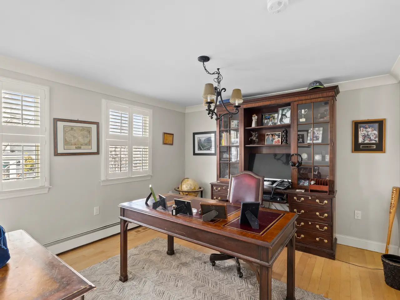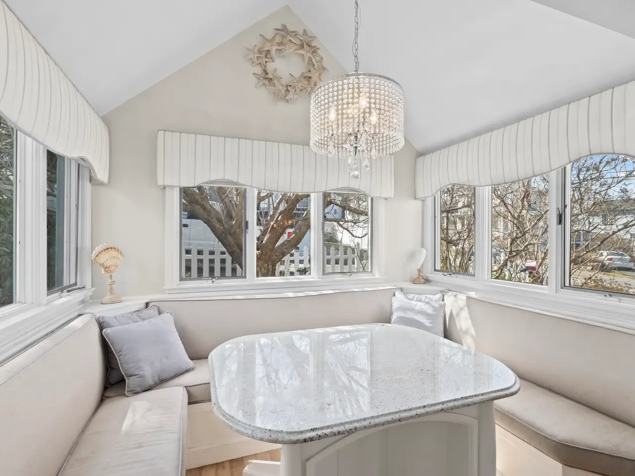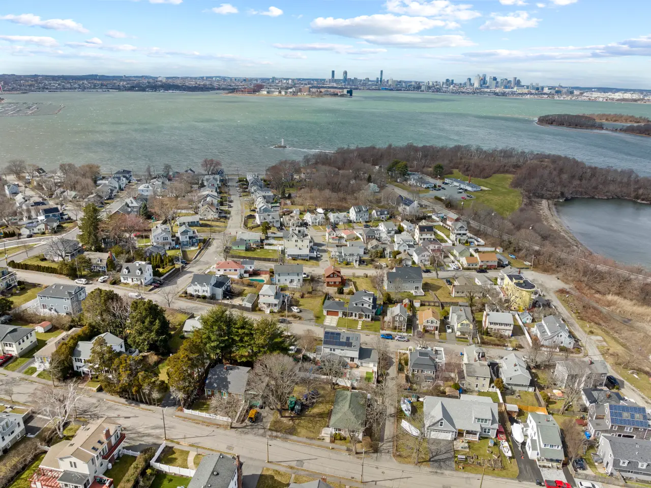 This coastal gem offers water views and a spacious open layout across three levels. Step inside to a wood-burning fireplace in the bright living space, which transitions into the dining area and kitchen. The kitchen features modern appliances, ample storage, and granite counters. Large windows on the second and third floors frame stunning vistas of the water. The lower level offers additional living space, perfect for a family room or office. Step outside to the private patio and backyard, where you can soak in the heated pool and cool off in the glass-enclosed sunroom. Being just moments from Wollaston Beach and Boston, this home offers the perfect blend of luxury coastal living and everyday convenience.