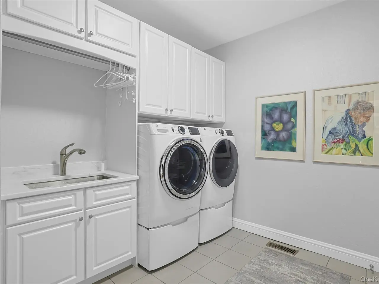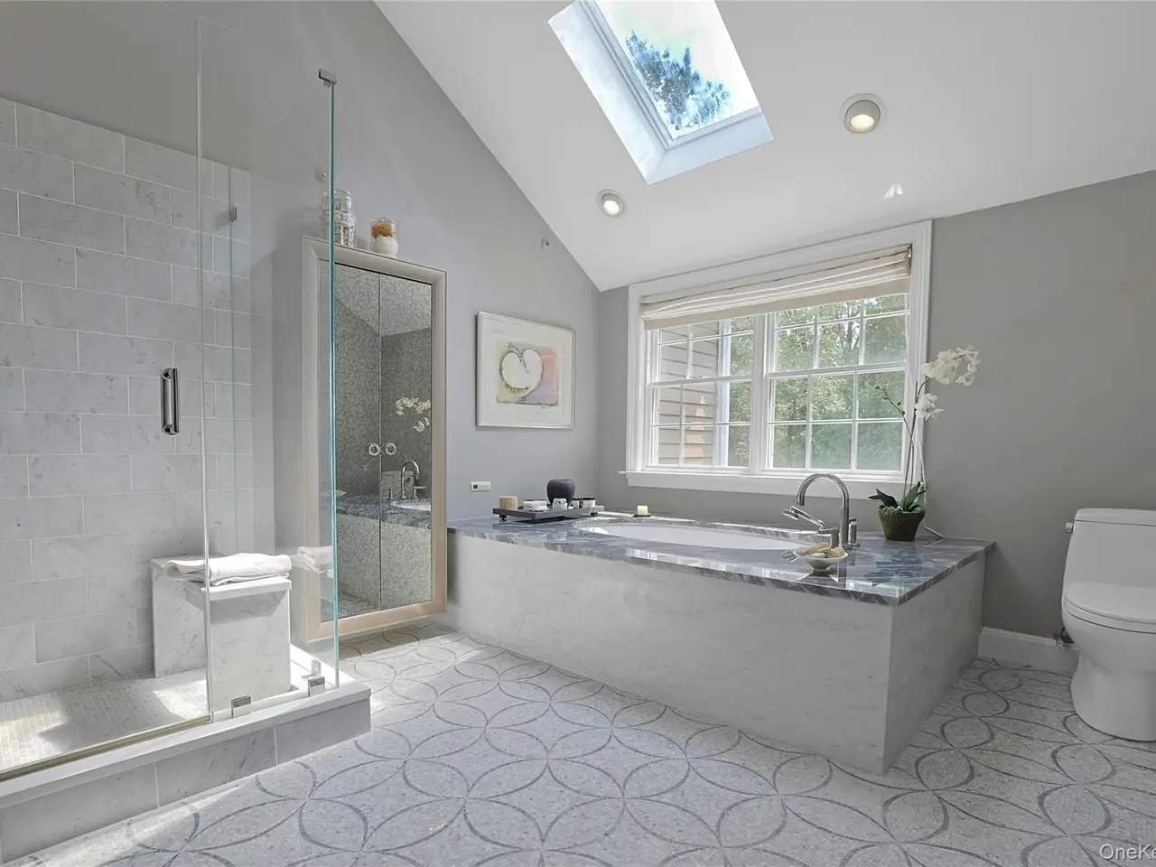 Living like a four-bedroom, this gracious and spacious three-bedroom plus bonus room modern Colonial shines from top to bottom from the meticulous maintenance and updates by the original owners. A welcoming, grand two-story entry introduces a large formal living room brightly illuminated by large front- and side-facing windows, recessed lighting and a wood-burning fireplace. French doors add light from the adjoining sun room, which can easily serve as a home office. Host feasts or fests in the traditional front-facing formal dining room. The kitchen is a cornucopia of delights: custom white wood cabinetry, natural stone countertops, subway tile backsplash, massive center island with plenty of prep space and a breakfast bar for quick dining, and high-end stainless-steel appliances including two Wolf electric convection ovens, a Wolf induction cooktop, large Sub-Zero refrigerator/freezer, built-in Sharp microwave, Miele dishwasher and Sub-Zero wine fridge. Open to the family room is the adjoining breakfast area with built-ins and sliding glass door to the deck for easy BBQ or dining alfresco. Large, rear, south-facing windows and a sliding glass door to the deck beam natural light throughout the spacious family room with its skylit cathedral ceiling, built-in cabinetry and back staircase ascending to the upper level. A powder room and a well-organized laundry/mud room with access to the three-car garage complete the main level. A sweeping staircase ascends to the upper level, home to three bedrooms, three bathrooms and a bonus room, which include the luxurious front-to-back primary suite endowed with a king-sized bedroom, an adjoining sitting or exercise area, walk-in closet, and an elegant, private, skylit, spa-like ensuite bath with wide, two-sink vanity, spa tub, separate shower stall, and radiant heat; two comfortably-sized bedrooms include a front-facing bedroom with two closets and private ensuite bath with shower over bathtub, and a rear-facing bedroom with door to hall bath with two-sink vanity and shower over bathtub; and an extra-large bonus room with closet, which can serve as a den, guest quarters, lounge, office, study, etc. All upper-level rooms have hardwood flooring beneath wall-to-wall carpeting. Designed for entertainment, the finished walk-out lower level showcases two large recreation spaces with a sliding glass door to a large deck, an exercise area (possible in-law or au pair space) and a full bath with shower. Solid, poured concrete foundation, recently updated mechanicals, an automatic backup generator and a newer roof to top it off. Lovely landscaping envelopes the residence. A velvety green lawn rolls out in the back yard, ideal for a catch or lounging about. Sited on a private cul-de-sac just a short drive to schools, shops, town and train. A gem!