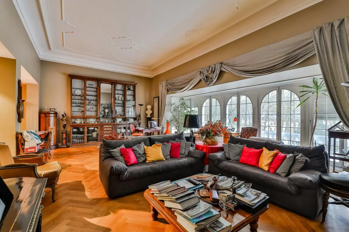 Located opposite the Abbey of La Cambre, this mansion from 1925 captivates with its elegant English-style façade adorned with a magnificent bow window, offering a unique and timeless character. Set on a plot of ± 6.50 ares, it benefits from an exceptional private garden of ± 400 m², a rare find in this sought-after neighbourhood. With a total surface area of approximately 630 m², the house is currently divided into five apartments, with a legal urban planning status, but can be returned to its original layout as a single-family house. Its generous volumes, preserved architectural details and lift make it an exceptional property. A set of three garages and two outdoor spaces complete this rare property, combining charm, space and comfort in the heart of the city. EPC E