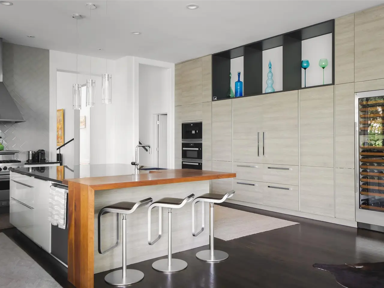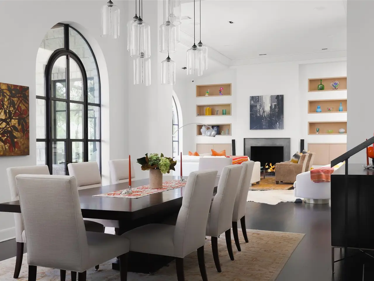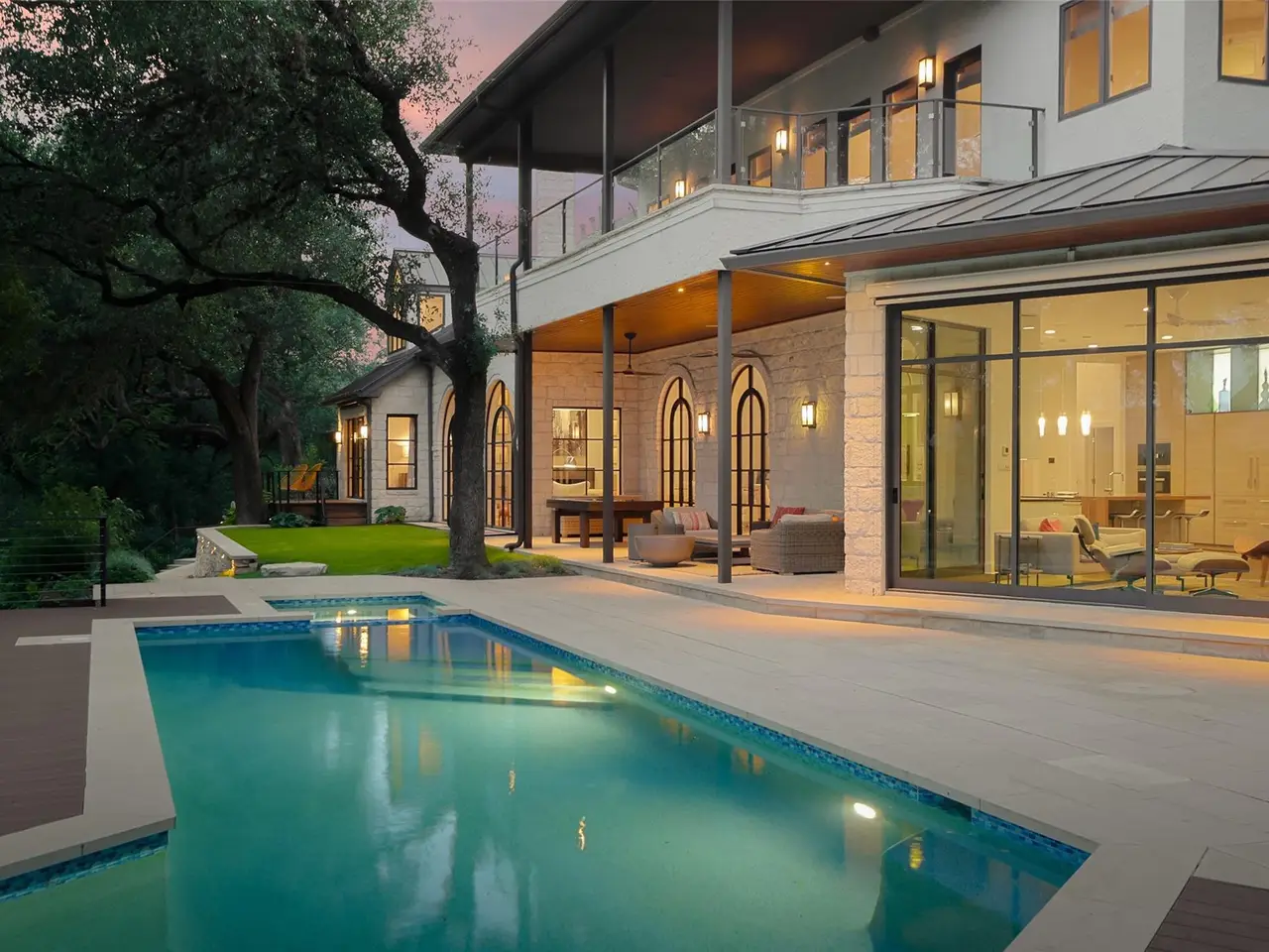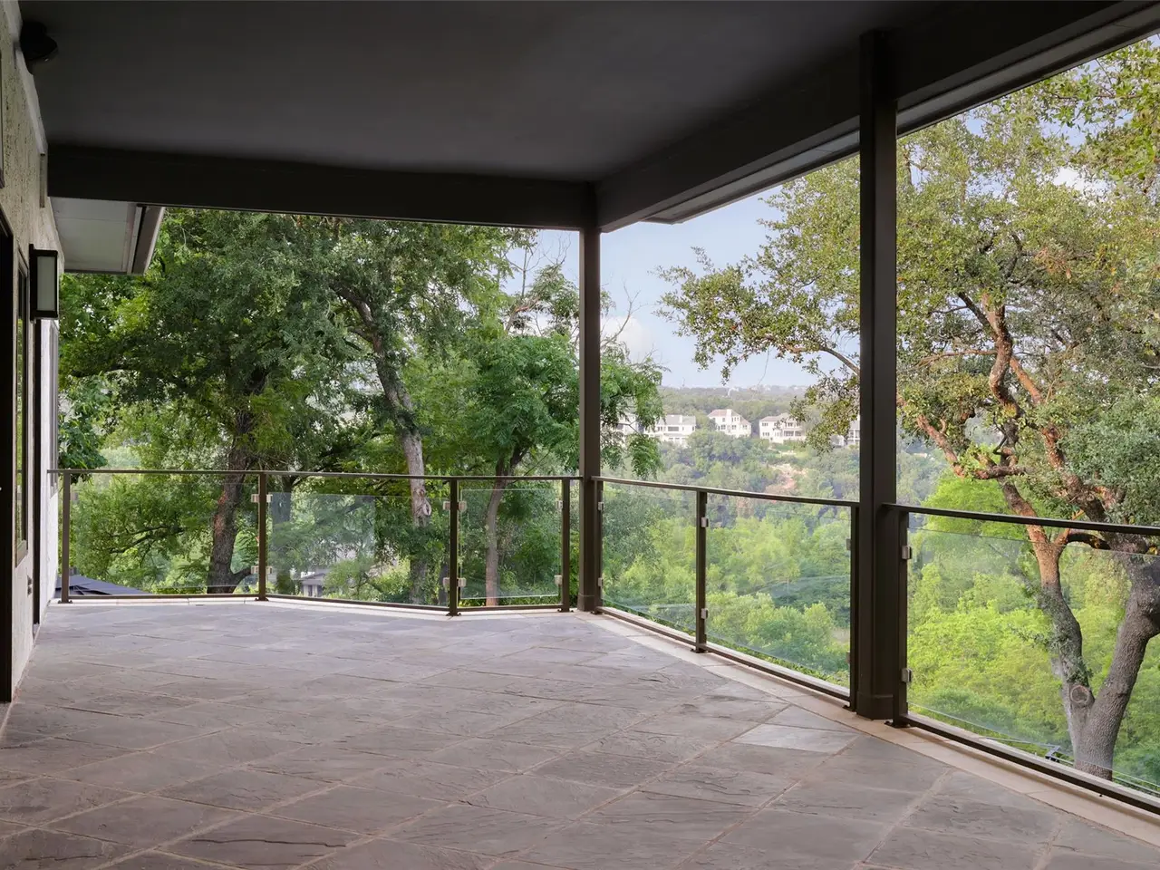 Welcome to 5301 Maryanna Drive, a stunning Westlake retreat perched above Lake Austin with sweeping Hill Country and water views. Nestled in one of Austin's most coveted gated neighborhoods and within Eanes ISD, this home offers prestige, privacy, and unbeatable proximity to Austin Country Club, the lake, downtown, and more. Inside, soaring ceilings, rich wood floors, and a dramatic wall of arched steel-frame doors create a light-filled, luxurious ambiance. The expansive living and dining space is anchored by a sleek fireplace and flanked by custom built-ins, soft neutral tones, and curated lighting. The kitchen pairs minimalist cabinetry with a full-height wine fridge, paneled appliances, and a seamless flow into the family room framed by floor-to-ceiling glass and panoramic pool and lake views. Tucked just off the main living space, the serene primary suite features steel-framed windows and private patio access. The spa-like bath boasts warm-toned tile, dual vanities, vessel sinks, a soaking tub, and a frosted-glass walk-in shower, plus two large walk-in closets. Additional highlights include a corner office surrounded by oversized windows and a vaulted bonus room with limestone fireplace. Upstairs, a dramatic skylight stretches across the corridor, linking two wings. One side features three guest bedrooms with en-suite baths and a private balcony overlooking the backyard and Lake Austin. The opposite wing offers a private guest suite with full bath and a flexible light-filled studio, yoga room, or gym. Two 2-car garages include a car lover's dream: epoxy floors and red cabinetry in a pristine showroom-like setting. Out back, an entertainer's paradise awaits with a spacious covered patio, outdoor kitchen, putting green, and infinity-edge pool that melts into the treetops. Backing to a greenbelt and scenic trail, this property is a rare blend of luxury, nature, and convenience just minutes from the heart of Austin.