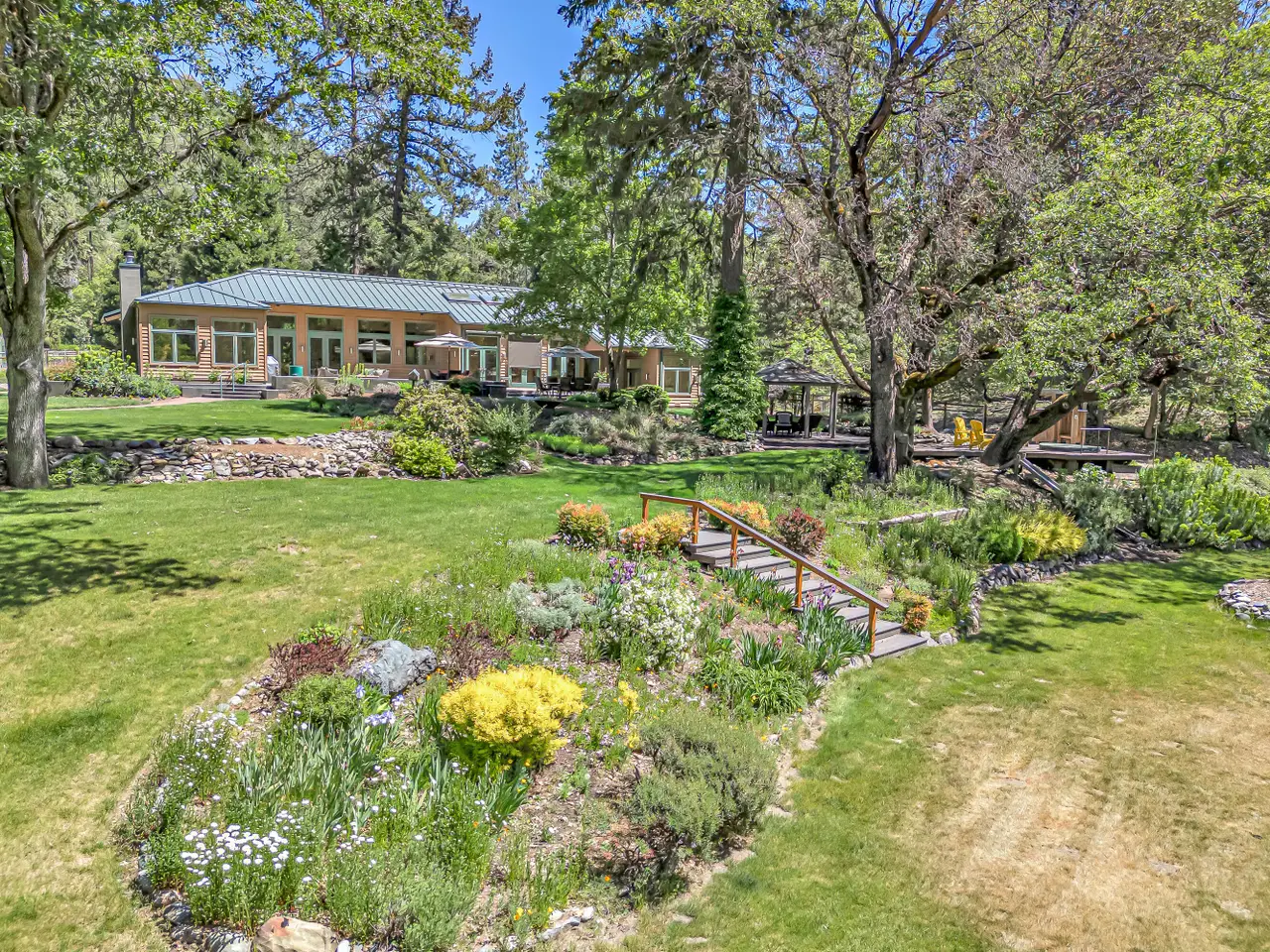When over 500' of serene river frontage embraces the essence of luxury living, that's amore! Nestled in the heart of the Applegate Wine Region, this gated estate unveils a stunning 4,510 SF custom-built home that embodies the timeless charm of the Applegate River. Here you are greeted by a meticulously maintained park-like setting w/ your own hobby vineyard that beckons you into a residence where elegance, comfort, and meticulous attention to detail harmoniously intertwine. Inviting open floor plan seamlessly blends sophistication w/warmth. The gourmet kitchen is a culinary dream and perfect for entertainment. Adorned w/exquisite Italian tile flooring and an abundance of windows, the home is flooded w/natural light. Your guests will have access to 1,188 SF of additional living accommodations, ensuring that everyone feels right at home. This estate is a sanctuary where luxury meets the beauty of nature, offering an unparalleled lifestyle in one of the region's most coveted location.