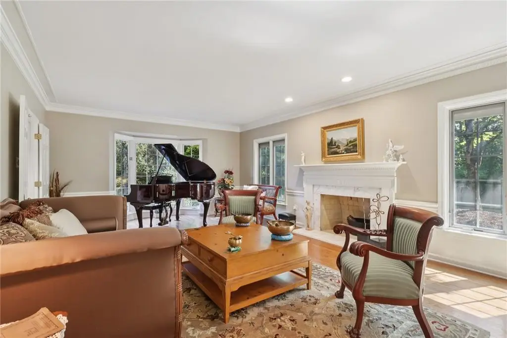 Luxury Living! Spectacular Estate on private road w/1.5acre professionally landscaped grounds. Grand foyer w/leaded glass door, grand staircase,& chandelier. Formal living & dining rooms w/exquisite details fireplace, bay window, hardwood flooring,& built-ins. Executive office w/wood-paneled walls, fireplace, custom cabinetry,& wet bar. Chef's dream kitchen w/Wolfe & Viking appliances, large island w/seating, Miele coffee bar, sliding glass doors to stunning outdoor retreat. Entertain in style w/rear patio w/full outdoor kitchen, woodfired pizza oven, inground pool, multiple seating areas,& tranquil pond w/waterfall. Luxurious owner's suite w/French doors, spa-bath w/soaking tub overlooking pool, oversized shower w/jets, double vanities,& walk-in closet. Updated bath, laundry, & balcony w/lounging area & spiral staircase to pool. Lower level is entertainer's dream w/wine room, full 2nd kitchen, wet bar, built-in seating, game area, media lounge, gym/5th bedroom, & full bath. WOW!