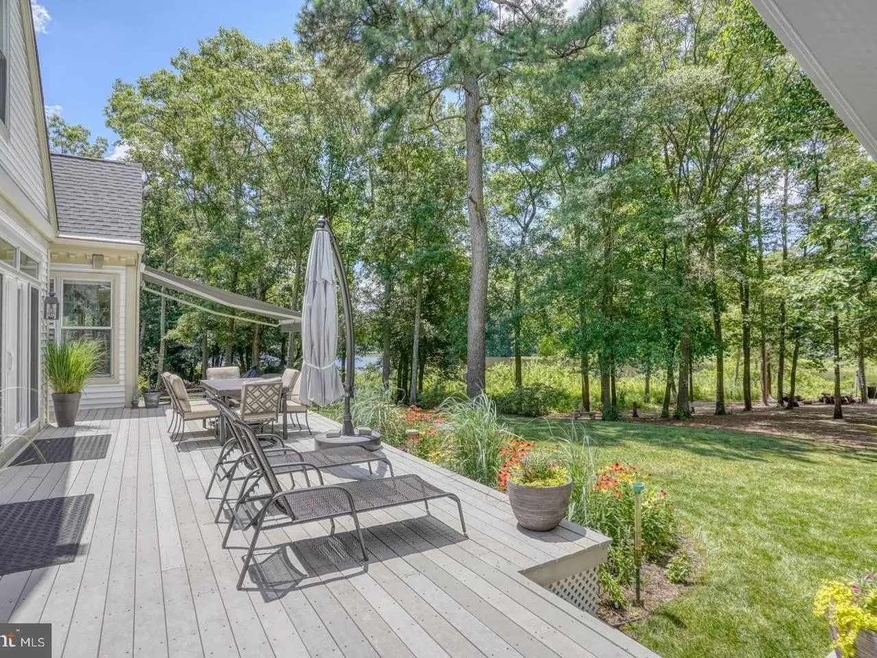 Nestled on a picturesque 2.39-acre waterfront lot on tranquil Morris Mill Pond, this exceptional property offers a rare blend of serene natural beauty and thoughtful luxury. Surrounded by lush, manicured gardens, the home delivers direct access to the pond via a floating dock-perfect for kayaking, fishing, or simply soaking in the peaceful setting. A circular driveway leads to a spacious three-car garage, and the landscaped grounds are enhanced with irrigation, a cozy firepit area, and an outbuilding for equipment storage that also functions as a pump house. Inside, the home features a smart layout designed for comfort and elegance. The main level hosts a formal dining room, a welcoming living room, and a spacious primary bedroom-all with direct access to an oversized deck that boasts a Jacuzzi and retractable awnings for year-round enjoyment. The sunroom, with its EZ Breeze windows, offers the perfect place to relax while enjoying panoramic garden and pond views. The kitchen is both stylish and functional with leathered granite countertops, a tile backsplash, and a sun-filled eat-in space ideal for casual dining. This residence includes four bedrooms and three and a half bathrooms, offering ample room for family and guests. A bonus room/flex space within the main house serves perfectly as a lounge, office, or hobby room. Above the garage, a large music room-complete with its own HVAC system-presents exciting potential as a future in-law suite or creative studio, offering privacy and flexibility for multigenerational living or remote work. Adding to its appeal, the home is equipped with whole-house music for seamless indoor-outdoor entertaining and ambiance. Whether you're hosting friends on the deck, enjoying the sunset over the water, or retreating to one of the quiet corners of this lush estate, this home offers a rare combination of refined living and natural splendor on the water.