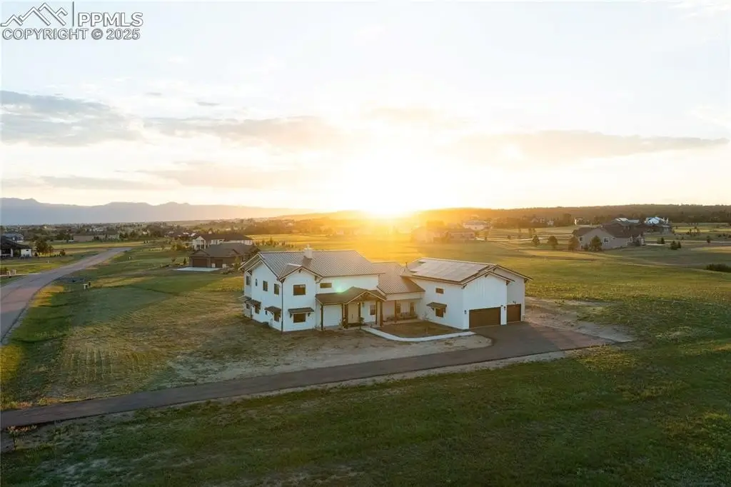 It is a rare occasion when a residence successfully harmonizes the tranquility of pastoral living and contemporary luxury. Situated within the distinguished Highland Park community, just beyond the vibrant Woodmen and Powers corridor, this estate offers both seclusion and convenience. On 2.7 expansive acres, the property affords an unparalleled sense of space, with the Rocky Mountains themselves serving as the backdrop to your daily rhythms. The barndominium has rapidly grown in popularity. Searched nearly 17,000 times per day. Yet, many quickly discover the complexity of constructing one from the ground up. This home resolves that challenge by presenting a barndominium-style residence already masterfully designed and built. Allowing you to skip plans and permitting, and instead step directly into a finished expression of the lifestyle you desire. Comprising six bedrooms, four and one-half baths, and nearly 4,000 square feet, this residence is both generous and thoughtfully configured. The main level offers three secondary bedrooms, perfectly suited for multigenerational living, guest accommodations, or private workspaces, while the primary suite occupies a distinct wing, ensuring privacy and retreat. The primary ensuite evokes a spa-like atmosphere, one typically reserved for curated design publications. The garage features a pull through design for convenience and includes a second level loft an adaptable space ideal for a private office, workshop, or studio. Inside, the sense of openness is enhanced by vaulted ceilings, elevating the home’s architectural character while flooding the interiors with light. The culinary heart of the home is equally impressive a chef’s kitchen designed for both daily living and elevated entertaining, complemented by a butler’s pantry that offers discretion and utility. And with step free exterior entry, this property is designed to grow with you equally accommodating for vibrant living today and graceful aging tomorrow.