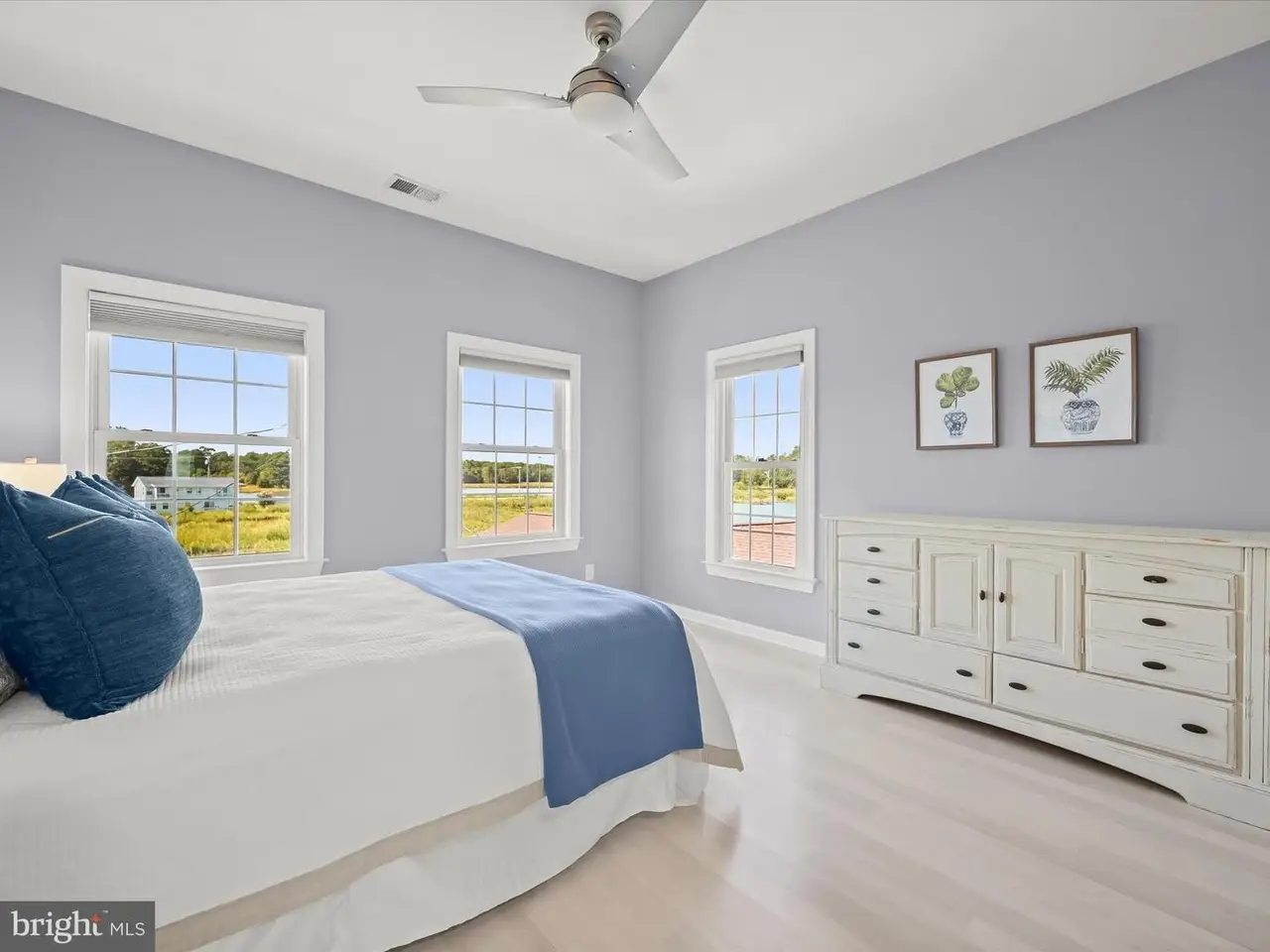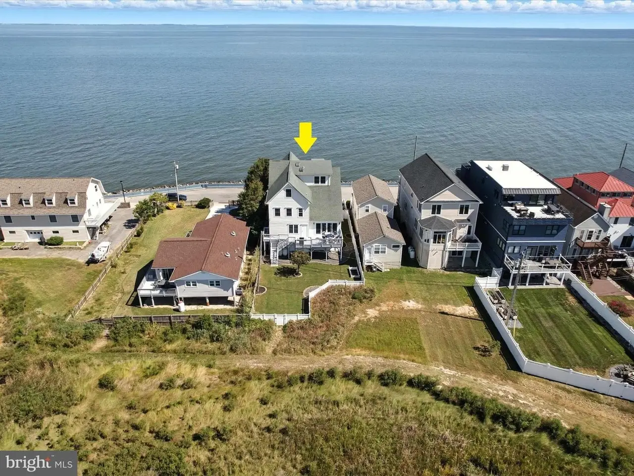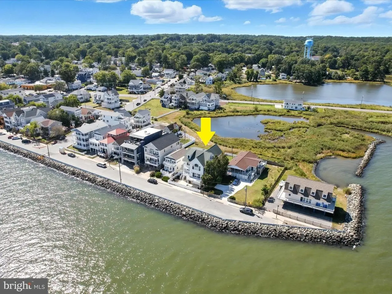 Perched on three expansive lots with prime frontage, this North Beach home offers breathtaking water views from nearly every window and multiple decks overlooking the Chesapeake Bay. Refinished hardwood floors in a light tone with both warm and cool graining complement the freshly painted interiors, while design-inspired tile and finishes elevate every renovated bathroom. Modern updates include recessed lighting throughout, new ceiling fans in all bedrooms, replaced light fixtures, a refaced fireplace, and a new heat pump, alongside thoughtful structural improvements such as the removal of a wall to open the staircases on the second and third floors. Recently featured in the Washingtonian June 2024 "Water's Edge" article, this home radiates sophistication and coastal charm. The recently updated kitchen shines with quartz countertops, a glass tile backsplash, stainless steel appliances, a gas range, and built-in speakers. The open-concept main level flows effortlessly, with a large kitchen bar providing additional seating ideal for entertaining. In the living room, expansive Chesapeake Bay vistas lead to a deck perfect for enjoying the water views and the soothing sound of waves lapping against the rocks, while the dining area enjoys the same scenery, anchored by an elevated peninsula gas fireplace shared with the living room and kitchen. Step outside from the spacious family room, where vaulted ceilings and walls of glass-paneled doors with sidelights fill the space with abundant natural light and lead to a deck with views over the wetlands, complete with surround sound speakers. The main level also includes a generously sized laundry room with coordinated floor and wall tile, and a versatile space that can serve as a water-view office or bedroom, featuring a full bath, and walk-in closet. Upstairs, the primary suite impresses with a cathedral ceiling, panoramic water views, a walk-in closet, and a private balcony. The en suite bath offers a soaking tub, double vanity, and a tiled shower, with water views appreciated from the bathroom itself. Two additional bedrooms with walk-in closets share a full bath with a double sink vanity. On the third floor, a spacious bedroom enjoys water views from every window and a window seat, accompanied by another dual-entry full bath and a sixth bedroom overlooking the wetlands. Outside, a generous fenced yard with a back gate provides direct access to kayak launching spots. Parking is abundant, with a four-car tandem garage and a concrete fenced driveway accommodating two more vehicles for a total of six spaces. Located in the heart of North Beach, residents have easy access to shops, restaurants, and community events, including farmer's markets and concerts, as well as the boardwalk, pier, and sandy beach just steps from home. Whether seeking a year-round residence or a coastal getaway, this retreat, only 45 minutes from DC, offers the perfect blend of comfort and convenience. Park your boat at Herrington Harbor Marina or Rod & Reel Resort. Experience a vibrant coastal lifestyle with a charming boardwalk, seasonal farmers market, Bayside History Museum, parks and nature preserves, a brand-new library, cultural events, and welcoming gathering spaces. This North Beach home captures the essence of small-town charm while offering the modern comforts and breathtaking views of the Chesapeake Bay.