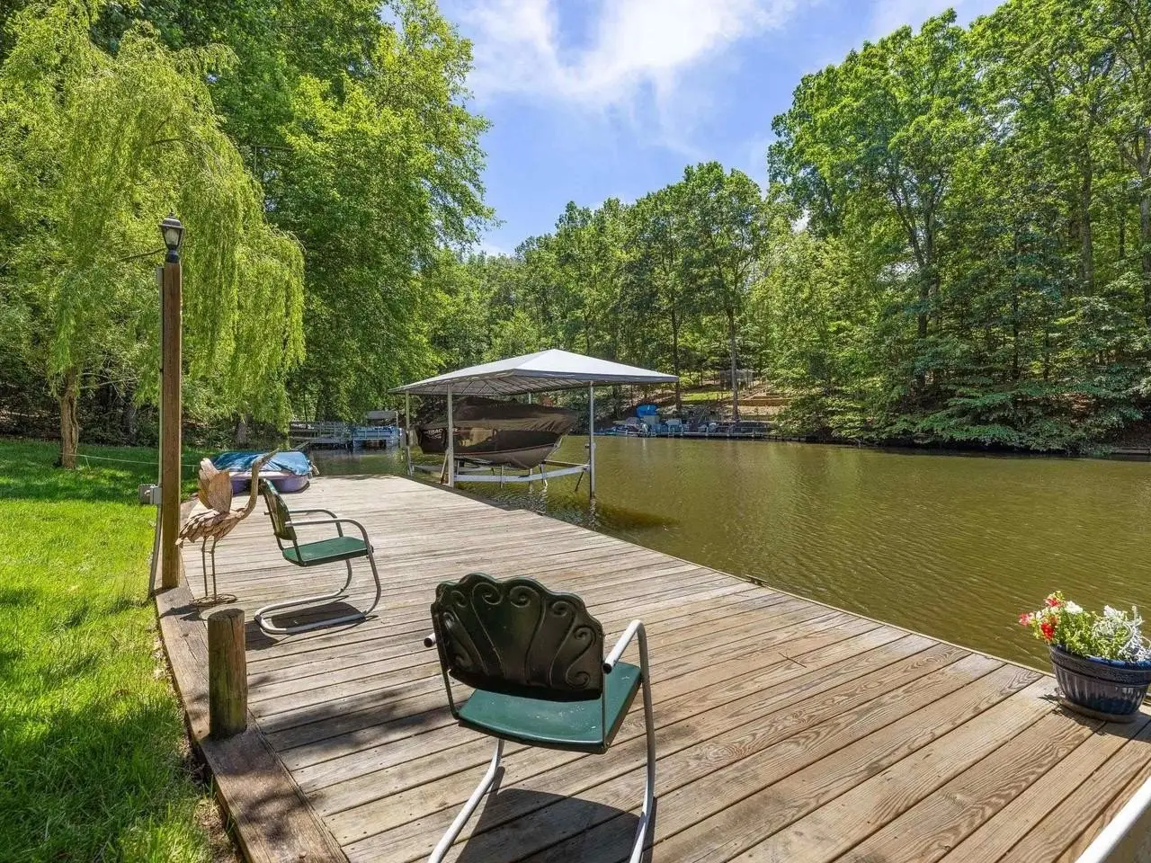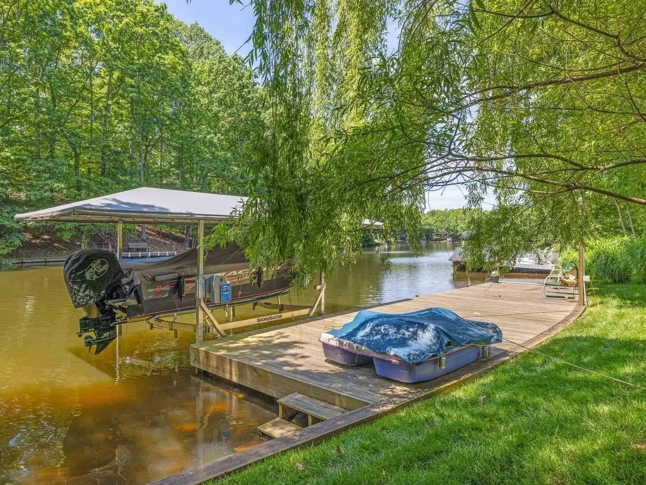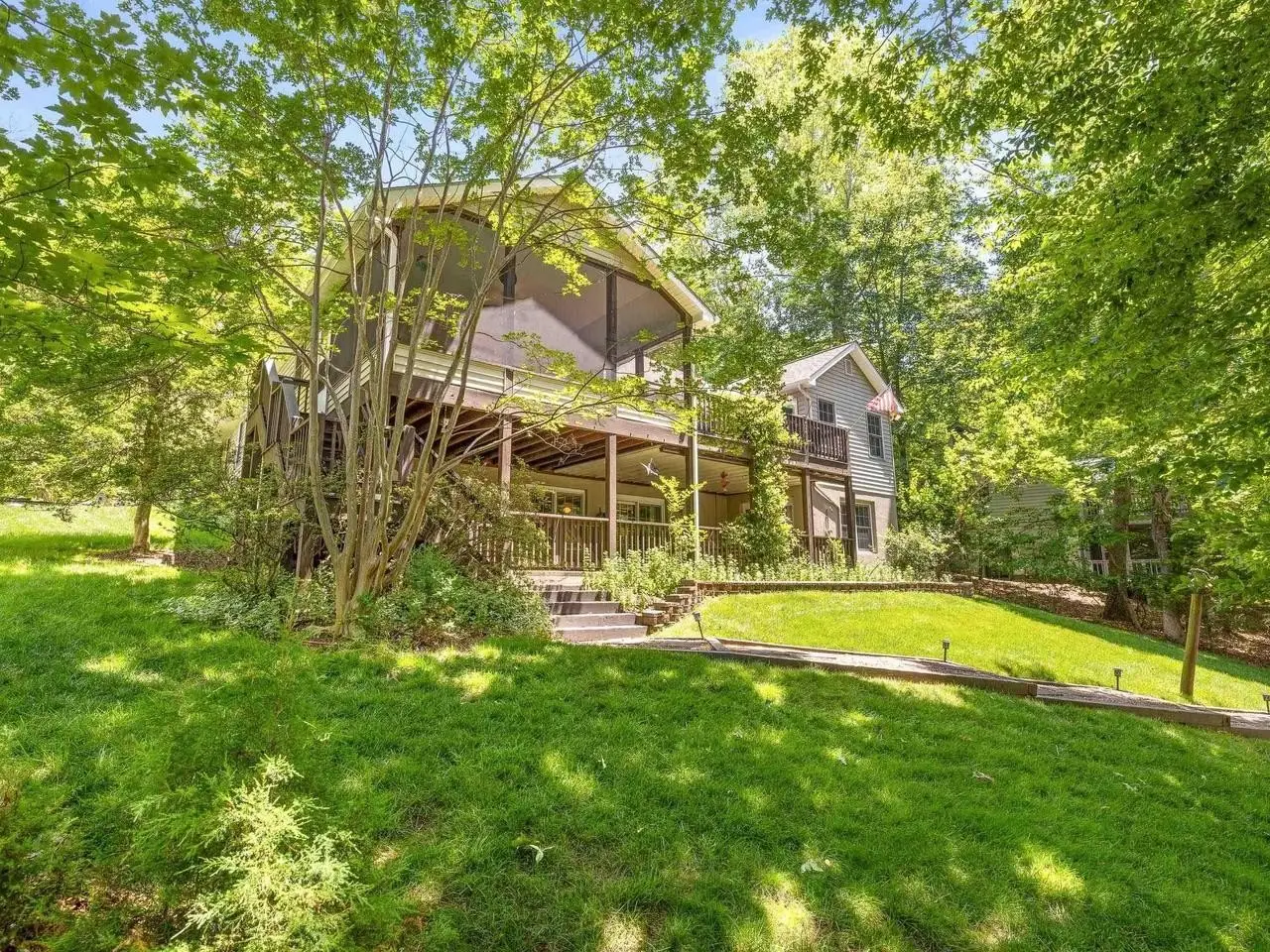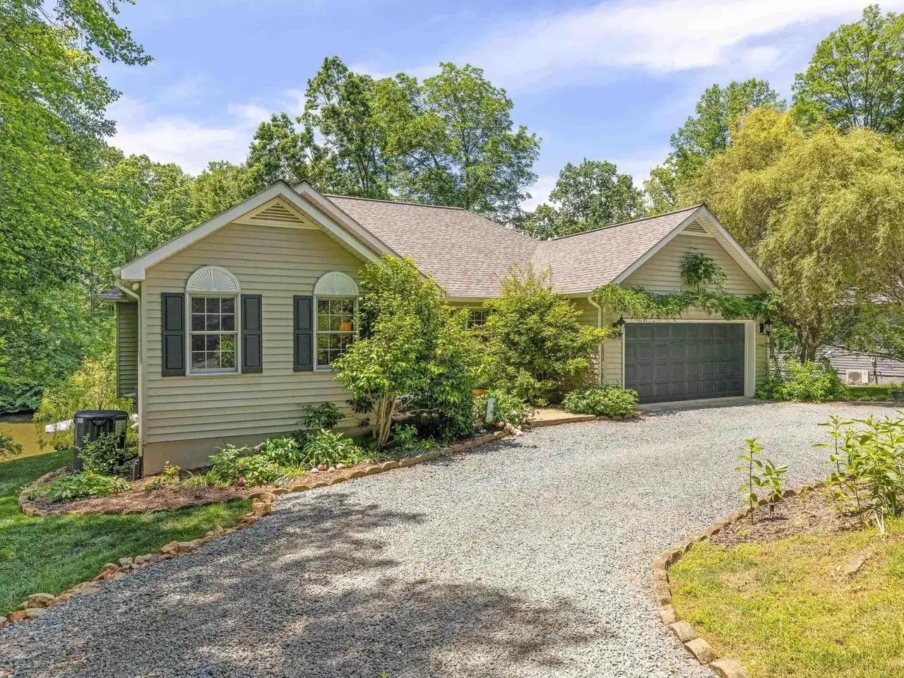 EXPERIENCE THE BEST OF LAKE LIVING! Beautifully maintained waterfront home offers 110? of lake frontage on a peaceful .61-acre lot in a no-wake cove?perfect for fishing, kayaking, swimming, or floating. A large dock w/ boat lift (new in 2022), fishing/ski boat & pedal boat are included. Built by award-winning Southern Homes, this gem features an open floor plan, vaulted ceilings, solid hardwoods & stunning lake views from the cozy living room w/ gas fireplace. Kitchen Aid double oven, Bosch dishwasher, Miele gas stovetop, Samsung French door fridge, Maytag washer. Main-level primary suite includes a spa-like bath w/ heated tile floors, walk-in shower & double vanity. Outdoor living includes screened porch, large deck & screened patio?all overlooking the lake. Terrace level includes bedroom, wet bar, office/craft room (optional 4th bed) & workshop w/ private yard access. Gas hookup ready for 2nd fireplace & outdoor shower. Whole-yard irrigation w/ new pump (2024). New roof, gutters & guards (2023). VA Green lawn service & A/C maint. paid through 2025. Close proximity to Beach 2 & easy access to the water?s edge via a lush, grassy backyard?your private lakeside retreat awaits! Must see!,Granite Counter,Oak Cabinets,Fireplace in Living Room