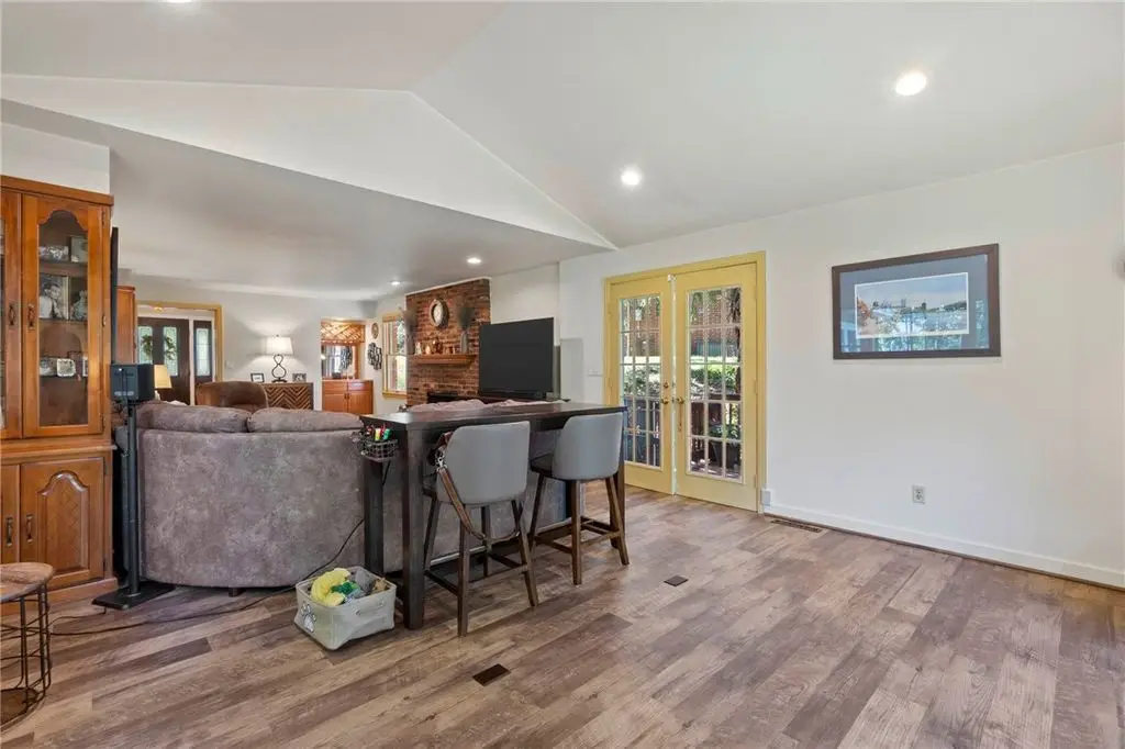 Nestled at the edge of a nature park with gorgeous wooded views, is this 5 bedroom hidden gem in a sought-after neighborhood. Classic center-hall entry welcomes you into a light-filled living room with Luxury Vinyl floors & a bay window. The dining room opens to an updated kitchen featuring a peninsula w/granite & quartz counters, SS appliances & abundant cabinets. An enormous familyroom is ideal for entertaining; gather at the wet bar or relax by the brick fireplace. Step outside to the treetop deck overlooking Falling Springs trails, or enjoy private outdoor gatherings on the large brick patio. Upstairs, 5 bedrooms with hardwood floors, including a roomy primary suite with mirrored closets & full bath. Lower level offers a bright laundry area & a versatile bonus roomC/B?B=perfect as an office, gameroom, or 6th bedroomC/B?B=with sliding doors to the patio. This smart home is loaded with technology & thoughtful updates to keep you comfortable & secure + it provides generous storage throughout.