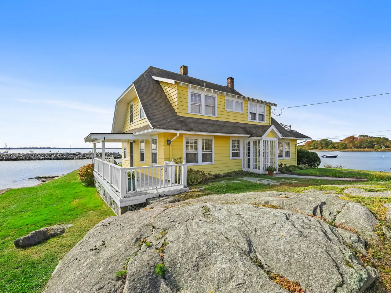 RARE OPPORTUNITY! Perched proudly on its own peninsula and surrounded by water, this 1920 Dutch Colonial Revival home offers a unique blend of timeless architecture, historic charm, and breathtaking natural beauty. With its signature gambrel roof, gabled dormers, and classic symmetrical design, the home enjoys sweeping views over Fishers Island Sound from nearly every room. Lovingly maintained by the same family since 1984, this residence reflects care, pride, and authenticity throughout. Just a stone's throw from Esker Point Beach and Noank Village, and only minutes to Groton Long Point, Downtown Mystic, Stonington, and more. This location combines coastal tranquility with convenient access to shopping, dining, and marinas. With ample square footage, 2 car garage, and an unparalleled waterfront setting, the property offers endless potential to create your forever home. Ideally positioned between New York City and Boston, this remarkable home embodies the best of New England's coastal living; a true sanctuary where history, character, and scenery come together in one extraordinary place.