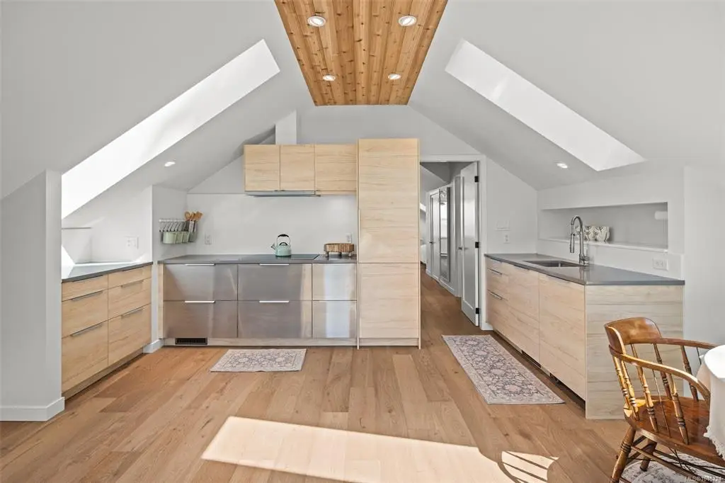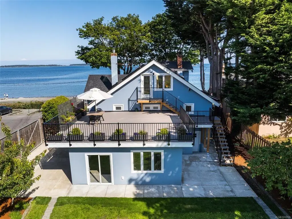 Welcome to The Esplanade – Victoria’s most beloved beachfront community. Tucked along the quiet, tree-lined side of sandy Willows Beach, this charming, fully renovated character home sits on an expansive 11,500-plus square foot lot. The primary residence offers three bedrooms, one bathroom, a custom kitchen with handcrafted rift-cut oak cabinetry, Sub-Zero appliances, in-line dining and a cozy home office with breathtaking 180° ocean views. Upstairs, the dramatic one bedroom loft suite features soaring 8-foot skylights, panoramic views and a 650 square foot rooftop patio made for sunsets. The walk-out basement includes two access points and provides room to expand or create two additional one bedroom suites. The versatile floorplan makes this an ideal multi-generational living opportunity. A private backyard filled with mature fruit trees and two separate driveways opens the door to future development. Rarely do homes come up for sale in this magical seaside setting on Willows Beach.