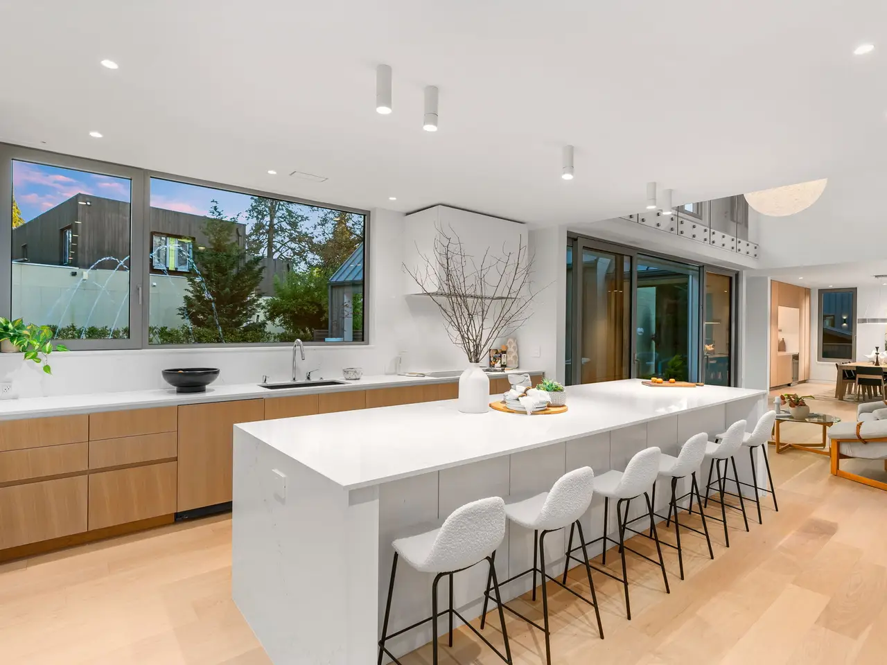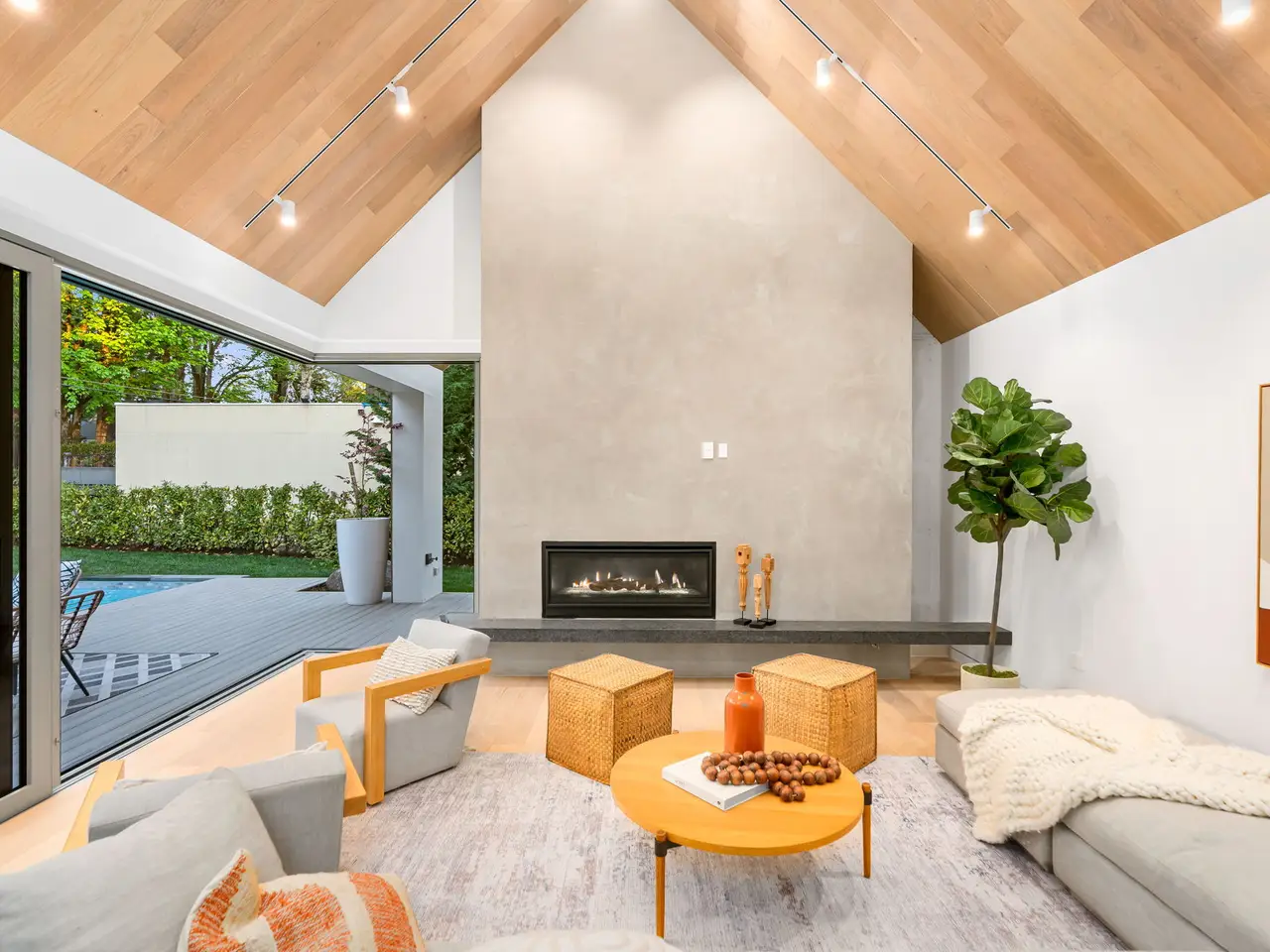 Villa M A Truly Custom Built Contemporary Scandinavian Farmhouse located in the sought-after Dunthorpe neighborhood. Stunning new construction, soaring 30-foot ceilings capped by glass, creating a light-filled living experience. Extensive use of custom white oak cabinetry throughout home, craftsmanship of a bygone era. High-end European windows and doors the pinnacle of form and function blurring the lines between interior and exterior. Transverse a glass hallway to the large living room where you're greeted by vaulted ceilings and a grand fireplace. Walls of glass part to open to the pool deck, and outdoor kitchen. Pool and spa with fountains, lighting, and automatic pool cover. Chef's kitchen with oversized island, waterfall edge, slab backsplash and high-end appliance package. Upper-level bedrooms with built-in closets and functional loft spaces, taking advantage of the opportunity presented by the voluminous vaulted ceilings. Primary suite with expansive built-in closet system, walls wrapped in white oak, primary bath with spacious wet room. Main level study with adjoining full bath and zero edge shower entry provide flexibility with accessibility. Sleek clean finishes, lighting choices, museum reveal baseboards, and zero trim doorways all flawlessly crafted and executed to compliment the refreshingly high-end modern aesthetic. Why wait to build? When you can have it all today!