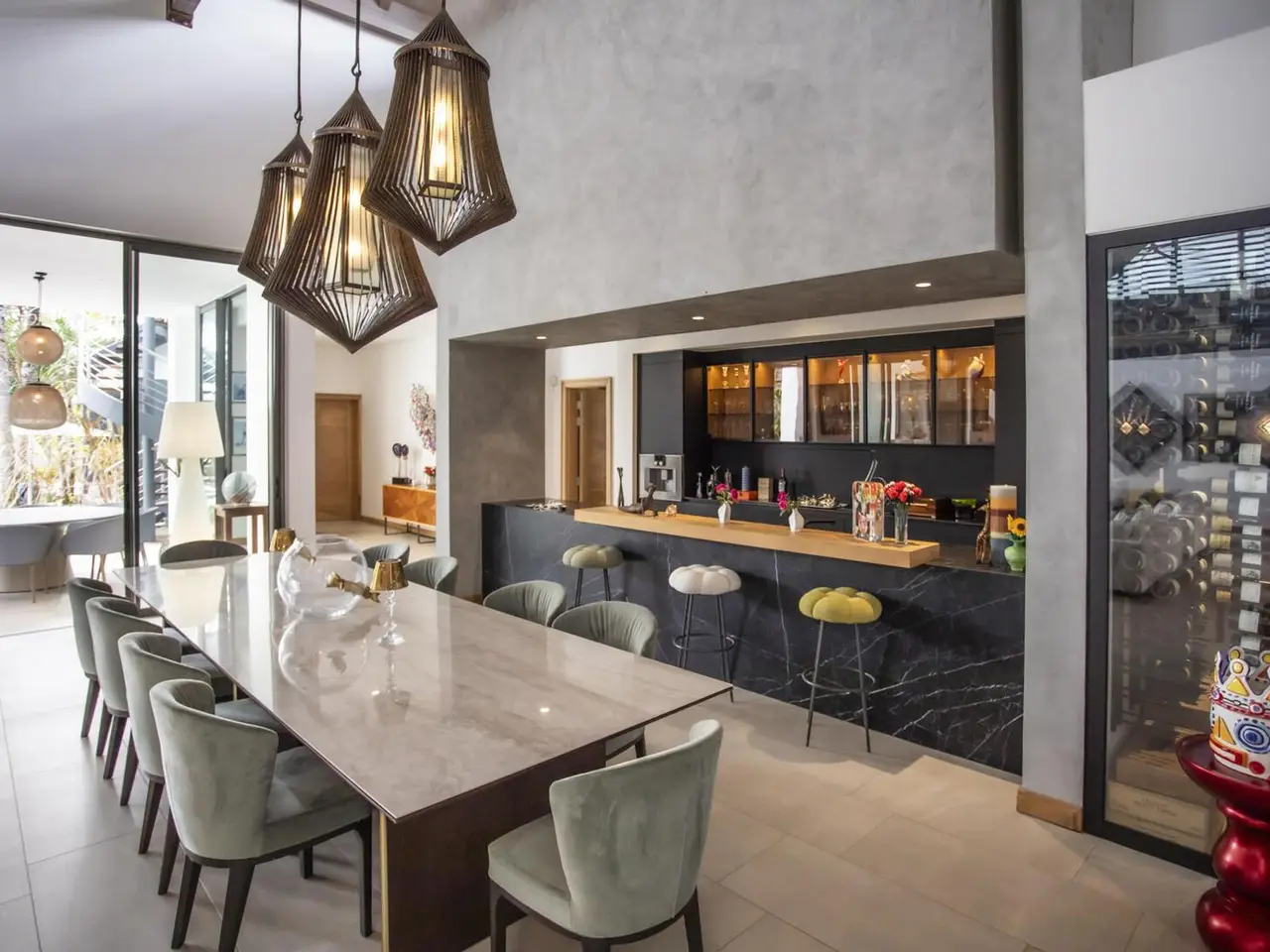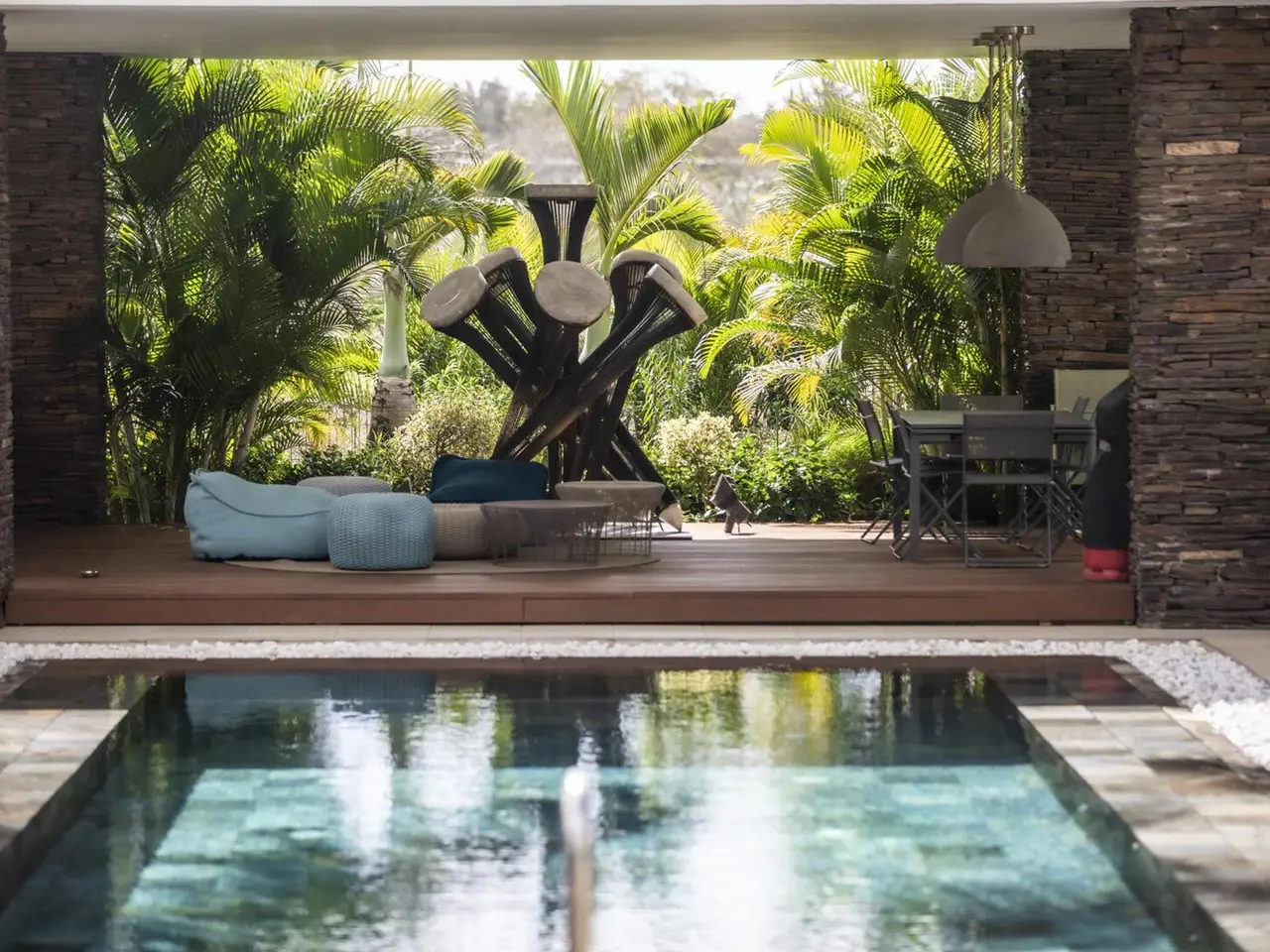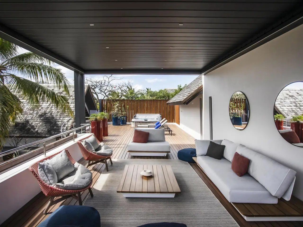 Set within the prestigious Mont Choisy Le Parc, part of the visionary Mont Choisy Smart City, this Island Signature Villa with four en suite bedrooms embodies the essence of contemporary elegance and refined island living. Mont Choisy Le Parc stands as a testament to the perfected amalgamation of design, construction, and vision, offering a lifestyle destination that sets new benchmarks in luxury living. Within the secure and serene environment of Mont Choisy Smart City, the estate provides a sophisticated and stress-free community for those who expect nothing but the very best. To bring this vision to life, the development collaborated with world-acclaimed South African architect Stefan Antoni of SAOTA, whose award-winning firm designed a collection of bespoke freehold villas and apartments that redefine modern tropical living. Occupying an exceptional 3,131 m² plot, this villa offers over 1,050 m² of refined living space arranged around a magnificent central pool. Its U-shaped design creates a seamless flow between the interior and exterior, blending open volumes, transparency, and natural light. The double-volume living room, opening onto the terrace and tropical garden, forms the heart of the home. A private TV lounge and a glass-walled mezzanine office add comfort and intimacy to this grand space. At its center lies a minimalist open-plan kitchen, harmoniously extending to the dining and lounge areas, enhanced by a glass-fronted wine cellar. To the rear, a fully equipped service kitchen, dedicated laundry, and independent staff access ensure discreet functionality and ease when entertaining. The master suite, located in its own wing, offers a large dressing room for her, a separate dressing for him, and a recently renovated bathroom with a walk-in shower, bathtub, double vanity, and abundant natural light — a true private retreat. On the opposite side, the three guest suites, each opening directly onto the pool deck, offer privacy and refined comfort in a tranquil tropical setting. Outdoors, the villa reveals exceptional living spaces designed for relaxation and entertaining. Around the pool, spacious covered terraces open onto a large open pavilion, an elegant extension of the villa ideal for hosting friends and family in a refined tropical atmosphere. The rooftop terrace, fitted with a bioclimatic pergola and jacuzzi, enjoys a dominant view over the property and a beautiful evening ambiance, offering a unique setting to enjoy the island’s soft light and sunset glow. Photovoltaic panels ensure energy efficiency, combining contemporary comfort with sustainability. Mont Choisy Golf & Beach – The Spirit of Northern Mauritius The estate is anchored by Mont Choisy Le Golf, Grand Baie’s only championship course, designed by renowned golf architect Peter Matkovich, often called the “land listener.” Sculpted between sugarcane fields and outcrops of black volcanic rock, this 18-hole course captures the island’s spirit with its natural ponds, sand hazards, and majestic palms. The elegant clubhouse, surrounded by banyan trees, provides a serene vantage point over the nearby greens. Just minutes from the estate’s western gates lies Mont Choisy Beach, stretching nearly three kilometres from Trou aux Biches to Pointe aux Canonniers. This gently curving expanse of golden sand, shaded by filao trees and kissed by crystal-clear turquoise waters, is perfect for long walks, swimming, and romantic sunsets. Developed under the IRS (Integrated Resort Scheme), the property grants Permanent Residency in Mauritius to the purchaser and their family. A home of character and distinction — the purest expression of Mauritian luxury living.