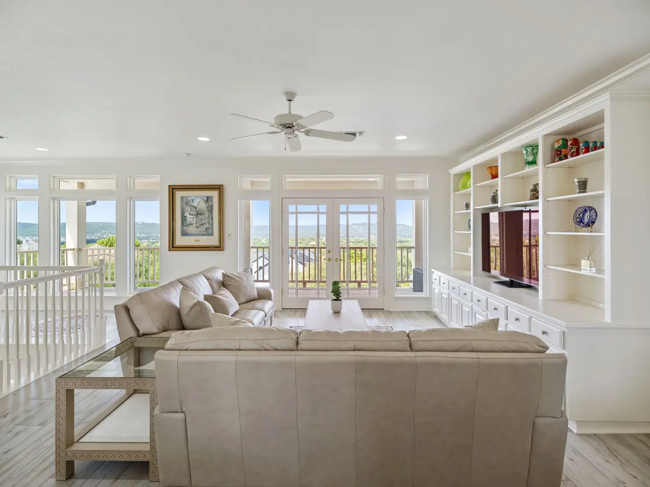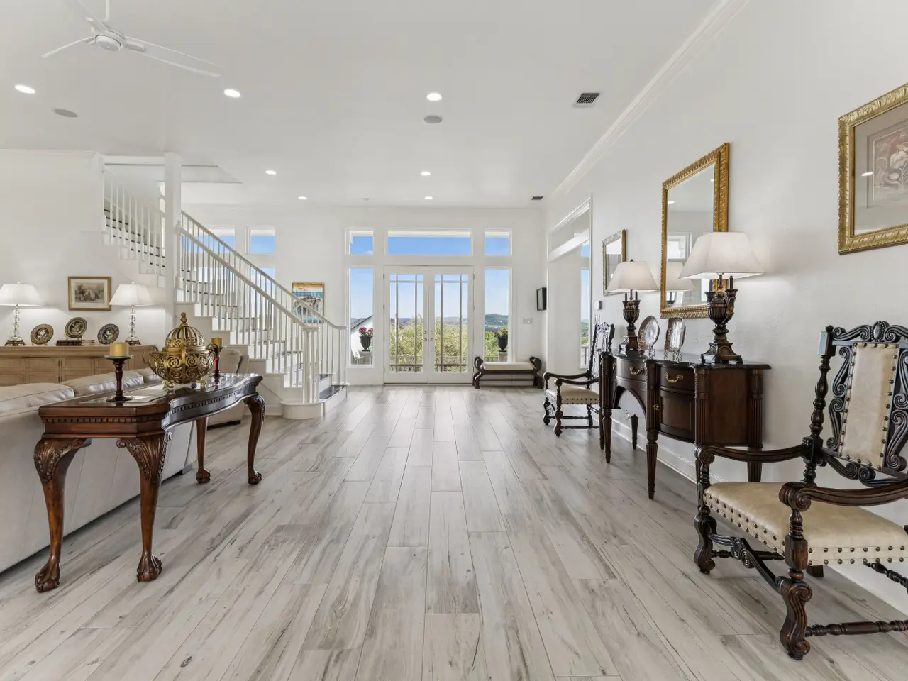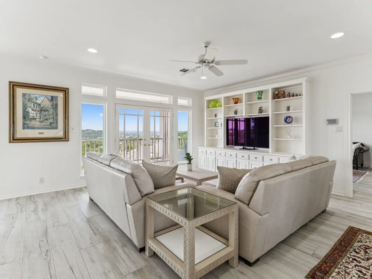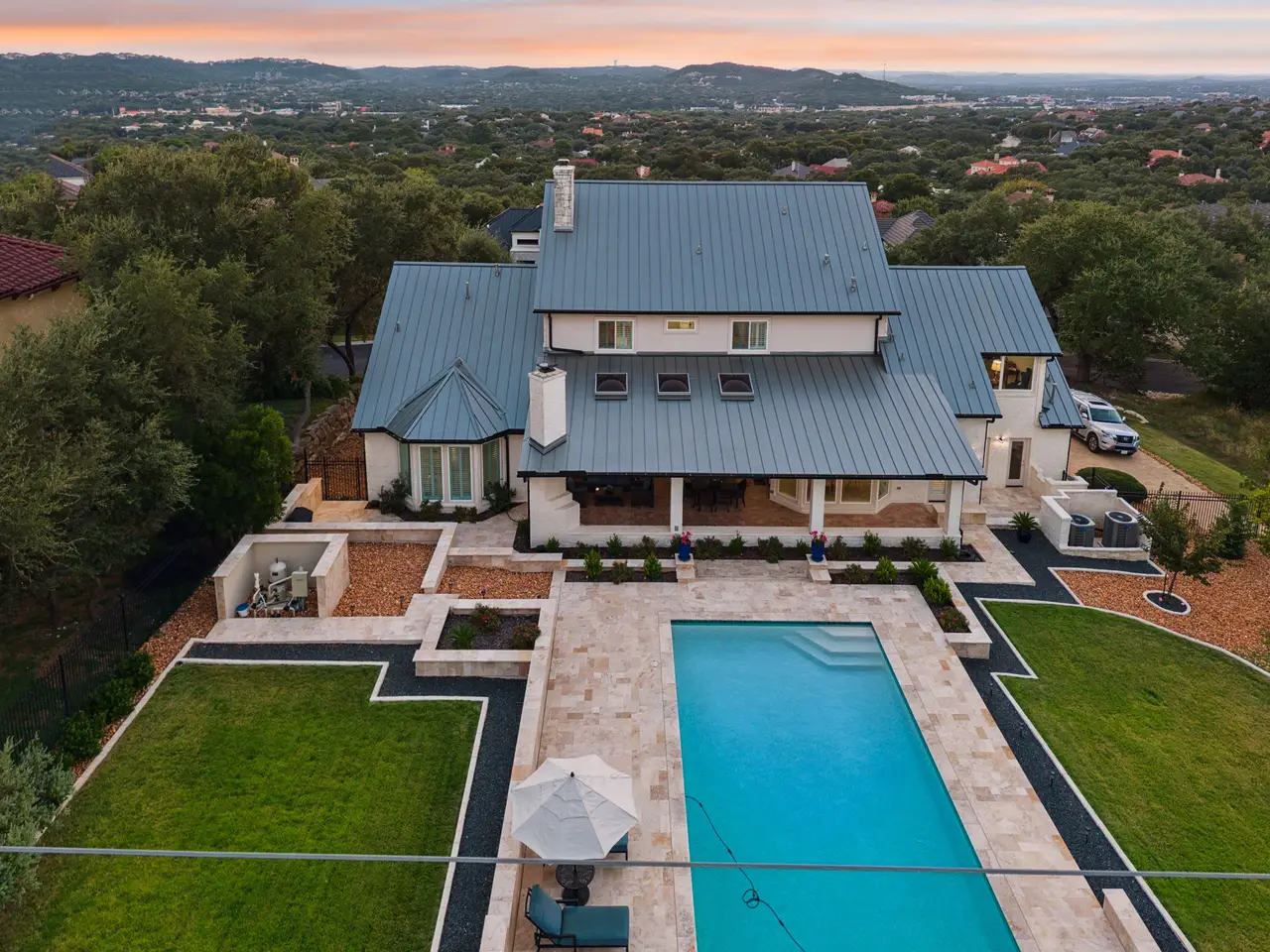 Welcome to this meticulously transformed home, perfectly situated in the heart of The Dominion. Designed for both grand entertaining and a private retreat, this residence blends modern sophistication with timeless elegance. Step inside to soaring ceilings, abundant natural light & immediate views of the outdoors. Walls of glass open seamlessly to a resort-style living space featuring an outdoor fireplace, covered patios & panoramic city views. Anchoring the property is an award-nominated 40® x 20® Cody lap pool with elegant travertine decking & dramatic lighting, a true center piece for entertaining day or night. The modern kitchen offers custom cabinetry, granite countertops & updated appliances, while Italian porcelain tile flooring flows throughout. Every bathroom has been elegantly redesigned with timeless finishes. Fresh paint, enhanced architectural lighting inside and out & energy-efficient Low-E Pella windows add comfort and peace of mind. Terraced balconies span over 700 square feet on two levels, providing the perfect setting for phenomenal views for sunset gatherings or quiet morning sunrises. A versatile 705 sq. ft. guest apartment with full bath, set privately above the garage, is ideal for family, an executive office, or an au pair suite. Designed by top-rated landscape architect Bronson Blue, the tree-lined grounds offer fabulous curb appeal and unmatched privacy, with direct adjacency to Camp Bullis & sweeping hilltop views. This is a rare opportunity to own a home that is move-in-ready, balancing prestige, craftsmanship & a lock-and-leave lifestyle in The Dominion. - 10/31/2025 8:00:54 AM