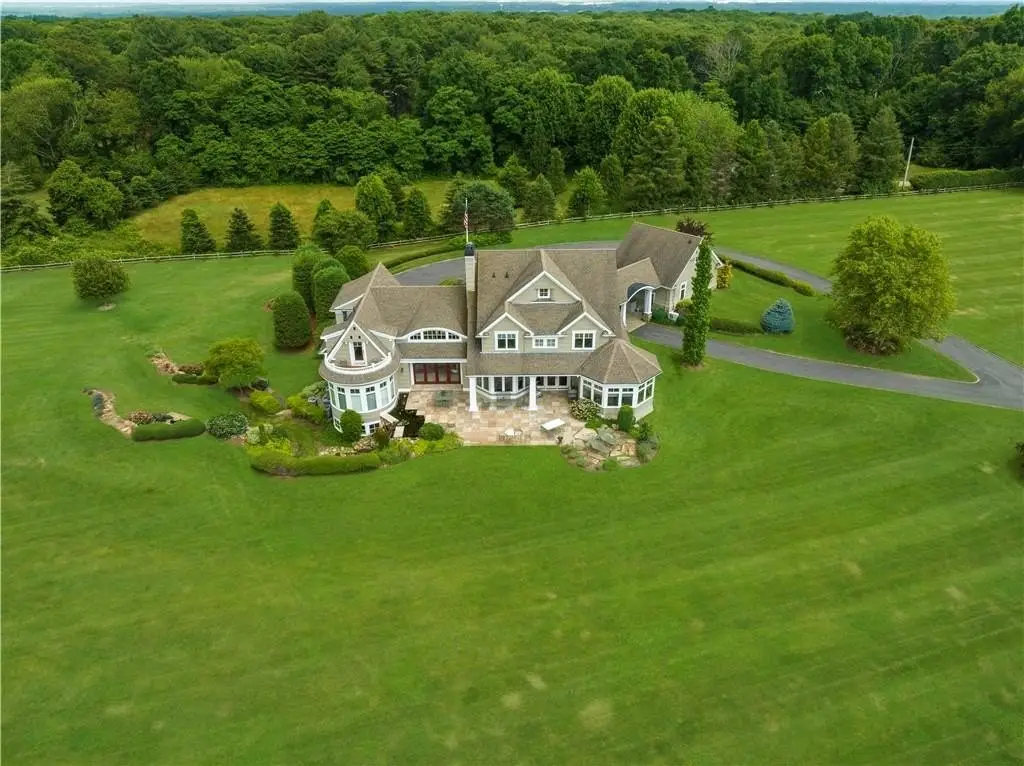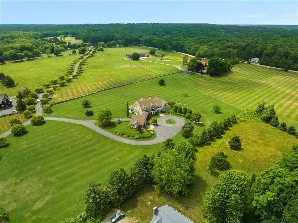 Gerald's Farm is an elegant country compound nestled in a rolling landscape with tree-lined allees and manicured lawns. The main estate house, one of the property's three buildings, is the epitome of a refined rural retreat. Enter the soaring foyer with its marble pool and wall of French doors overlooking the gardens. The home's main living spaces welcome the outside in through stunning fenestration and an airy, open feel. The spacious chef's kitchen has custom cabinetry, marble countertops, and top-of-the-line appliances. A 1st-floor primary suite with a spa-like ensuite bath makes this the perfect multi-generational property. Up the graceful, winding staircase are three more generous bedrooms, two marble-clad baths, and a home gym. Continuing out to the park-like grounds, you discover a separate, two-story carriage house with a dramatic vaulted main hall, ideal for entertaining on a grand scale. Above is a full in-law apartment allowing for a gracious guest suite. The crowning touch is an Amish-built barn featuring a sprawling terrace and fire pit, enhancing the already exceptional list of outdoor amenities. Situated at the crossroads of Exeter, North Kingstown, and East Greenwich, this home is positioned to take full advantage of Southern Rhode Island's natural beauty. Enjoy unparalleled privacy plus easy access to Providence, Boston, and New York. This is a once-in-a-lifetime opportunity for serene country living in one of the region's finest estates.