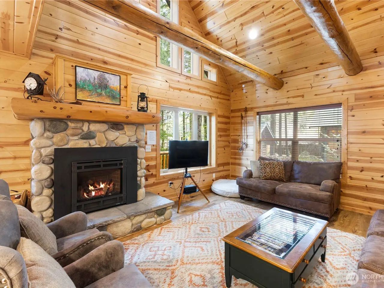 Beautifully crafted Crystal Village retreat with custom details throughout. Vaulted ceilings, skylights, river rock gas fireplace & polished wood interior create a warm, inviting space. Kitchen features hickory cabinets, granite counters & SS appliances. Main floor en suite bedroom, 2 upper level bedrooms , full bath plus loft. Enjoy the 432 SF deck w/ hot tub & gazebo. Relax around a crackling campfire after a day in the mountains. Generator wired w/ 85 KW generator included. Attached single car garage, low maintenance notched pine siding, covered entry. Trails, Crystal Mtn Resort & Mt Rainier National Park are just outside your door.