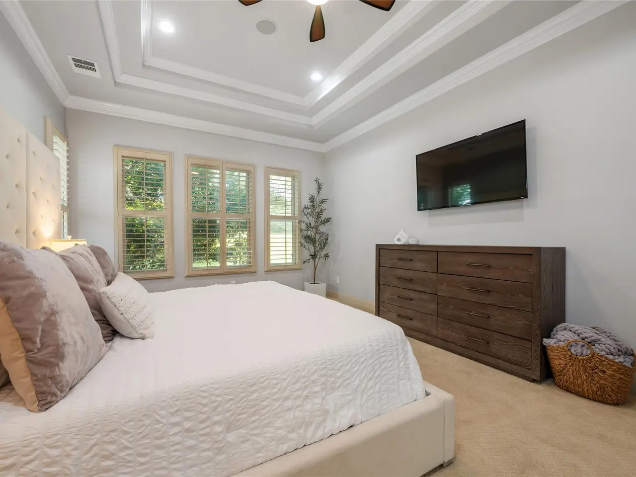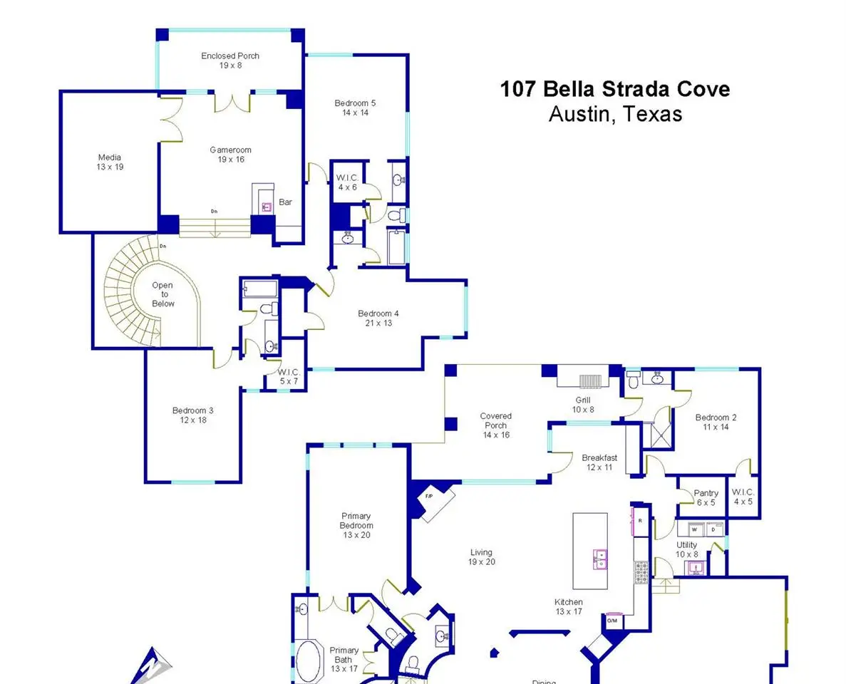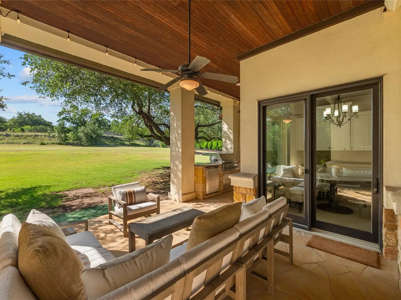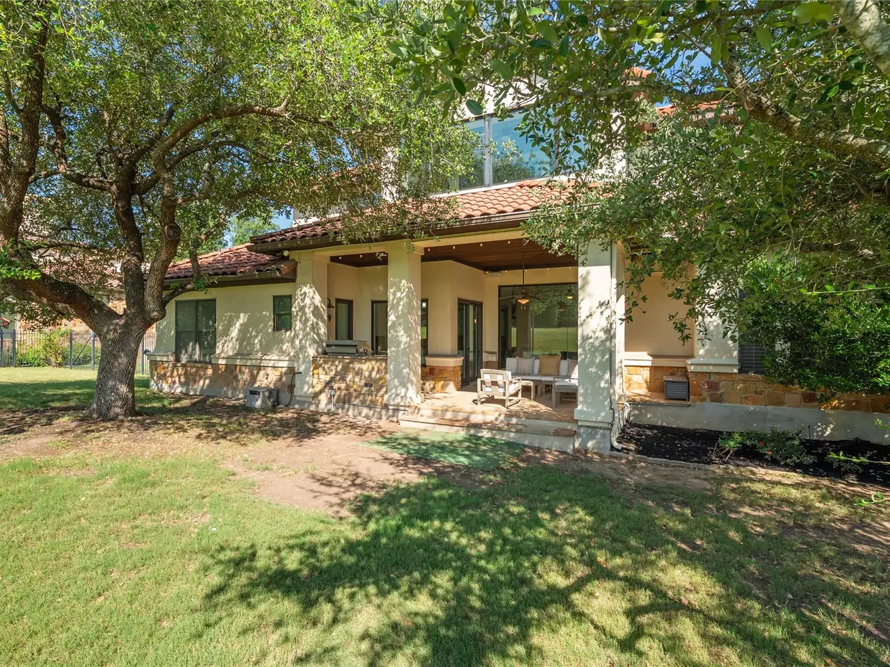 Tucked within a private gated enclave in Lakeway, 107 Bella Strada Cove offers a rare blend of lakeside luxury and Hill Country elegance. This grand, Tuscan-style estate sits on over 1 acre, beautifully framed by mature oaks and resort-style landscaping. With its stucco and stone facade, clay tile roof, and arched iron entry doors, the residence makes a striking first impression in a serene cul-de-sac setting. Inside, refined craftsmanship and natural materials echo the home's architectural roots. The open-concept layout features vaulted ceilings with hand-hewn beams, rich wood and stone finishes, and floor-to-ceiling windows that draw in natural light. The gourmet kitchen is a chef's dream, outfitted with top-tier appliances, custom cabinetry, and a large center island. Generously sized living areas, a formal dining space, and a stone-clad fireplace create an inviting environment for both grand entertaining and everyday comfort. The main-level primary suite is a true retreat, with a spa-like bathroom and spacious walk-in closet. The home also offers a main level dedicated office or study, while the upstairs media room provides the perfect space for movie nights, gaming, or a secondary living area. Residents enjoy the security of a boutique gated enclave, exemplary Lake Travis ISD schools, and quick access to golf courses, marinas, shopping, and Hill Country dining hotspots, making 107 Bella Strada Cove an exceptional blend of serenity and convenience. Tax and assessed values are estimates for illustration purposes only. All figures should be independently verified.