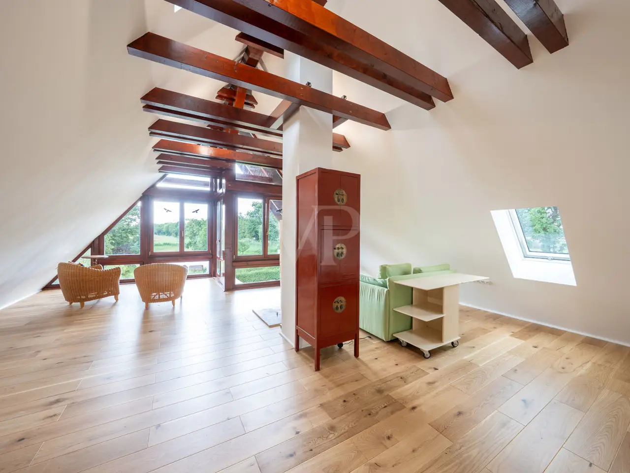 Loft rooms with exposed carpentry and unobstructed views