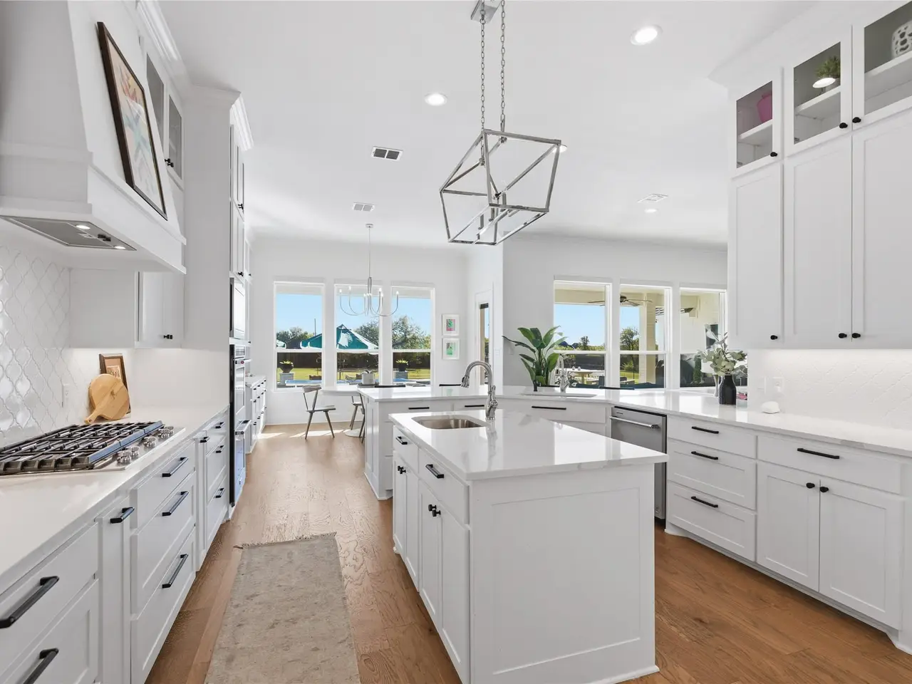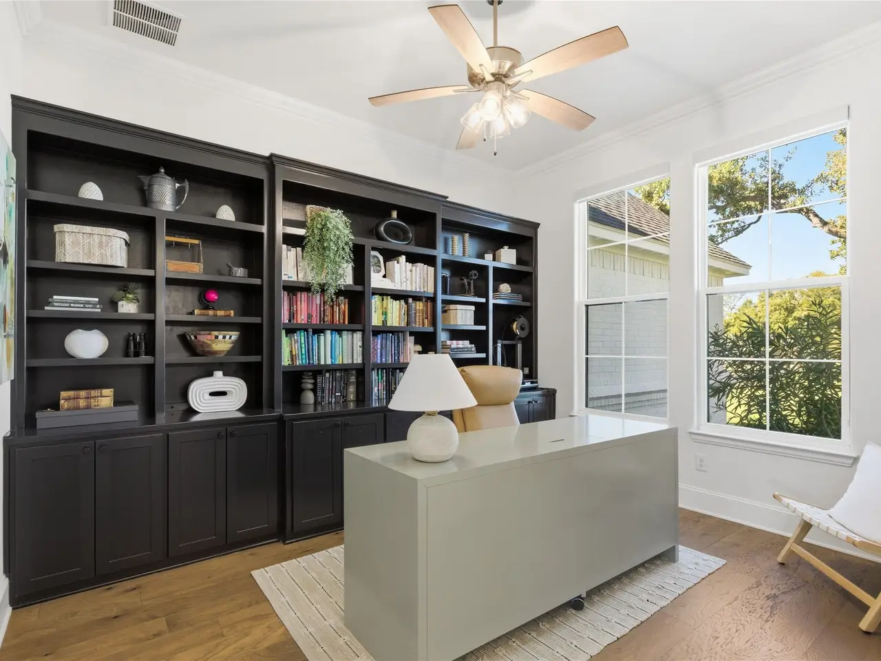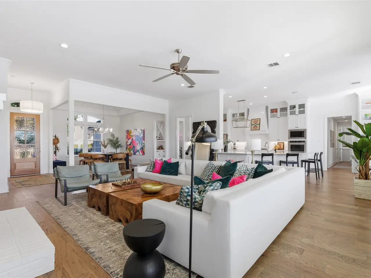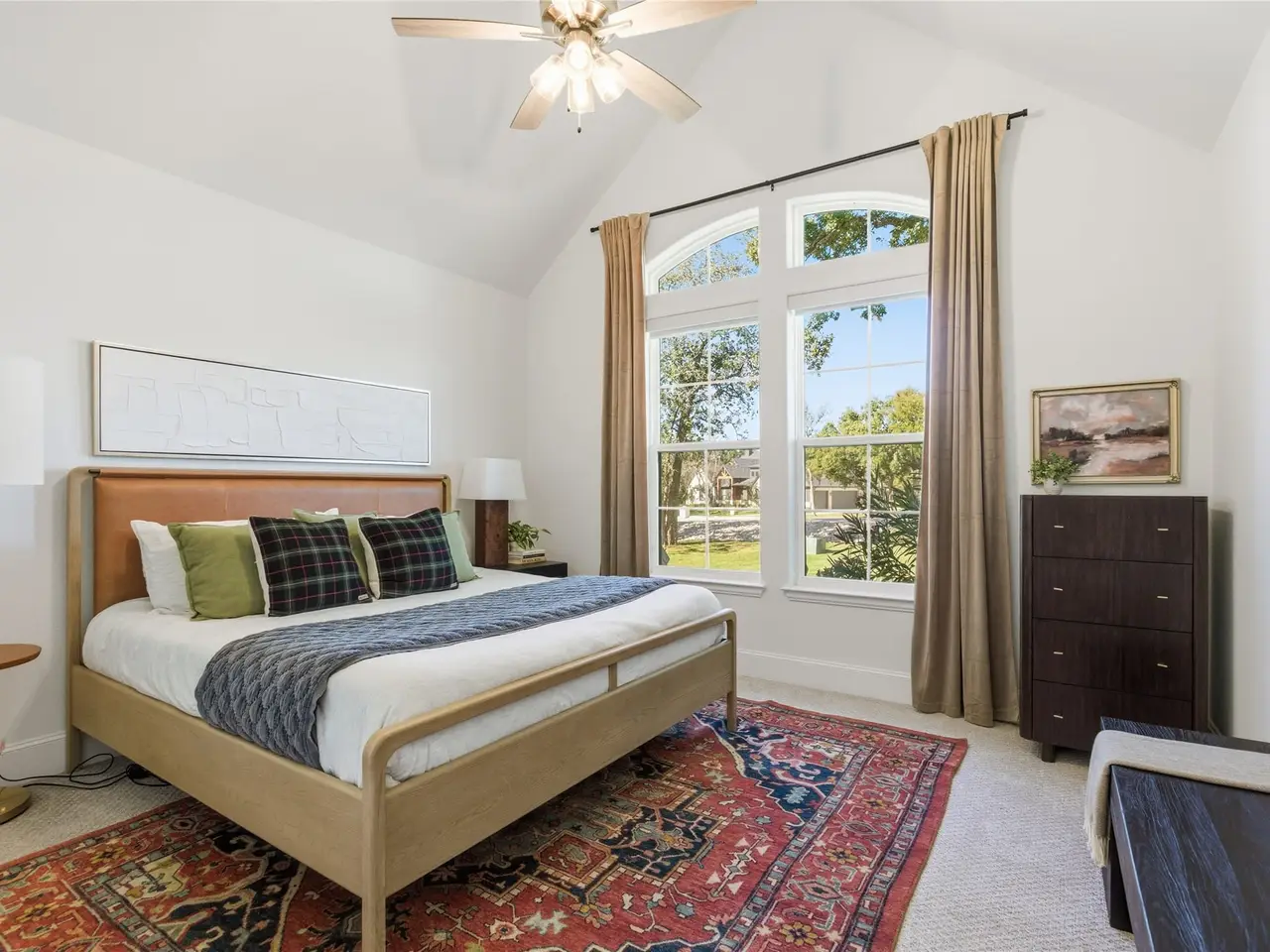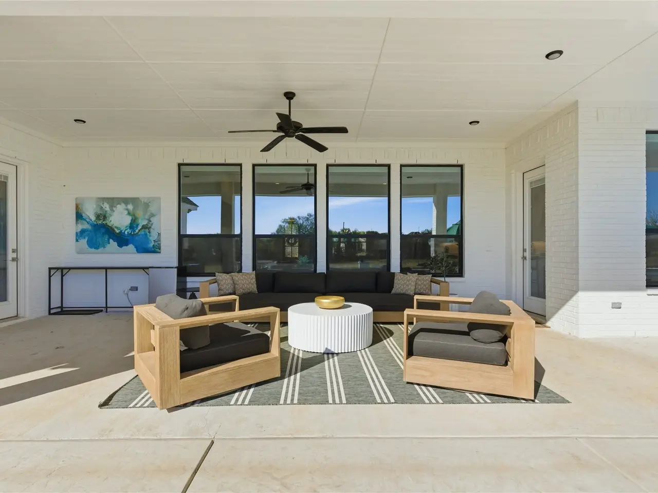 Experience luxury living on over an acre in Aledo ISD with this beautifully appointed home designed for comfort, style, and spacious indoor-outdoor living. A sweeping covered patio overlooks the resort-style pool and lush fenced yard, offering an ideal backdrop for entertaining or unwinding. The light-filled interior embraces an open layout anchored by a grand living room with a fireplace framed by custom built-ins. The elegant dining room showcases coffered ceilings, while the chef-inspired kitchen features quartz countertops, stainless appliances, gas cooktop, double ovens, butlers pantry, and a walk-in pantry. The breakfast room, with its charming built-in buffet and expansive backyard views, is the perfect everyday gathering space. A refined home office with French doors and full wall of built-ins provides the ideal work-from-home setting. The serene primary suite includes vaulted ceilings, a generous sitting area, and a spa-style bath with double vanities, soaking tub, separate shower, and a walk-in closet that conveniently connects to the oversized laundry room. Additional highlights include a second living room with a custom wet bar, a large storage closet, and a flexible bonus room that functions beautifully as a second office, nursery, or home gym.