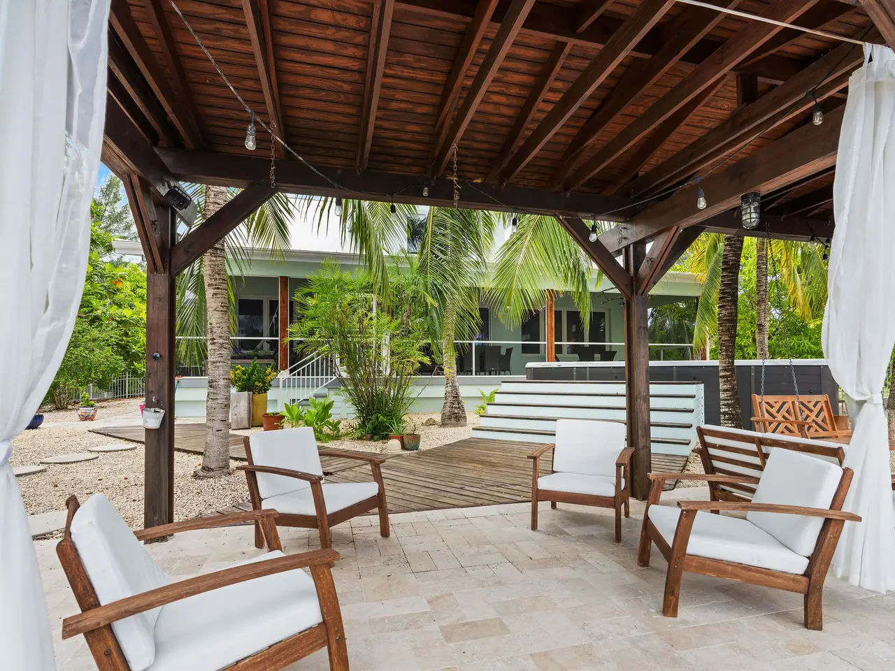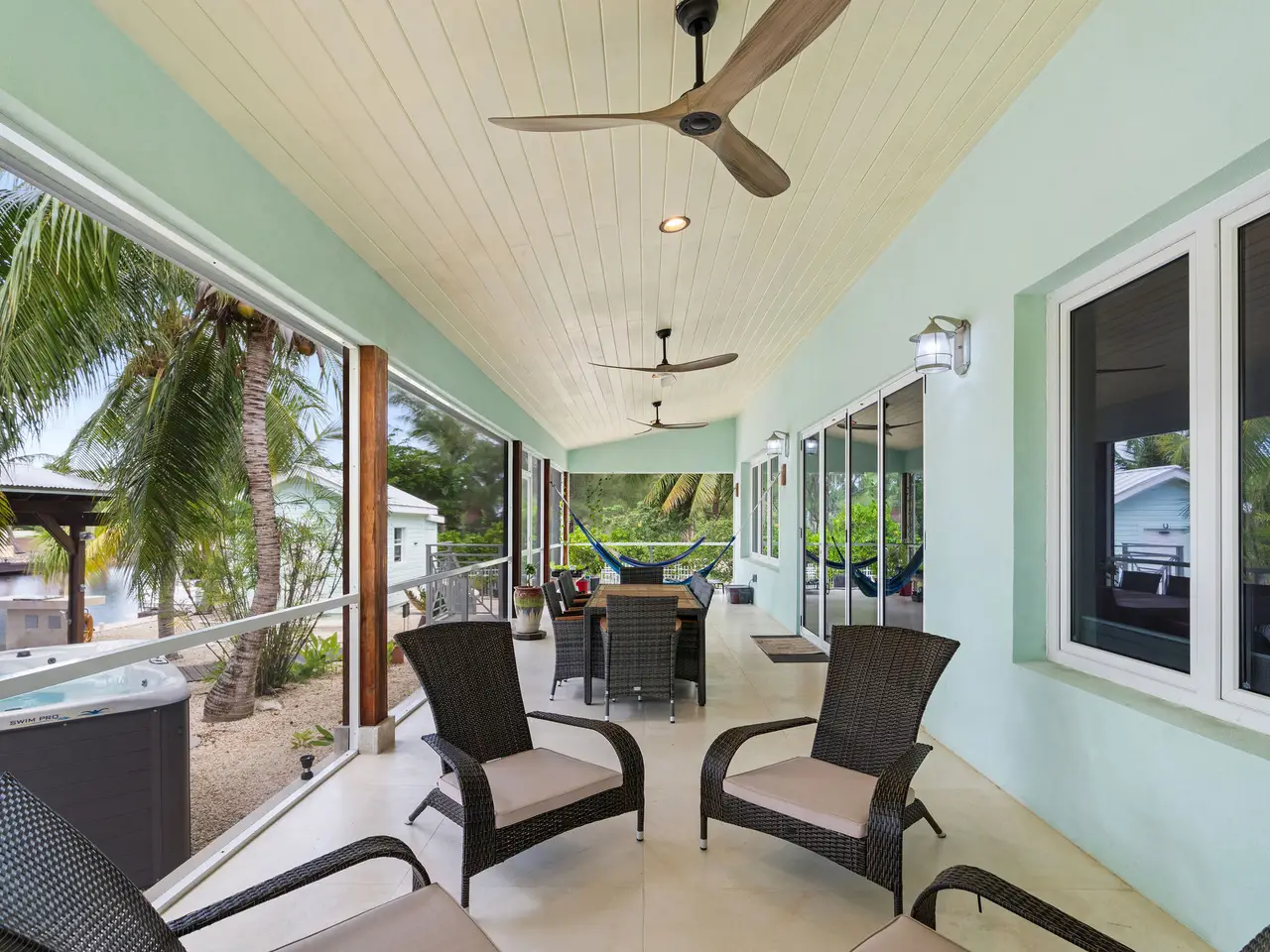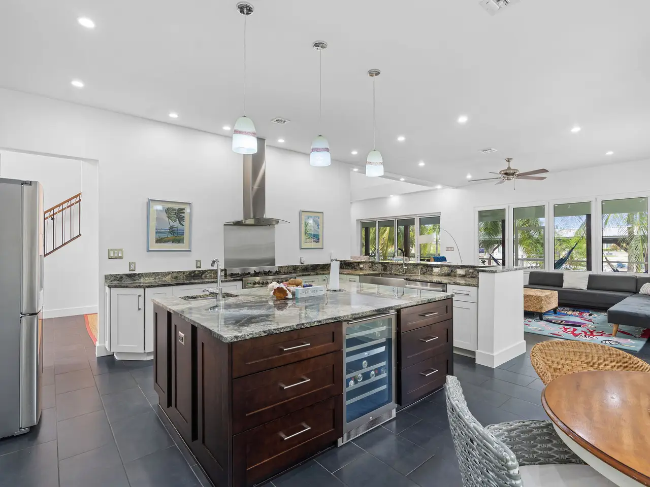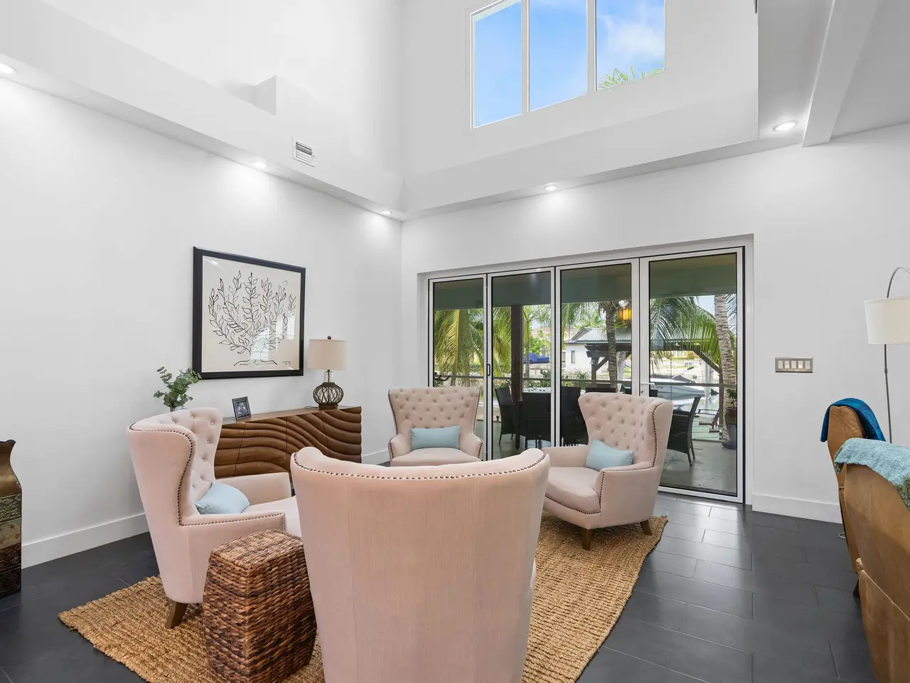 Executive Waterfront Home in Sunrise Landing Located in the highly sought-after community of Sunrise Landing, this stunning executive waterfront home is a must-see. Perched twelve feet above sea level and thoughtfully designed, it offers the perfect blend of safety, style, and comfort, a dream spot for waterfront living and family life Step inside to find soaring ceilings and light-filled rooms throughout. At the heart of the home, the chef's kitchen boasts a large granite island, abundant storage, a butler's pantry, and premium appliances, perfect for entertaining friends and family The primary suite, conveniently located on the main level, features a spa-inspired walk-in shower and a spacious walk-in closet. Upstairs, two additional ensuite bedrooms are separated by a versatile landing ideal as a children's playroom or study area. Outdoor living is equally impressive:•Expansive screened patio for year-round dining and entertaining•A resort-style swim spa framed by lush, low-maintenance gardens built for the climate•A variety of mature fruit trees•A custom 80-foot boat dock with swim ladder and floating jet ski dock Additional highlights include a guest suite with kitchen and bath above the two-car garage, custom-built storage, and exceptional efficiency features:•Custom tilt-and-turn, impact-rated tinted windows•Spray foam insulation in attic and exterior walls•Propane appliances and a 30KW propane generator Built in 2017, this home combines modern efficiency with classic style and the kind of waterfront living families love