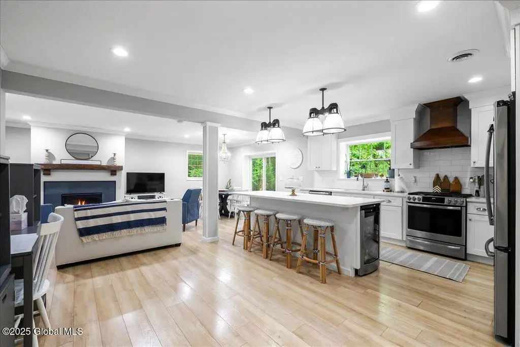 Welcome to 60 Cooper Street in the Lake George Village! Enjoy year round Adirondack fun in this large, well appointed home with a beautiful great room, gas fireplace, modern kitchen with island and pantry, large family room with half bath, large primary bedroom suite, beautiful primary spa like bathroom, 3 queen size bedrooms and a large main bathroom. Attached is a complete 2 bedroom 1 bath in-law apartment for guests, extended family, or use as a full time rental. Outdoors, enjoy sitting on multiple covered decks or the backyard patio. You're 4 blocks to Canada Street for all the restaurants, shopping, entertainment, area hiking, and lake activities that Lake George has to offer. Properties like this don't come available in the village too often. Make sure you see this one today!