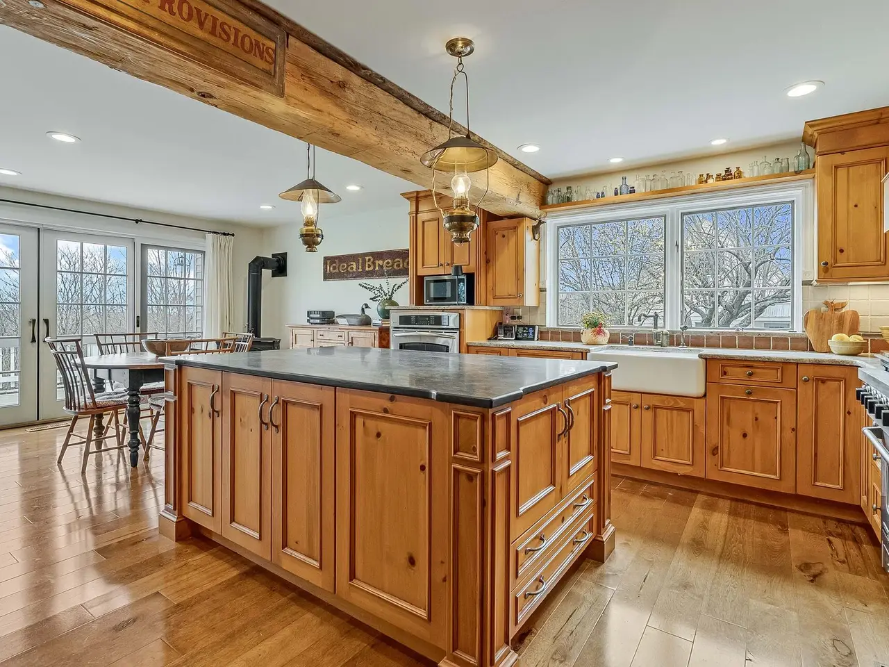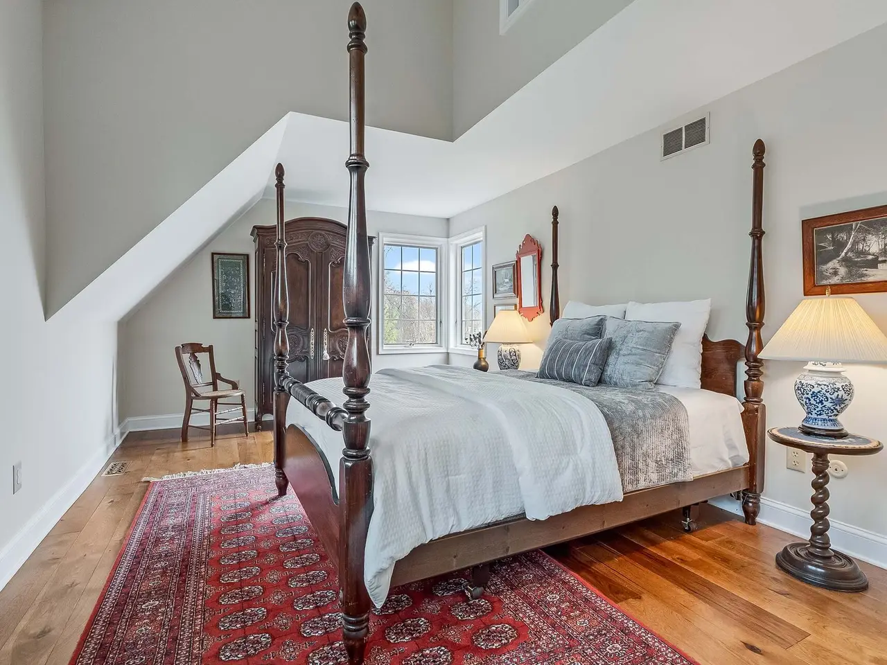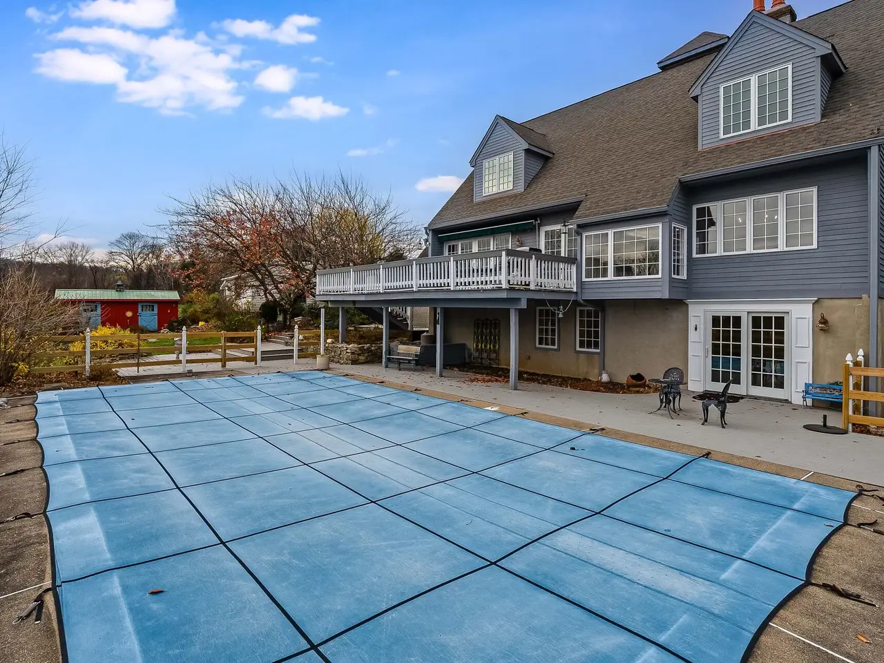 Welcome to 56 Zellers Rd in the desirable Schooley's Mountain section of Long Valley. A custom Colonial offering timeless style, southern exposure, and modern comfort on nearly 8 acres of open countryside. Built in 1982 and completely renovated in 2006, this exceptional home features 4 bedrooms, 3.5 bathrooms, and beautiful hardwood floors throughout. The 1st floor primary suite offers convenience and privacy with custom built-in cabinetry and a well-appointed full bath. The spacious eat-in kitchen is the heart of the home, showcasing custom cabinetry with granite countertops, a Viking range, an additional oven, a farmhouse sink, and a charming gas burning stove. The open layout flows into a den or sitting room and an inviting dining room with a wood-burning fireplace. A second fireplace warms the living room, creating a cozy atmosphere. Upstairs are three bedrooms and a full bath, plus a full walk-up to the third-floor loft offering space for play, leisure, or storage. The walk-out lower level includes a family room, full bath with Kohler walk-in tub, laundry, and utility rooms with two new well tanks. A new double Geothermal heating and AC system provides year-round comfort and efficiency. Step outside to multi-level Trex decking with an automatic awning, or enjoy the patio and in-ground pool surrounded by sweeping valley views. The detached oversized two-car garage includes a second-floor loft for a studio, gym, or storage, and features driveway grates for runoff control.