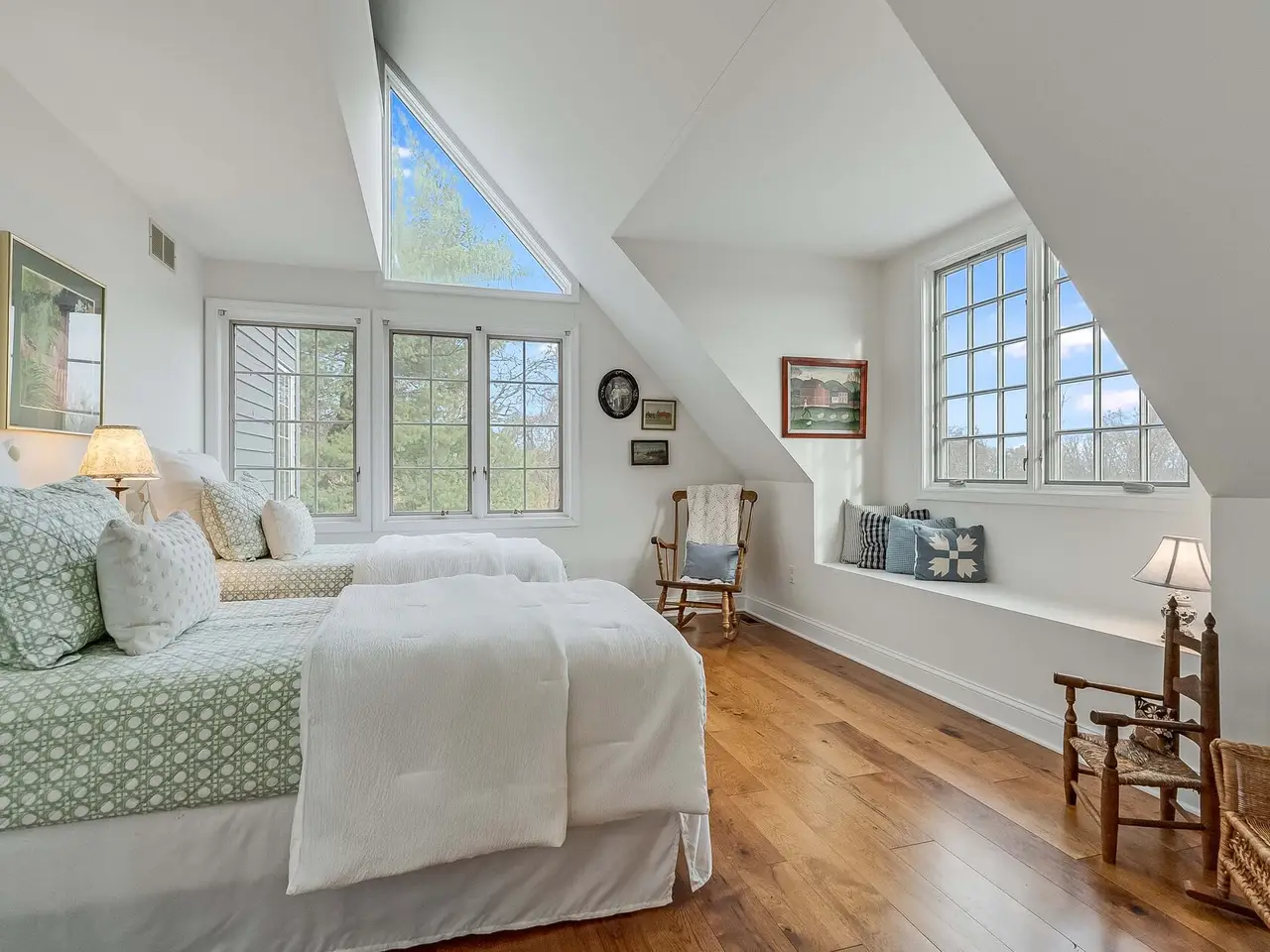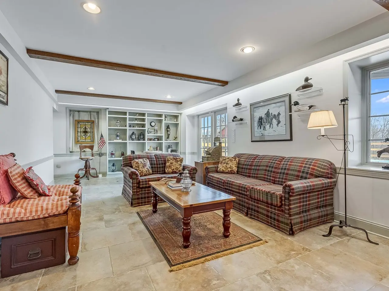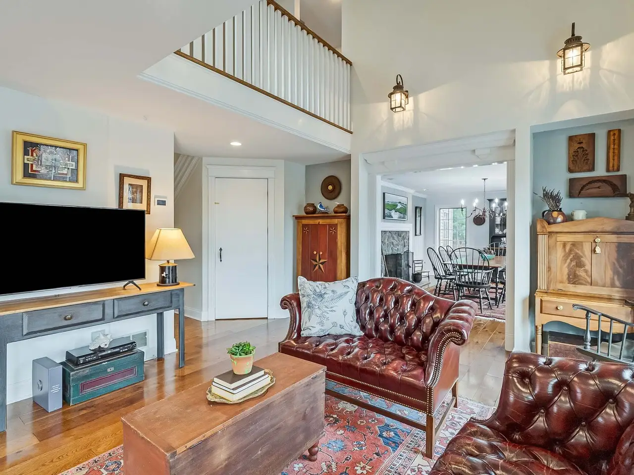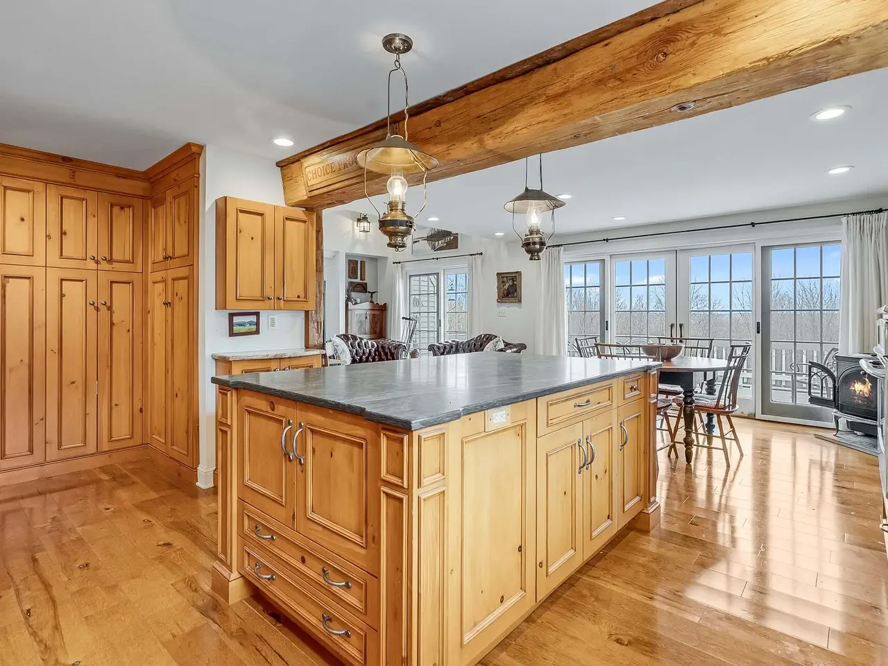 Welcome to 56 Zellers Rd in the desirable Schooley's Mountain section of Long Valley. A custom Colonial offering timeless style, southern exposure, and modern comfort on nearly 8 acres of open countryside. Built in 1982 and completely renovated in 2006, this exceptional home features 4 bedrooms, 3.5 bathrooms, and beautiful hardwood floors throughout. The 1st floor primary suite offers convenience and privacy with custom built-in cabinetry and a well-appointed full bath. The spacious eat-in kitchen is the heart of the home, showcasing custom cabinetry with granite countertops, a Viking range, an additional oven, a farmhouse sink, and a charming gas burning stove. The open layout flows into a den or sitting room and an inviting dining room with a wood-burning fireplace. A second fireplace warms the living room, creating a cozy atmosphere. Upstairs are three bedrooms and a full bath, plus a full walk-up to the third-floor loft offering space for play, leisure, or storage. The walk-out lower level includes a family room, full bath with Kohler walk-in tub, laundry, and utility rooms with two new well tanks. A new double Geothermal heating and AC system provides year-round comfort and efficiency. Step outside to multi-level Trex decking with an automatic awning, or enjoy the patio and in-ground pool surrounded by sweeping valley views. The detached oversized two-car garage includes a second-floor loft for a studio, gym, or storage, and features driveway grates for runoff control.