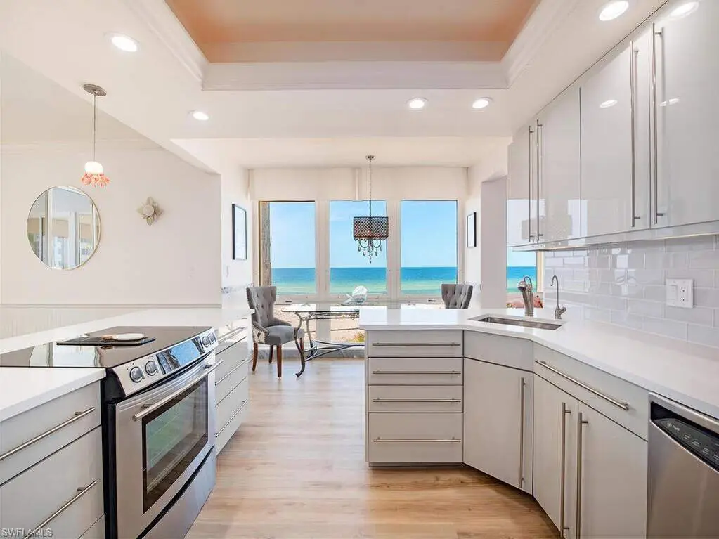 Welcome to La Mer, THE Gulf-Front Park Shore and Venetian Village boutique waterfront SWEET SPOT! Be spoiled by both the wonders of beachfront living, plus the added luxury of having Venetian Village, the neighborhood's charming upscale European-Style shopping and fine dining destination, be just steps away. Not only is La Mer a SWEET SPOT, but so is this SW corner "04", well renowned for its highly preferred location, location, location within the tower. Happily, this Sunny, bright, cheerful, comfortably generous residence showcases lovely improvements, whether it be the removal of walls to open up the crisp, sleek chef's kitchen, the updated wide-plank LTV flooring, fresh paint, or updated baths. Also unique to this residence is its immediate easy access to two of La Mer's three guest suites, plus newly Re-Mastered Fitness, all located on the second floor too! Unique to La Mer Tower is an owner's rooftop gathering area, along with a very special rooftop guest suite, and 24-hour security. Owners further enjoy the oversized upscale south-facing pool, spa, open-air and covered patio, and direct access to the Park Shore Beach-Front 1.5 mile walking and jogging path. ATTENTION Boaters ... Feel free to inquire about the Seller-owned 12'6" wide, 35'+ in length B13 boat slip with new remote controlled 16,000 lb. dual motor lift, available separately at the newly refurbished Venetian Bay slips, located just north of Venetian Village!