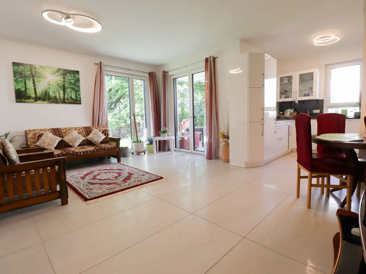Beautiful garden apartment in Erlangen-Süd - quietly located in second row! For sale is an attractively designed apartment with a living space of approx. 96 m², which is characterized by an upscale quality of furnishings. The property was completed in 2024 and is in as-new condition. The apartment offers a total of four rooms, three of which are spacious bedrooms, which is particularly suitable for families or couples with additional space requirements. The covered terrace and the garden (garden approx. 68 sqm) offer space to "sunbathe and enjoy" or for the children to "play and run around" in summer. The orientation is perfect to S/W: One of the highlights of this property is the modern underfloor heating, which has been installed in all rooms and ensures even heat distribution. Two high-quality bathrooms offer additional comfort and make everyday life easier in a household with several people. The bathrooms are fitted with modern fittings and elegant tiles and ensure a pleasant feel-good atmosphere. The apartment also has a particularly spacious garden area with a beautiful covered terrace, which offers a variety of uses and significantly increases the quality of living, especially in the summer months. The apartment is located in the building, which was completed in 2024 and is characterized by its modern architecture and high-quality construction. Thanks to the well thought-out room layout, the apartment offers an ideal balance between communal areas and places of retreat. The central living area is bright and open and creates an inviting ambience. The adjoining kitchen offers ample space for culinary creations and promotes communicative interaction thanks to its proximity to the living area. The area surrounding the property offers an excellent infrastructure with short distances to public transport, shopping and leisure facilities. The central location makes it possible to enjoy city life to the full, while at the same time various recreational areas nearby offer space for relaxation. In summary, this apartment presents itself as an attractive residential property for all those who value high-quality furnishings and a comfortable living atmosphere. The combination of modern amenities, generous living space and practical outdoor areas makes this property a first-class choice for discerning buyers. Potential buyers are cordially invited to view this apartment on site to see the benefits for themselves. Please contact us for further information or to arrange a viewing.