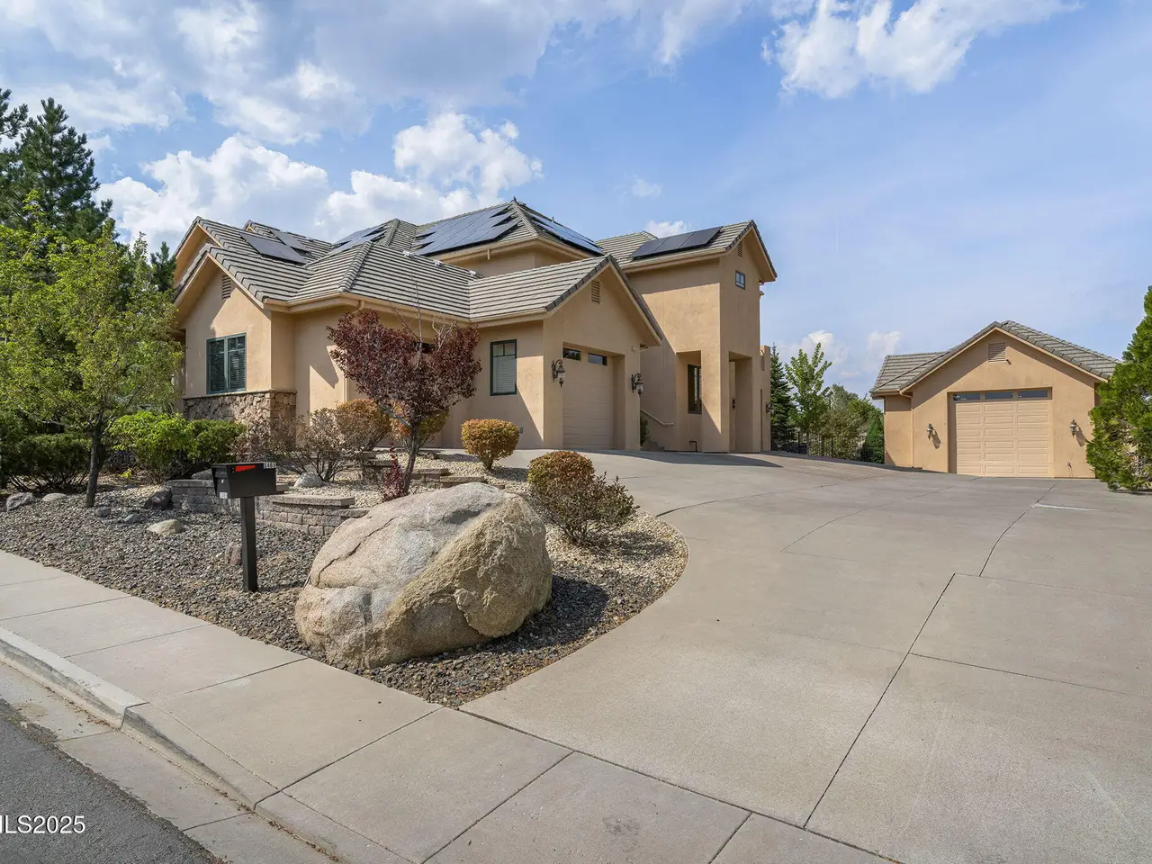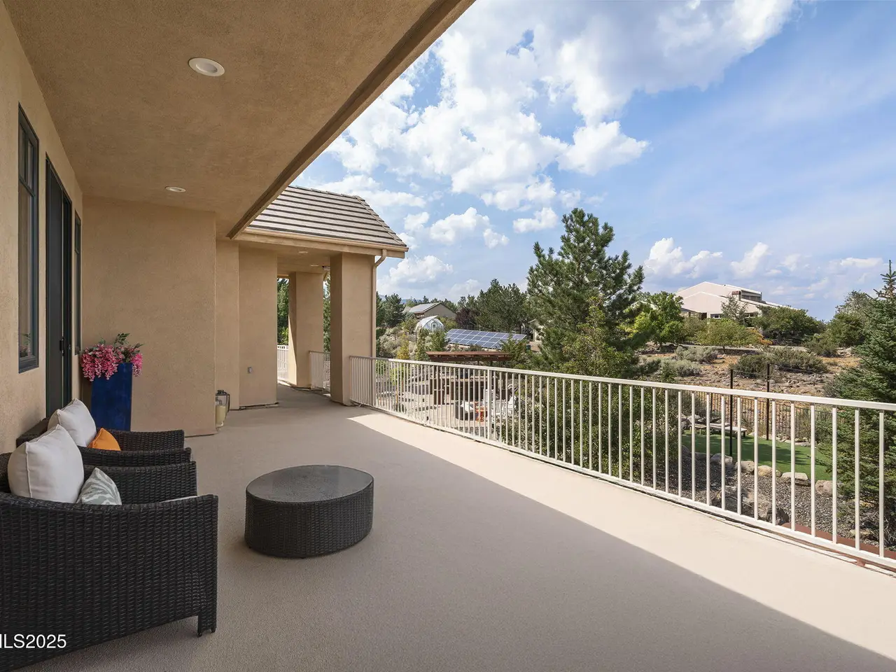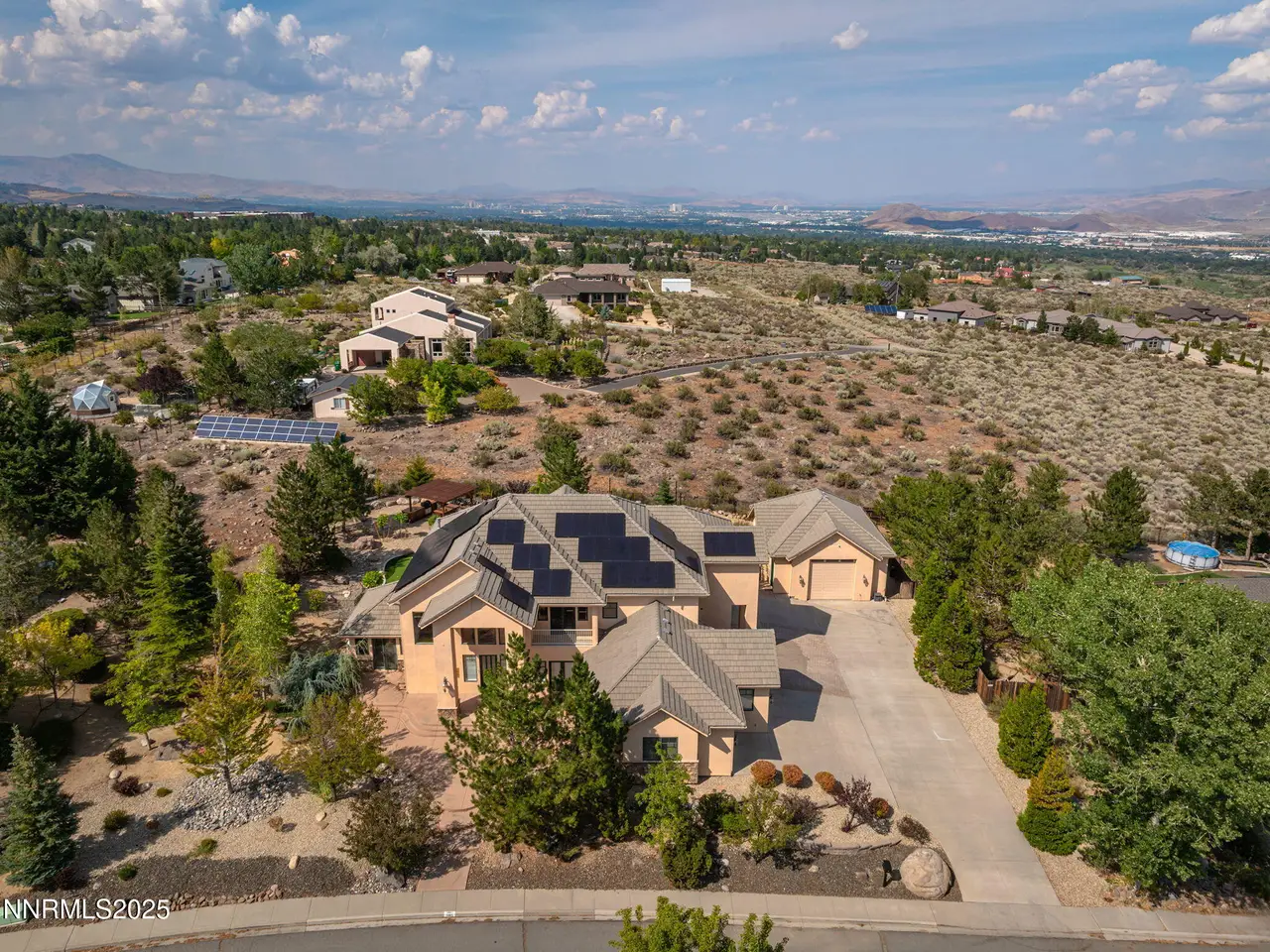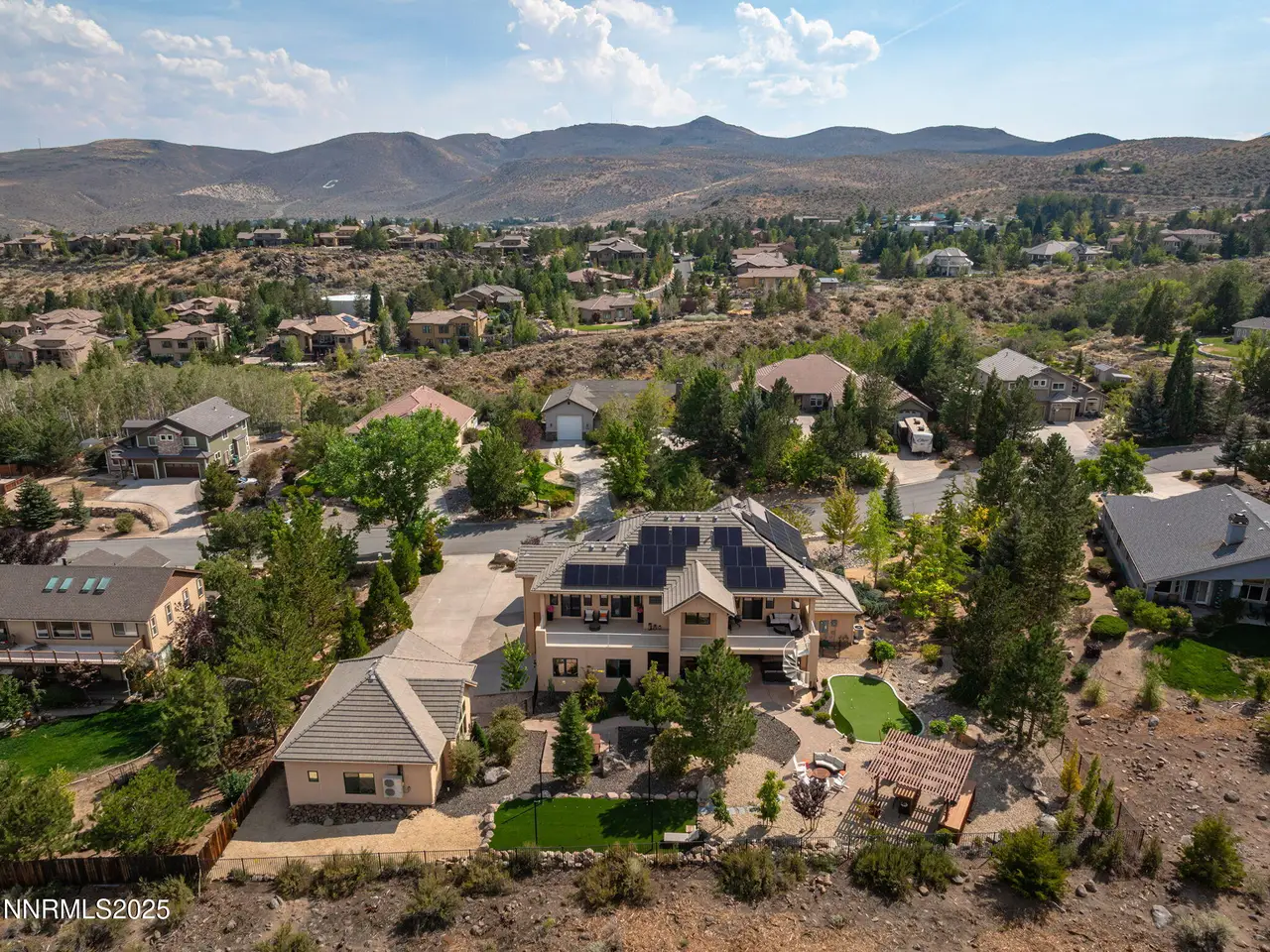 Welcome to this stunning custom executive home just outside the highly sought-after Saddlehorn community, offering the perfect blend of luxury, functionality, and location — all with no HOA. Situated on over ½ acre, this home boasts an oversized 3-car attached garage plus a 33' deep RV garage with a 12x12 door, providing ample space for all your vehicles, toys, and hobbies. Inside, you'll find a dramatic floorplan designed for both comfort and entertaining. The primary suite features a cozy fireplace, a large private balcony with sweeping city views, and a spa-like retreat. Each of the additional three bedrooms is en suite, with one bedroom and bathroom conveniently located on the main floor. The home also includes a spacious loft, an oversized den/office making this layout exceptionally flexible. The gourmet kitchen with new stainless appliances, expansive patios, and upper decks create seamless indoor-outdoor living, ideal for entertaining family and friends. The backyard is truly an entertainer's dream, featuring a covered barbeque area with bar, a putting green, and a hot tub and spiral staircase to the master— the perfect setup for year-round enjoyment. Dual stairways provide easy access to the second floor, while a large upstairs laundry room with sink and folding area adds everyday convenience. Detached RV garage is plumbing-ready and has mini splits for temperature control Built with R55 quality construction for enhanced sound resistance and energy efficiency Enjoy city and mountain views from multiple vantage points throughout the home Unmatched Location: Just 5 minutes to Galena Walking Trails Walking distance to parks, tennis courts, school, and hiking trails Less than 20 minutes to world-class skiing and Lake Tahoe recreation This executive residence in Saddlehorn is the perfect combination of luxury living, versatile design, and outdoor lifestyle — a rare opportunity that is sure to impress.