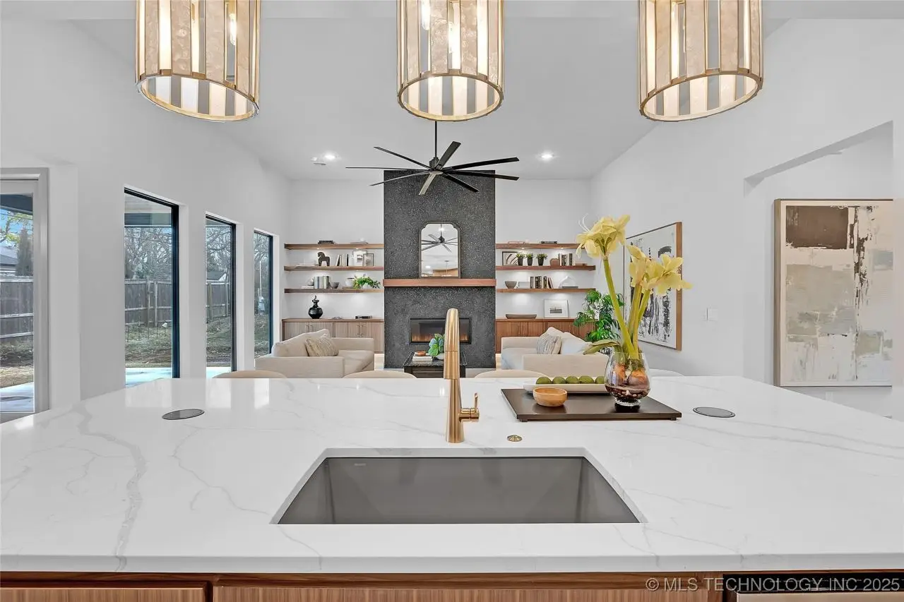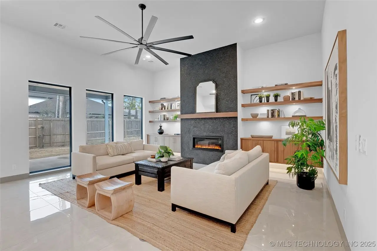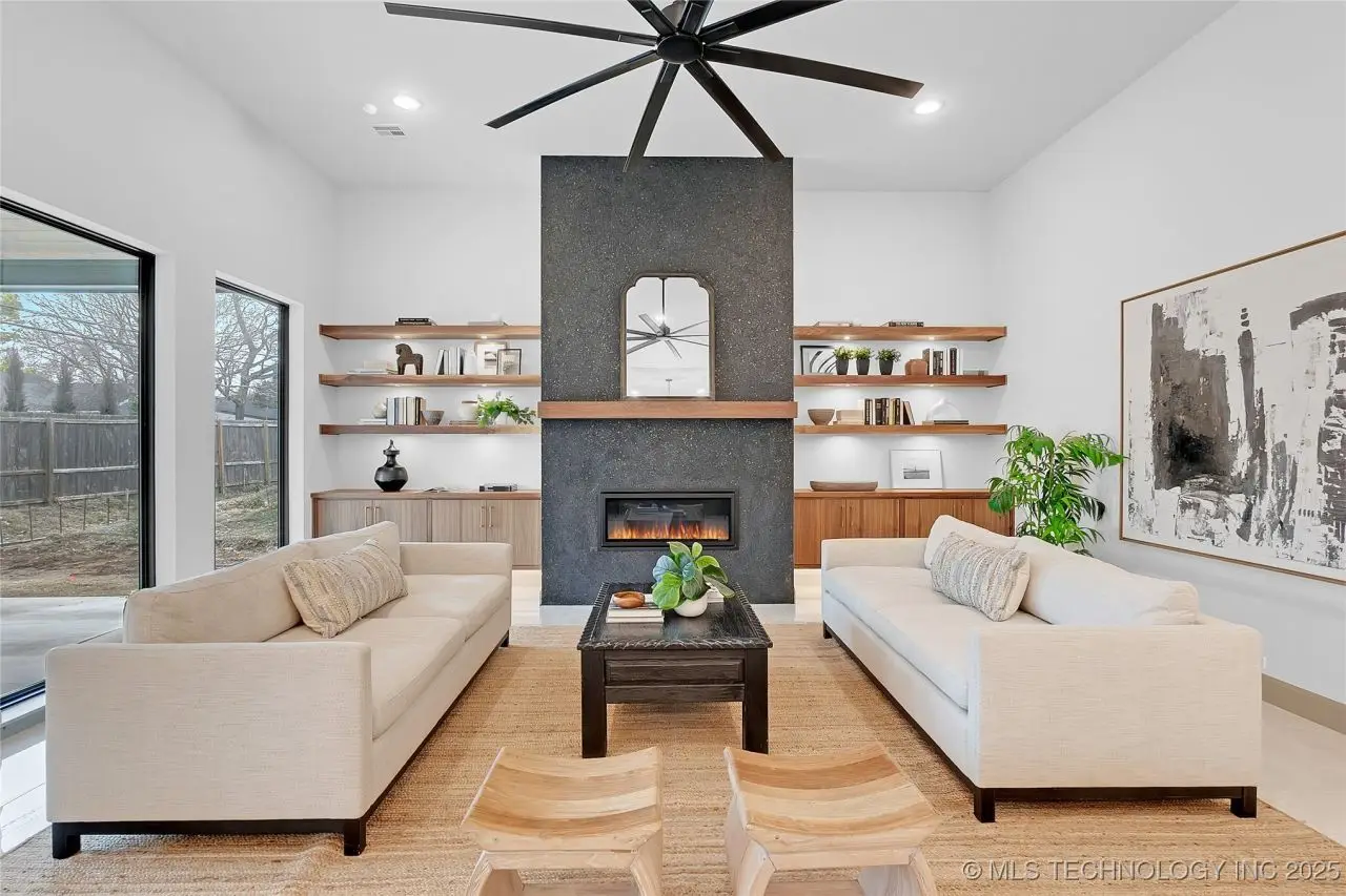 Stunning New Construction home in prime mid-town location. Welcoming & bright 2-story entry w/ windows above the entrance to 2nd story. Tiled floors throughout first floor. Great Room w/wall of floor-to-ceiling windows, fireplace flanked by open shelves and cabinets below, & open to Kitchen w/large walnut island, w/ pop-up outlets in quartz counter & 3 pendant lights above. Pantry w/sink, 2nd refrigerator, oven & microwave. Spacious Dining area w/attractive brass chandelier, wood trimmed wall and patio access. Main Bedroom w/double recessed tray ceiling & Bath w/free-standing tub, curbless walk-in shower, 3 vanities, & walk-in closet w/built-in chest. Laundry w/sink, desk area, & abundant storage. Powder Bath, Office, & Mud Room. Upstairs features 3 spacious Bedrooms, 4 Baths, Game Room, & huge Flex Room which could be a 5th Bedroom.