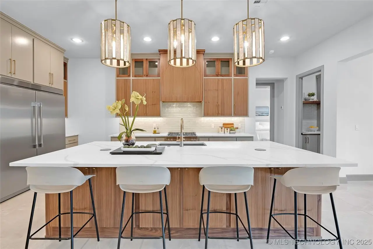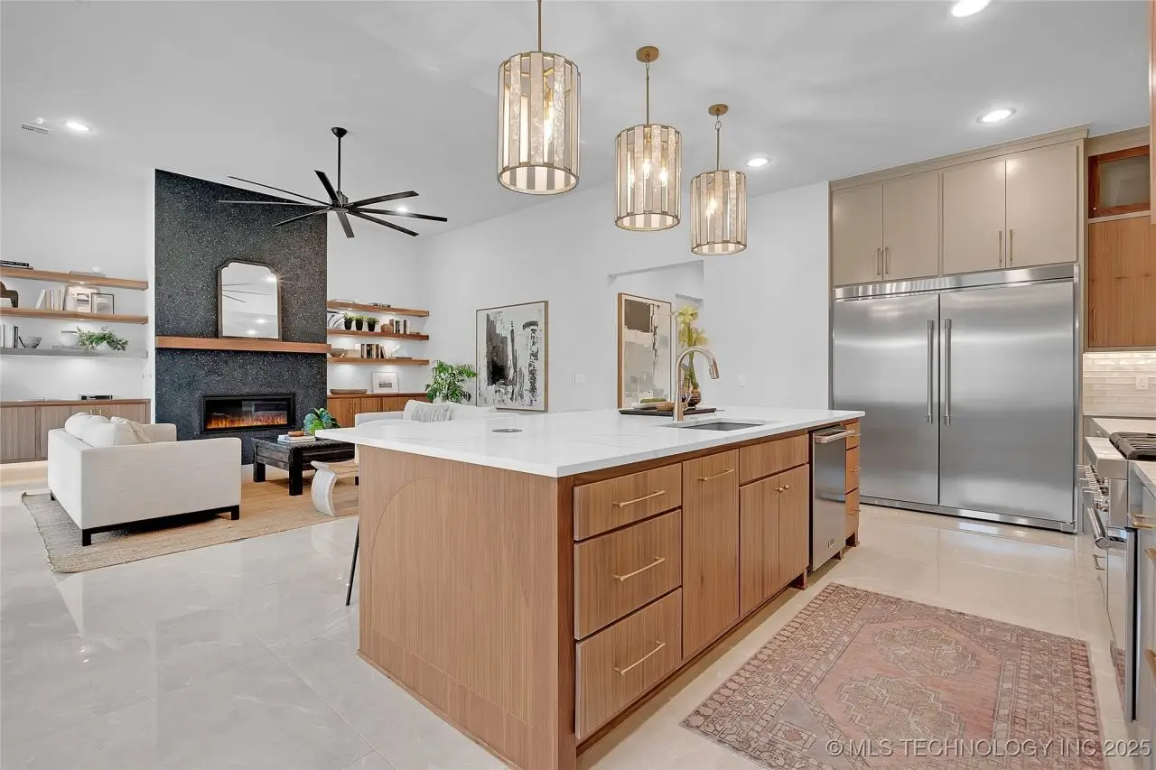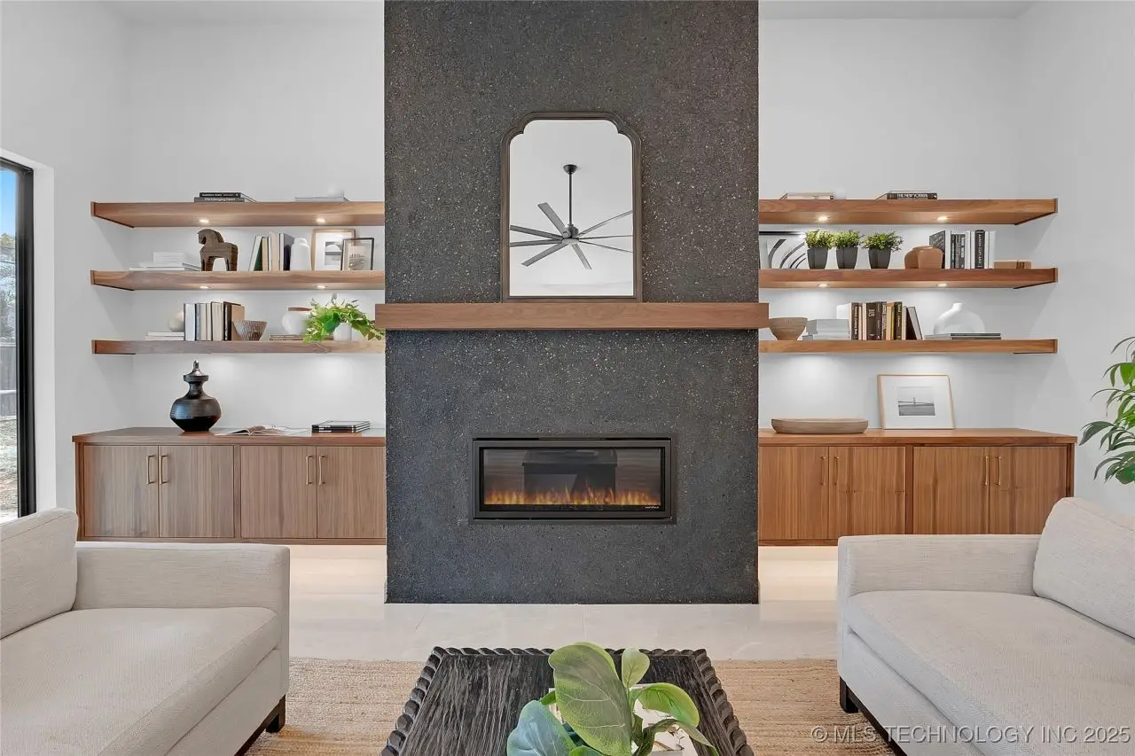 Stunning New Construction home in prime mid-town location. Welcoming & bright 2-story entry w/ windows above the entrance to 2nd story. Tiled floors throughout first floor. Great Room w/wall of floor-to-ceiling windows, fireplace flanked by open shelves and cabinets below, & open to Kitchen w/large walnut island, w/ pop-up outlets in quartz counter & 3 pendant lights above. Pantry w/sink, 2nd refrigerator, oven & microwave. Spacious Dining area w/attractive brass chandelier, wood trimmed wall and patio access. Main Bedroom w/double recessed tray ceiling & Bath w/free-standing tub, curbless walk-in shower, 3 vanities, & walk-in closet w/built-in chest. Laundry w/sink, desk area, & abundant storage. Powder Bath, Office, & Mud Room. Upstairs features 3 spacious Bedrooms, 4 Baths, Game Room, & huge Flex Room which could be a 5th Bedroom.