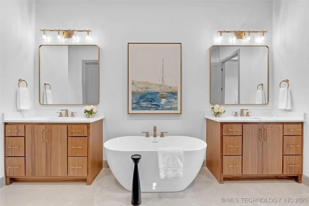 Free-standing tub in main bath