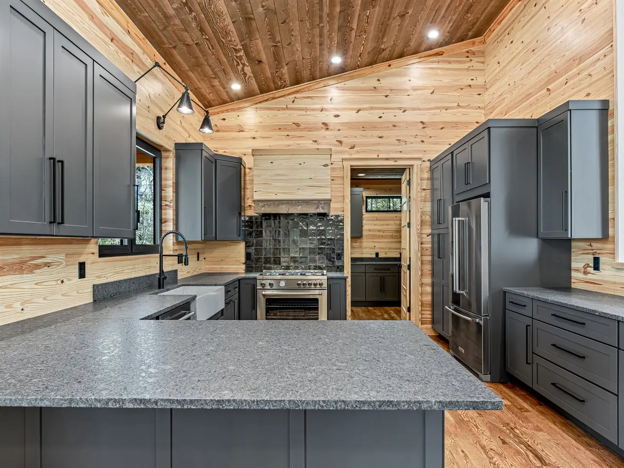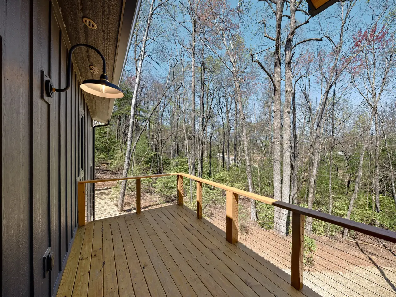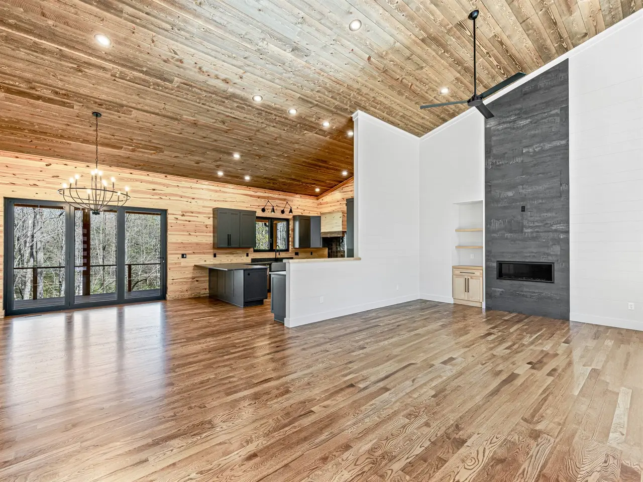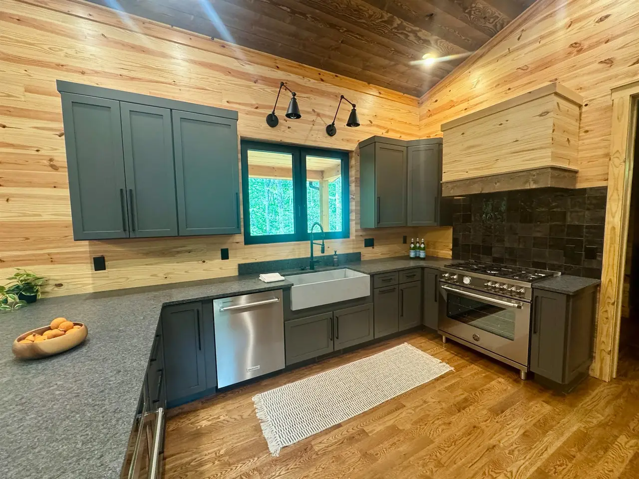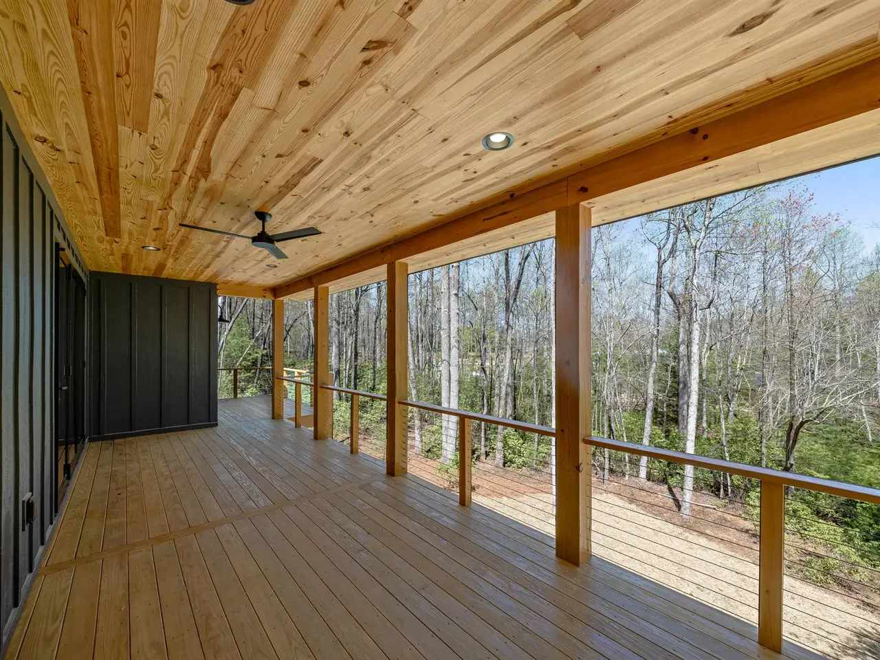 Welcome to this custom-built gem by Joe Bryson Construction, one of Brevard's top builders. This stunning single-level home greets you with a grand rock entry and a charming stone breezeway that connects the detached two-car garage to a spacious mudroom. Inside, you'll find soaring wood-clad cathedral ceilings, an open layout, and a striking fireplace with gas logs at the heart of the home. The kitchen is thoughtfully designed, perfect for everyday living or entertaining. Three inviting bedrooms feature custom accent walls, plus there's a bonus room ideal for a home office or gym. Quality craftsmanship shines throughout - from the stacked stone in the entryway to the fine finishes in every room. Bi-folding glass doors open onto a large private deck overlooking a peaceful, wooded setting. A perfect blend of comfort and style!