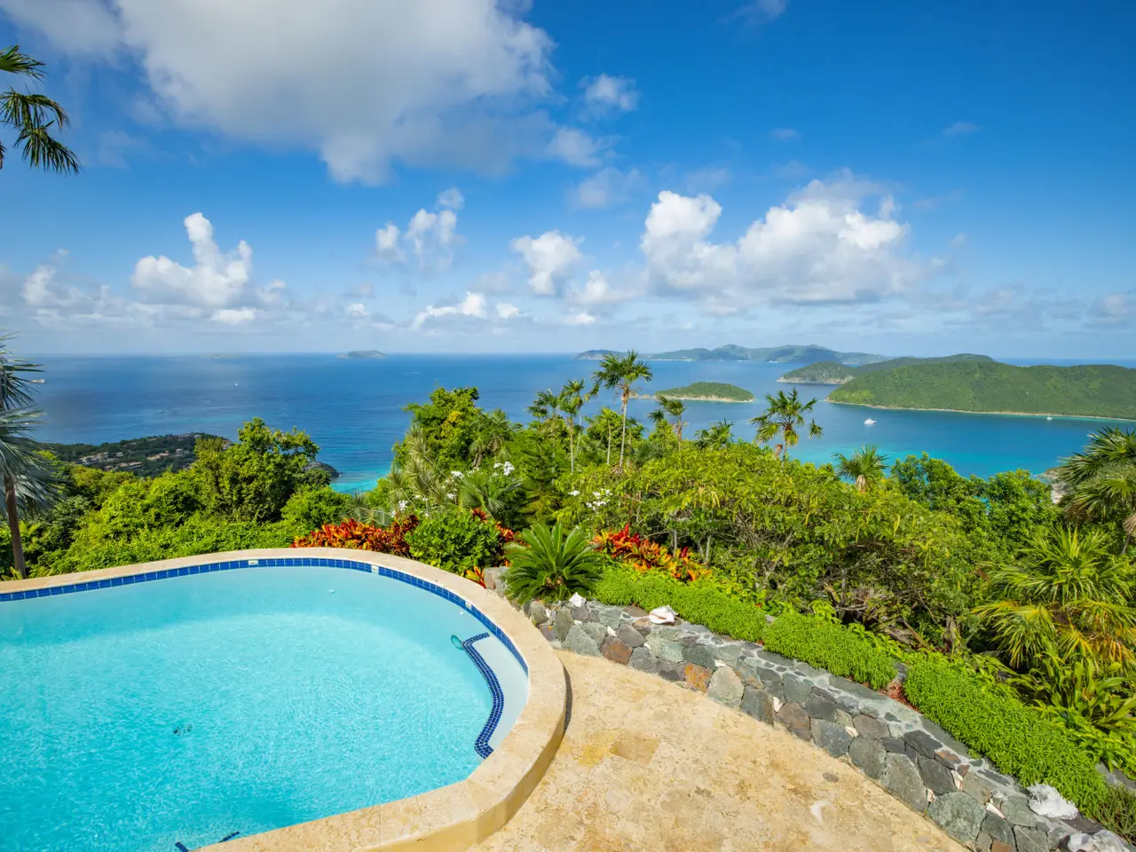 Rare opportunity to own an ultra-private, gated and secure compound situated in over two acres of the prestigious Catherineberg neighborhood. Bordering St. John's National Parkland and perched over 700 ft. above sea level, this exclusive estate offers fall-away views of the famed north shore beaches, the BVI's and beyond. Level entry through tropical gardens to sparkling pool, lawn with hot-tub gardens and sprawling terraces that highlight the sweeping vistas allowing for effortless indoor-outdoor living. An entertainer's dream. A half a mile of meandering stone walkways invites tranquil strolls through the terraced grounds of fruit trees. The sky is truly the limit for customizing this unique property into your ideal island escape.An extraordinary opportunity awaits to own an ultra-private, gated, and secure compound sprawled across over two acres of fenced property in the prestigious Catherineberg neighborhood. Nestled along the border of St. John's National Parkland and perched over 700 feet above sea level, this exclusive estate offers breathtaking fall-away views of the renowned north shore beaches, the British Virgin Islands, and beyond.