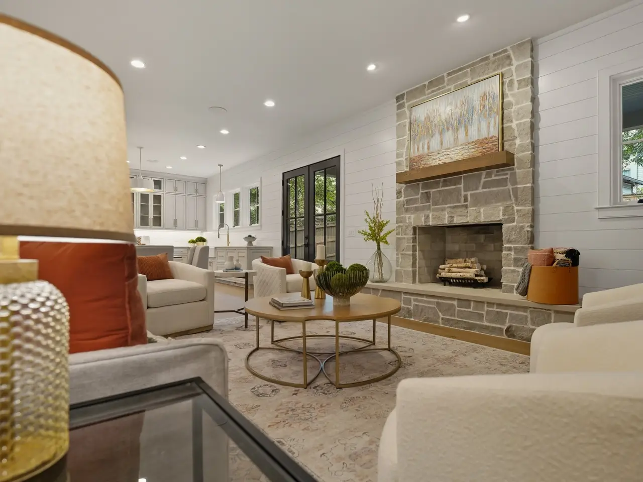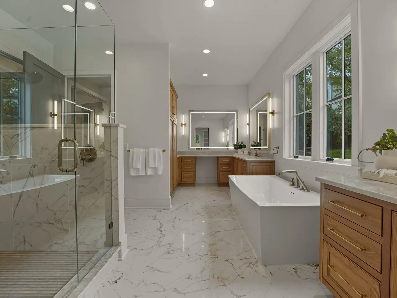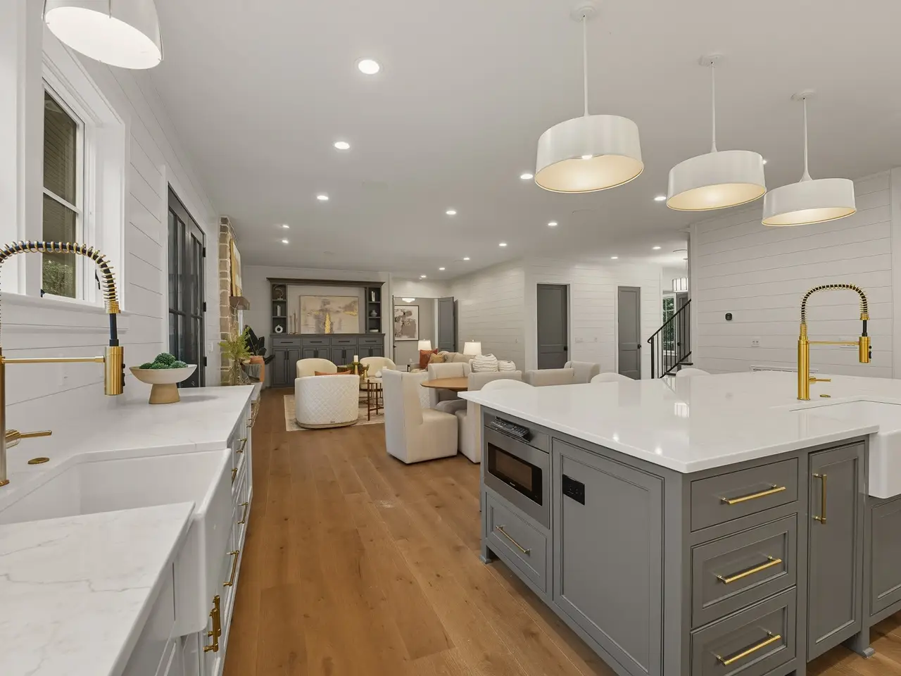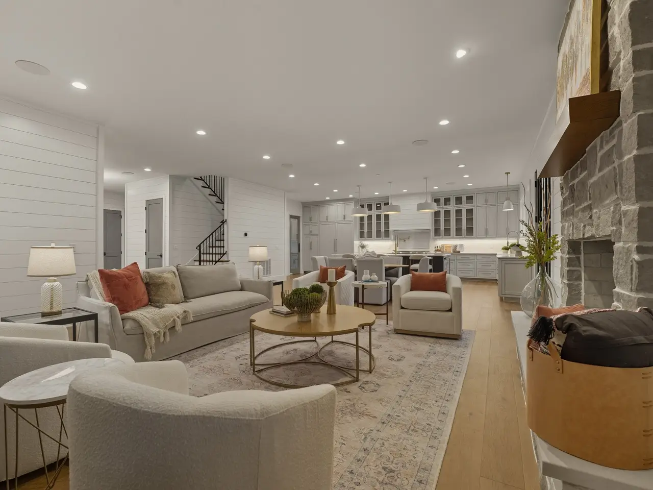 Every inch of this remarkable home reflects a deep commitment to quality, craftsmanship & timeless design. Built on a steel-reinforced poured concrete foundation w/brick construction, this residence combines unwavering strength w/exquisite architectural details. Classic bead board ceilings on front & back porches along w/Coppersmith gas lanterns set the tone for a home that's as beautiful as it is enduring. Upon entering, you are greeted by the soothing sounds of your personal Sonos amp system w/18 ceiling speakers & individual fader controls smartly placed throughout common living areas. Kitchen is a chef's dream w/Calacatta Miraggio Cove Quartz countertops, 48" Wolf gas range w/double ovens, Sub-Zero refrigerator &freezer columns, Bosch Benchmark dishwasher & Scotsman nugget ice machine. A large walk-in pantry w/ prep space completes the culinary experience. Great room centers on a dramatic wood-burning stone fireplace complemented by a custom TV console w/shelving & white oak accents. Separate spacious dining room is complete w/bar area serving as both a visual centerpiece & an entertainer's dream. It features black honed countertops, custom built-ins for glass & bottle storage, wine frig & ice maker & brass rail/glass shelving set against antiqued smoked mirrors. Inviting Primary suite is a retreat to behold w/a vaulted wood plank ceiling, Taj Mahal quartz surfaces, Brizo Litze luxe gold fixtures, double vanities & a graciously-sized soaking tub. Walk-in closet offers an expansive 20-drawer center island & specialty shelving like angled shoe racks. Main-level laundry offers extensive cabinetry w/over 160 cubic feet of storage--ideal for linens, luggage, and seasonal needs. Upper floor boasts a central gathering room from which 4 bedrooms rest, each w/ their own private bathrooms & walk-in closets. Another full laundry room is found here w/front-facing window that allows sunlight to wash across the patterned floor tile.