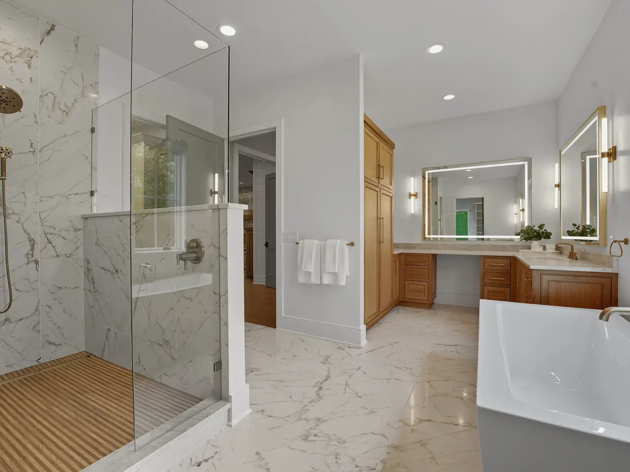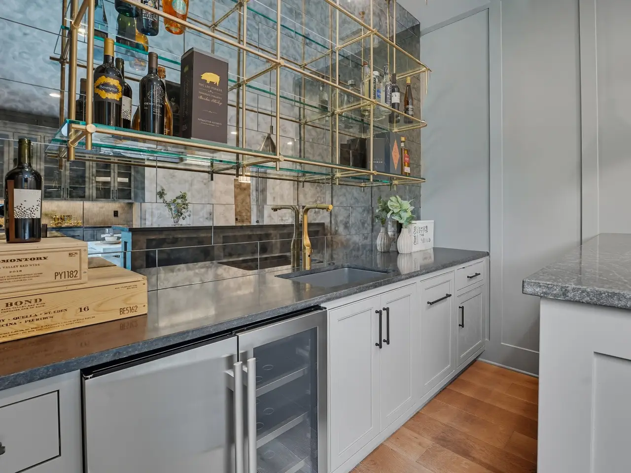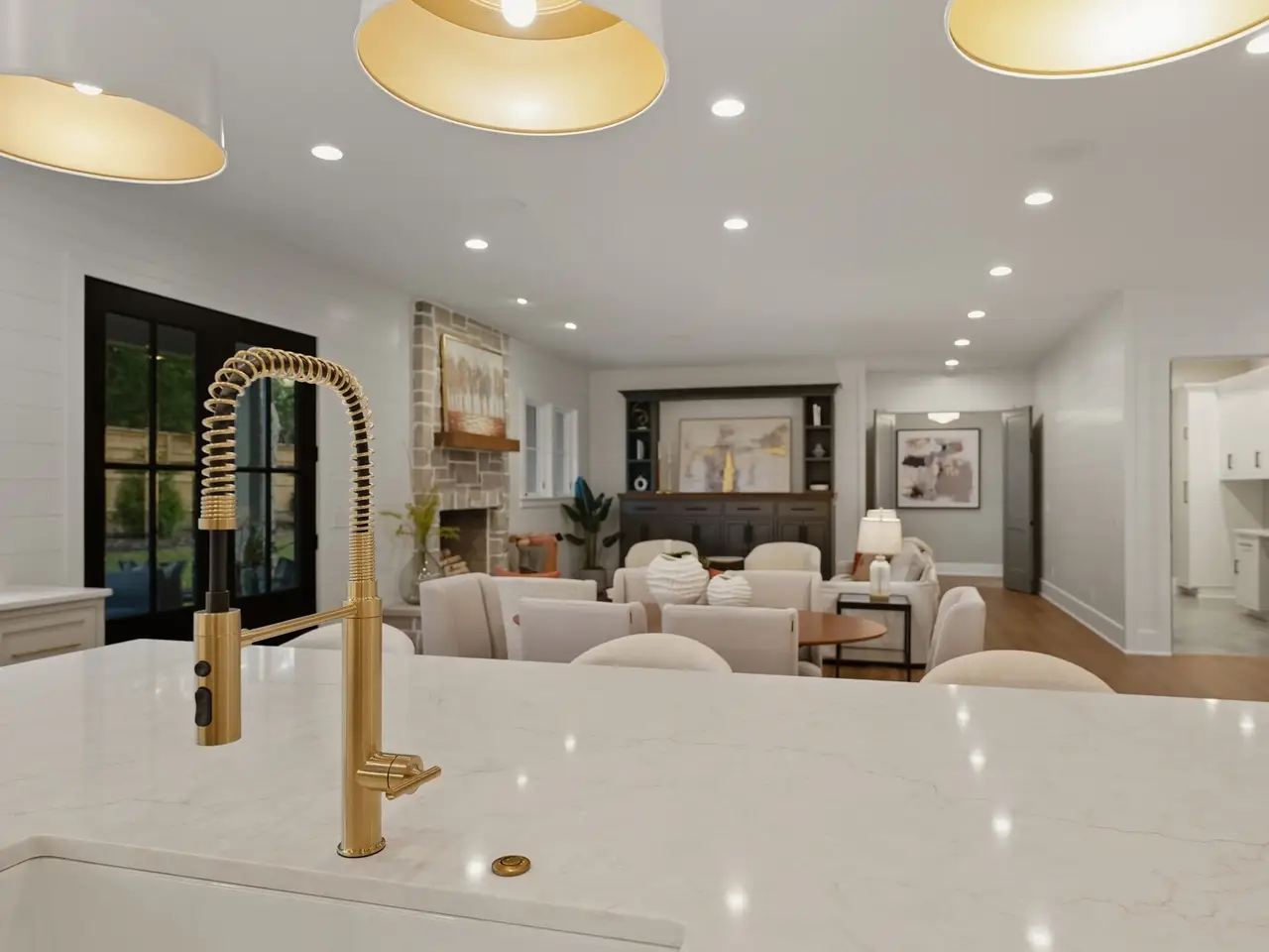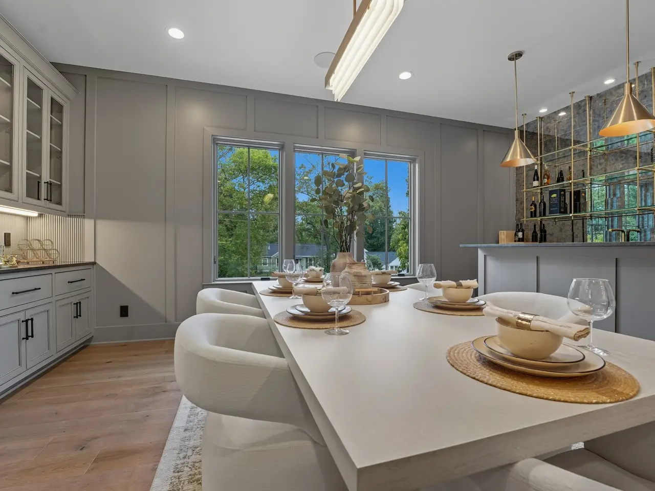 Every inch of this remarkable home reflects a deep commitment to quality, craftsmanship & timeless design. Built on a steel-reinforced poured concrete foundation w/brick construction, this residence combines unwavering strength w/exquisite architectural details. Classic bead board ceilings on front & back porches along w/Coppersmith gas lanterns set the tone for a home that's as beautiful as it is enduring. Upon entering, you are greeted by the soothing sounds of your personal Sonos amp system w/18 ceiling speakers & individual fader controls smartly placed throughout common living areas. Kitchen is a chef's dream w/Calacatta Miraggio Cove Quartz countertops, 48" Wolf gas range w/double ovens, Sub-Zero refrigerator &freezer columns, Bosch Benchmark dishwasher & Scotsman nugget ice machine. A large walk-in pantry w/ prep space completes the culinary experience. Great room centers on a dramatic wood-burning stone fireplace complemented by a custom TV console w/shelving & white oak accents. Separate spacious dining room is complete w/bar area serving as both a visual centerpiece & an entertainer's dream. It features black honed countertops, custom built-ins for glass & bottle storage, wine frig & ice maker & brass rail/glass shelving set against antiqued smoked mirrors. Inviting Primary suite is a retreat to behold w/a vaulted wood plank ceiling, Taj Mahal quartz surfaces, Brizo Litze luxe gold fixtures, double vanities & a graciously-sized soaking tub. Walk-in closet offers an expansive 20-drawer center island & specialty shelving like angled shoe racks. Main-level laundry offers extensive cabinetry w/over 160 cubic feet of storage--ideal for linens, luggage, and seasonal needs. Upper floor boasts a central gathering room from which 4 bedrooms rest, each w/ their own private bathrooms & walk-in closets. Another full laundry room is found here w/front-facing window that allows sunlight to wash across the patterned floor tile.