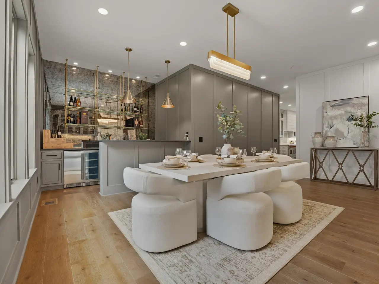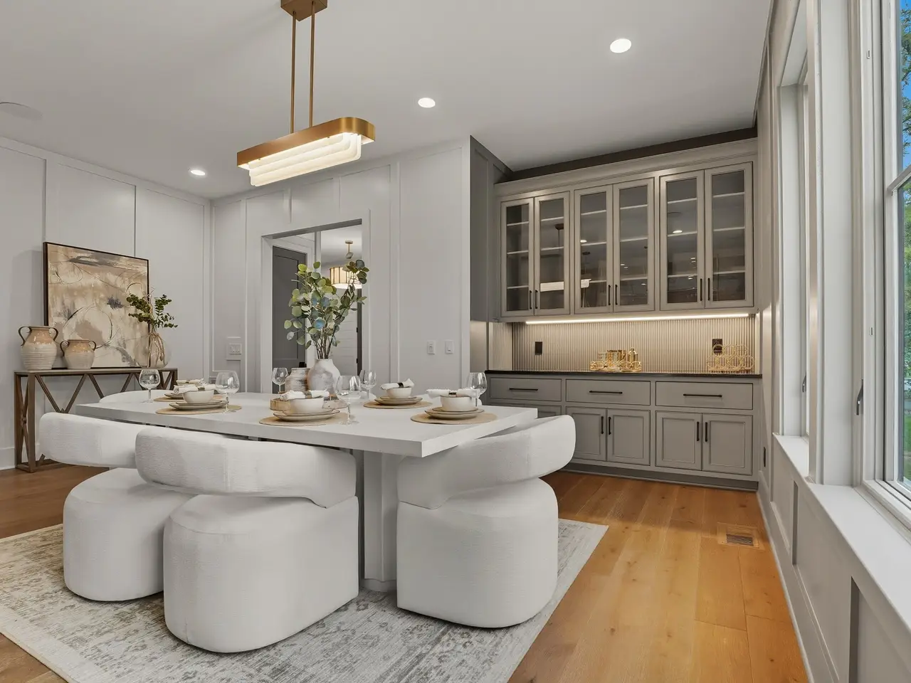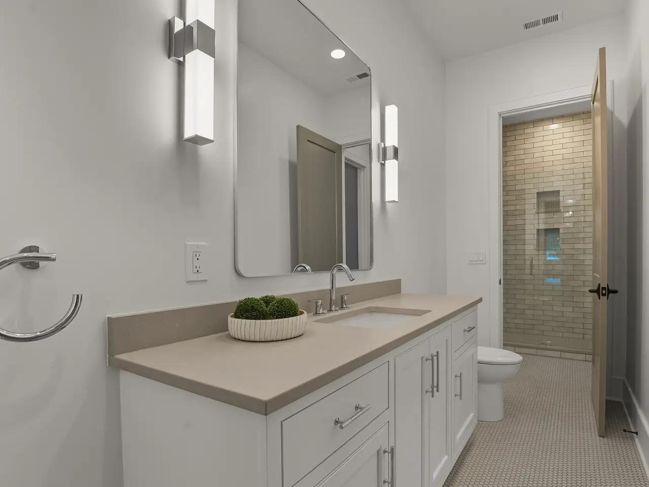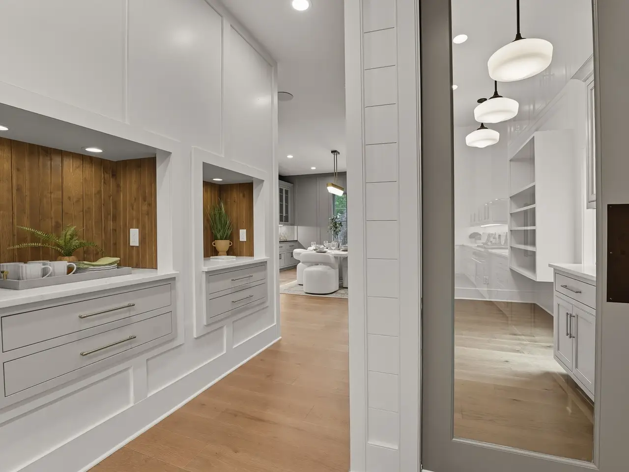 Every inch of this remarkable home reflects a deep commitment to quality, craftsmanship & timeless design. Built on a steel-reinforced poured concrete foundation w/brick construction, this residence combines unwavering strength w/exquisite architectural details. Classic bead board ceilings on front & back porches along w/Coppersmith gas lanterns set the tone for a home that's as beautiful as it is enduring. Upon entering, you are greeted by the soothing sounds of your personal Sonos amp system w/18 ceiling speakers & individual fader controls smartly placed throughout common living areas. Kitchen is a chef's dream w/Calacatta Miraggio Cove Quartz countertops, 48" Wolf gas range w/double ovens, Sub-Zero refrigerator &freezer columns, Bosch Benchmark dishwasher & Scotsman nugget ice machine. A large walk-in pantry w/ prep space completes the culinary experience. Great room centers on a dramatic wood-burning stone fireplace complemented by a custom TV console w/shelving & white oak accents. Separate spacious dining room is complete w/bar area serving as both a visual centerpiece & an entertainer's dream. It features black honed countertops, custom built-ins for glass & bottle storage, wine frig & ice maker & brass rail/glass shelving set against antiqued smoked mirrors. Inviting Primary suite is a retreat to behold w/a vaulted wood plank ceiling, Taj Mahal quartz surfaces, Brizo Litze luxe gold fixtures, double vanities & a graciously-sized soaking tub. Walk-in closet offers an expansive 20-drawer center island & specialty shelving like angled shoe racks. Main-level laundry offers extensive cabinetry w/over 160 cubic feet of storage--ideal for linens, luggage, and seasonal needs. Upper floor boasts a central gathering room from which 4 bedrooms rest, each w/ their own private bathrooms & walk-in closets. Another full laundry room is found here w/front-facing window that allows sunlight to wash across the patterned floor tile.