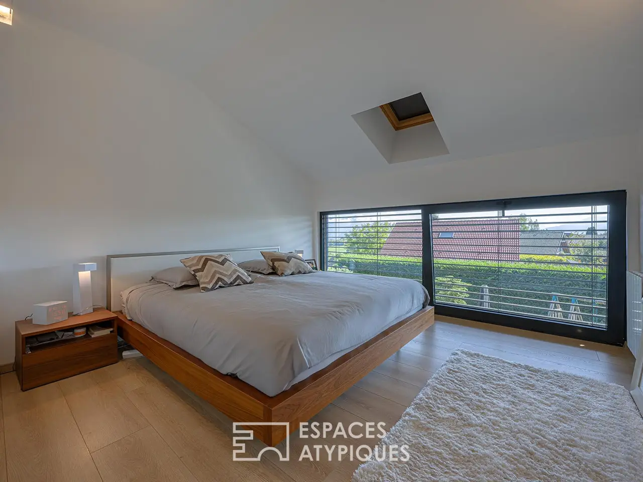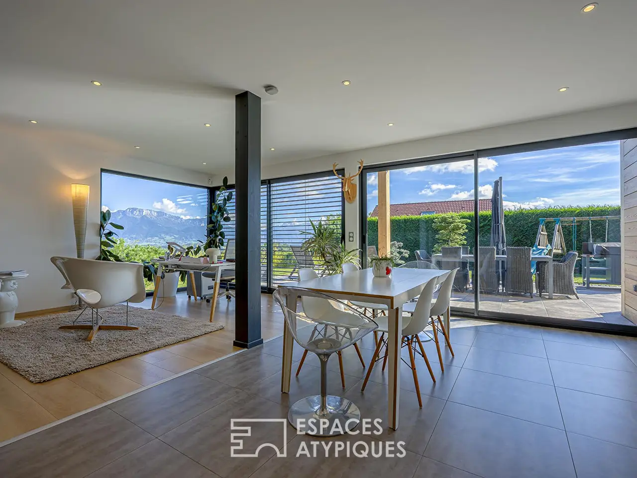 Nestled on the heights of Cuvat, this contemporary house of over 160 sqm Carrez law combines modern comfort, architectural elegance, and an exceptional panorama with an exceptional view.Built on a wooded plot of approximately 800 sqm and fully fenced, this property seduces with its architecture combining traditional construction and a wooden frame.Every detail has been designed to offer a unique living environment.From the entrance, the tone is set: generous volumes, integrated storage, and omnipresent light.The ground floor is organized around a vast living room enhanced by large bay windows extending the space outside with an unobstructed view present on all sides.The living room, the dining room, and the open kitchen, fully fitted and equipped, harmonize seamlessly.A separate laundry room completes this level, designed to combine aesthetics and practicality on a daily basis.Upstairs, a large hallway leads to the sleeping area, which consists of four bright bedrooms, one of which has a separate dressing room.Two elegant bathrooms, both equipped with walk-in showers, complete this level designed to comfortably accommodate an entire family.An additional room offers the possibility of creating an office or a games room, depending on the desires and projects of each individual.Outside, a large terrace offers a natural extension and constitutes a privileged space to enjoy convivial moments facing a magnificent unobstructed view.A wooded garden, a true cocoon of greenery, stands out as a haven of tranquility throughout the seasons.Several parking spaces as well as a garage complete the assets of this property.A successful combination of aesthetics, functionality and openness to nature, this contemporary house represents a rare opportunity in an area sought after for its calm, its quality of life and its exceptional panoramas.Energy class: C / Climate class: AEstimated annual energy expenditure: between EUR2,080 and EUR2,860 (reference year 2021, 2022, 2023)Information on the risks to which this property is exposed is available on the Georisques website: www.georisques.gouv.fr.REF. 2045EAAdditional information* 5 rooms* 4 bedrooms* 2 shower rooms* Floor : 2* Outdoor space : 840 SQM* Parking : 3 parking spaces* Property tax : 1 280 €Energy Performance CertificatePrimary energy consumptionc : 164 kWh/m2.yearHigh performance housing*A*B*164kWh/m2.yearC*D*E*F*GExtremely poor housing performanceEstimated average annual energy costs for standard use, indexed to specific years 2021, 2022, 2023 : between 2080 € and 2860 € Subscription IncludedAgency feesThe fees include VAT and are payable by the vendorMediatorMediation Franchise-Consommateurswww.mediation-franchise.com29 Boulevard de Courcelles 75008 ParisInformation on the risks to which this property is exposed is available on the Geohazards website : www.georisques.gouv.fr