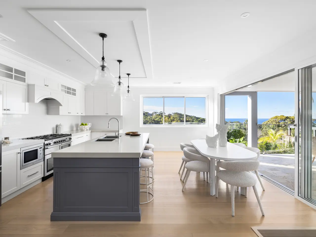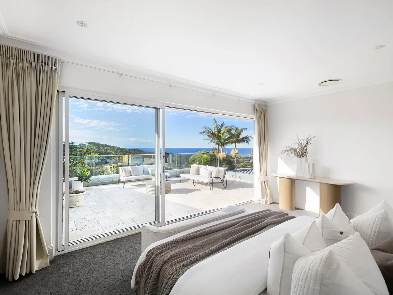 Expertly designed by Studio Haptic and meticulously reimagined for contemporary coastal living, this striking residence has a prized north-east aspect and uninterrupted panoramic ocean views. Set across an expansive 695sqm block, the home delivers three luxurious levels of living, blending architectural sophistication with effortless functionality. From sun-drenched interiors to refreshing sea breezes and premium finishes, every element has been thoughtfully curated to create a sanctuary of light, space and style. Perfectly positioned in a peaceful, elevated location close to Collaroy Plateau's vibrant village hub, sought-after schools and iconic beaches, this is executive family living at its finest. - Three levels of outdoor entertaining and sparkling in-ground pool - Home office, formal lounge and open plan living/dining flowing to terrace - Sleek gas kitchen with large walk-in pantry and quality appliances - Ground floor guest suite with ensuite, powder room and built-in robes - Master suite with terrace, his and her ensuite and walk-through robe - Manicured, private, secure front garden and double lockup garage - American oak floors, stone benches, marble tiles and Travertine terraces