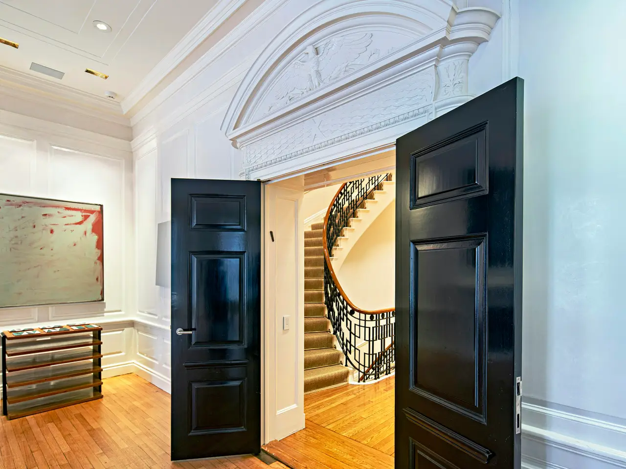 This elegant home was built by brothers, Elliott and John Cross (Cross & Cross) in 1930, as the "Hangar's Club", an exclusive club for business men involved in the development and financing of early aviation in America Esteemed Architect, Peter Pennoyer and architectural Historian Ann Walker, in their book, "New York Transformed: The architecture of Cross & Cross" describe the brothers and business partners as "Masters of their craft and well connected Society men, who oversaw the construction and development of dignified structures throughout New York City, from apartment houses to country estates of Society families and industry leaders" The Brother's achievements include diverse projects such as: The Art Deco RCA Victor Building (1931) , The Landmark Tiffany Building on 57th & Fifth. (1940), not to mention the exclusive 'One Sutton Place South cooperative building' designed in collaboration with Delano & Aldrich for the Phipps family (1927) George S. Chappell, writing about the property for the New Yorker magazine in 1931, said in these beautiful words: "A truly Georgian Design and a very successful one is that made by Cross & Cross. This might well be in some quiet London Street, so perfectly has the atmosphere of the gentlemen's club house being in our old Manhattan. The interiors of the property have the quiet intimacy and well bred quality predicated by the exterior . The interiors provided all the comforts of a well appointed house, that is, one designed for Captains of Business" In 2024, the dazzling outlook of 36 East 63rd Street is more evident than ever on this superb tree lined block: The striking beauty of its centered three story bowed facade from its base up in Flemish bond brickwork and limestone base and trimmed center window elevates the elegant design This glorious home consists of approximately 15,875 square feet of interior space and about 2,775 of outdoor (Garden and Roof terrace). The secure formal entrance is an immediate invitation into the clean and minimalist elegance of this home. A very large gallery graced by a wood-burning fireplace and extra large closet leads to the center Hall with its spectacular 1930 staircase ascending gracefully to the the top floor to reach a superb original cupola rising above it. This Townhouse offers the exclusive use of two large elevators: A private and a service elevator. A special feature rarely found in Townhouses. The residence has a traditional floor plan for an extremely refined lifestyle, it offers countless layout possibilities and is currently set up to accommodate 10 bedrooms, 10 bathrooms, an Eat in kitchen and staff quarters. The glamorous Parlor is simply divine in proportions, flow and light: The Grand Salon runs the entire width of the house in clean and contemporary aesthetics and features five beautiful floor to ceilings windows looking onto 63rd Street and its row of historic houses. The gracious flow is evident between the grand entertaining rooms of this floor. These also include a baronial Formal dining Room with its Parquet de Versailles as well a commodious Library - This elegant floor is an invitation for seamless entertaining on a very grand scale. Private quarters start on the Third floor, with an exceptional Master suite consisting of a 38.9'x26' luminous Master Bedroom with its five large windows looking onto the charming historic block, exquisitely proportioned "his and hers" dressing rooms and separate bathrooms. A cozy study with a WBFP completes this private retreat. The 4th Floor offers 4 beautifully proportioned bedrooms, each with ensuite bath as well as a staff room. The 5th Floor includes 2 large south facing bedrooms with ensuite baths, a front Loft like (36'8x19'6) room with bath, an additional staff room with bath and two tremendous storage rooms. The outdoors: The first floor features a garden/patio which runs the whole width of the residence, it is accessed through floor to ceiling French doors. In addition, a majestic 1,250 square foot rooftop terrace comes as an exclusive and most desirable amenity for elegant outdoor entertaining with spectacular City views. The lower level of the mansion includes a multitude of storage rooms, a large laundry room, an additional working kitchen connected to main one above by either the service staircase or dumbwaiter, the impeccably maintained mechanicals and a large screening room/Home theatre. 36 East 63rd is certainly one of the most important mansions today in New York: A Townhouse for the ages.