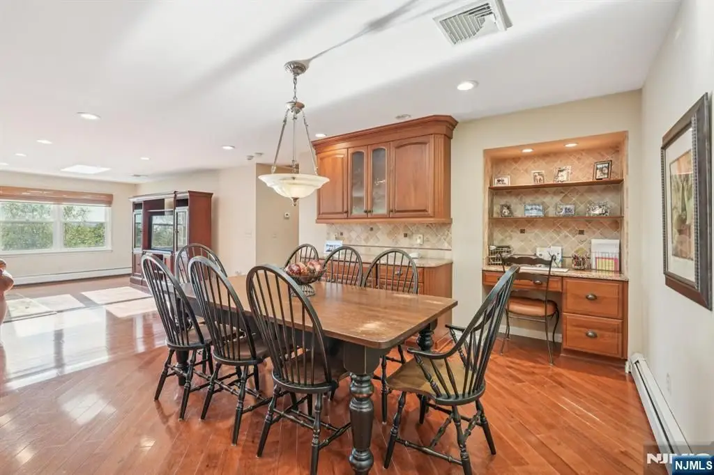 Welcome home to this beautifully maintained 4,900 sq ft Ranch nestled on a thoughtfully landscaped lot. Designed for effortless one-floor living, this spacious residence combines comfort, elegance, and functionality. Step into the welcoming entry foyer that opens to the bright, open-concept main living area. The spacious living room invites relaxation with its large windows and cozy gas fireplace, seamlessly flowing into the elegant dining room adorned with custom moulding an ideal setting for intimate meals and lively gatherings. The home chef's dream kitchen features custom cabinetry, marble countertops, stainless steel appliances, built-in desk, and separate dining area, opening to the inviting family room with large windows, fireplace, and access to the deck perfect for indoor-outdoor living. The main level offers two primary suites, each with a private en suite bath, along with two additional bedrooms and a full bathroom. The expansive finished lower level provides versatility with a second family room, gas fireplace, den overlooking the backyard, sliding doors to the patio, a third primary suite, additional bedroom, full bath, laundry, and ample storage. Outdoor living is equally impressive with a deck for al fresco dining, a patio ideal for entertaining, and a fully fenced yard offering privacy and space for recreation. Conveniently located near NYC transportation, shopping, and dining, this exceptional home offers the perfect blend of space, style, and convenience.