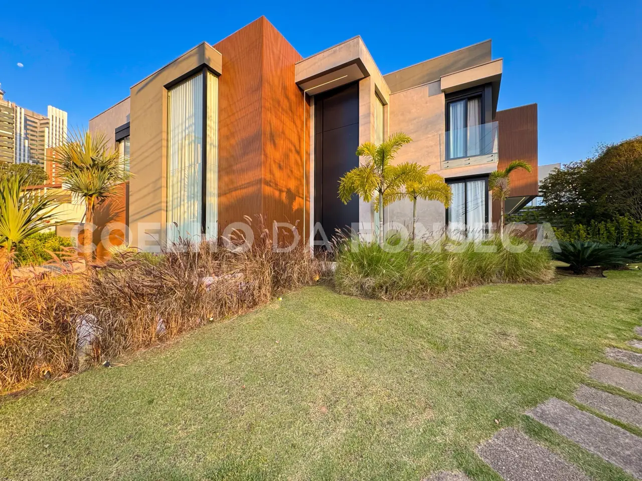 Beautiful house close to the gate. Generous living room with double height ceiling, eco-friendly fireplace, rooms facing the garden. Home theater, wine cellar and gourmet space designed for 3 rooms and integrated with the kitchen. High-end finishes. Leisure area with swimming pool covered in Hijau jade Palimana volcanic stone, jacuzzi and deck. All of this surrounded by beautiful landscaping and a vertical garden. House in the ALPHAVILLE 2 condominium, with 900m² built area, 5 bedroom(s), 5 suite(s), 8 parking space(s), 9 bathroom(s), swimming pool, accepts exchange, corner, sauna, air conditioning, maid's room, balcony, elevator, solar heater, double height ceiling.