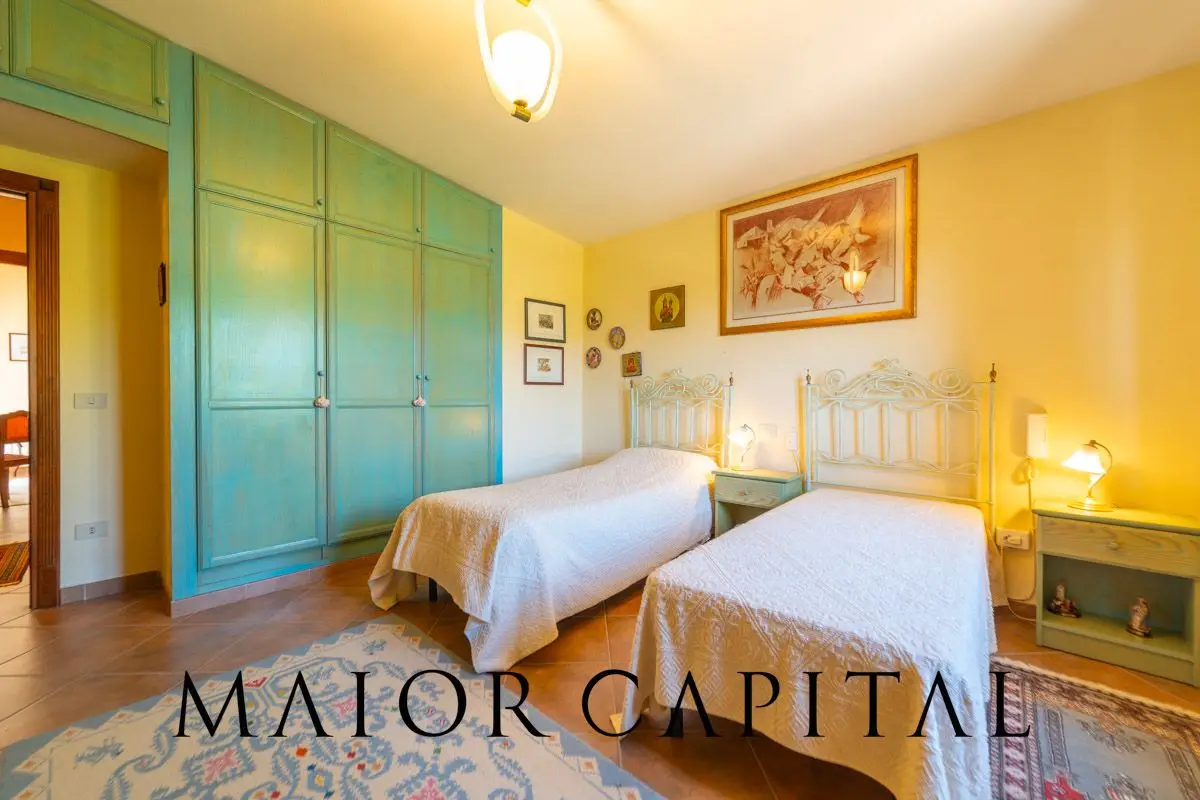 An authentic corner between sea, nature and tradition Just 10 minutes from the centre of Olbia, in the quiet, green locality of San Vittore, stands a charming country house surrounded by two hectares of flat land. Its reserved but easily accessible location makes it perfect for those who wish to live immersed in nature, without giving up the convenience of city amenities. The architectural style is inspired by the Gallura tradition, with exposed stone walls and typical details that give the property an elegant and timeless atmosphere. An ideal context for those seeking a prestigious residence close to the most beautiful beaches and the renowned Costa Smeralda™. Interior spaces on three levels, between comfort and authenticity The country house is on three levels connected by internal stairs. On the ground floor, we find a large, bright living room with two panoramic terraces, ideal for enjoying the natural light and the surrounding landscape. The area is completed by a spacious bedroom and a study, currently used as a workspace but easily adaptable to become a second bedroom, according to your needs. The level also includes a practical guest bathroom, which completes the functionality of the living area. The semi-basement level, with direct access to the garden, houses a spacious, rustic-style kitchen that creates a warm, traditional atmosphere, a second bathroom and various rooms currently used as a pantry and storage room. These spaces are suitable for multiple uses: fitness area, wellness centre or guest flat. The first floor, entirely dedicated to the sleeping area, contains three bedrooms, one of which has an en suite bathroom, a second bathroom and large panoramic verandas with open views over the Gallura countryside and the island of Tavolara. Outdoor area with vineyard and barbecue area The house is immersed in a well-kept garden with century-old trees, Mediterranean plants and stone paths that enhance the entrance. The grounds of approximately 20,000 sqm include large green areas, a vegetable garden, orchards, a small vineyard and a separate structure in Sardinian stazzo style, which houses a rustic kitchen, a wood-burning oven and a bathroom. One of the estate's most striking settings is the exclusive barbecue area, cleverly placed under a wooden canopy, where a traditional wood-burning oven takes centre stage in a space designed for the most authentic conviviality. Here, the taste of tradition meets the elegance of simplicity, offering an ideal setting for outdoor receptions, summer dinners and moments of refined sociability surrounded by greenery. A corner of rural and timeless charm, expressing the authentic essence of the Gallura countryside, designed to be experienced with simplicity, comfort and style. Strategic location in the heart of Gallura The property enjoys an ideal location: a short distance from Olbia, a dynamic city with an international airport, marina, schools, hospitals and shopping centres. The spectacular beaches of Porto Istana, Porto Taverna, Capo Ceraso, and the exclusive landscapes of the Costa Smeralda™ can be reached in a few minutes by car, making this country house perfect both as a main residence and as a valuable investment. In brief: Ground floor * Panoramic terraces * Large living room * Bedroom * Study * Bathroom First floor * Master bedroom with en suite bathroom and access * to veranda Master bedroom with access to veranda * Twin bedroom * Bathroom Semi-basement * Main kitchen * Basement room * Bathroom Features * Fireplace * Independent heating * Pantry/storage room * Laundry area * Cellar * Outdoor wood oven * 20,000sqm plot * Uncovered parking space * Double garage