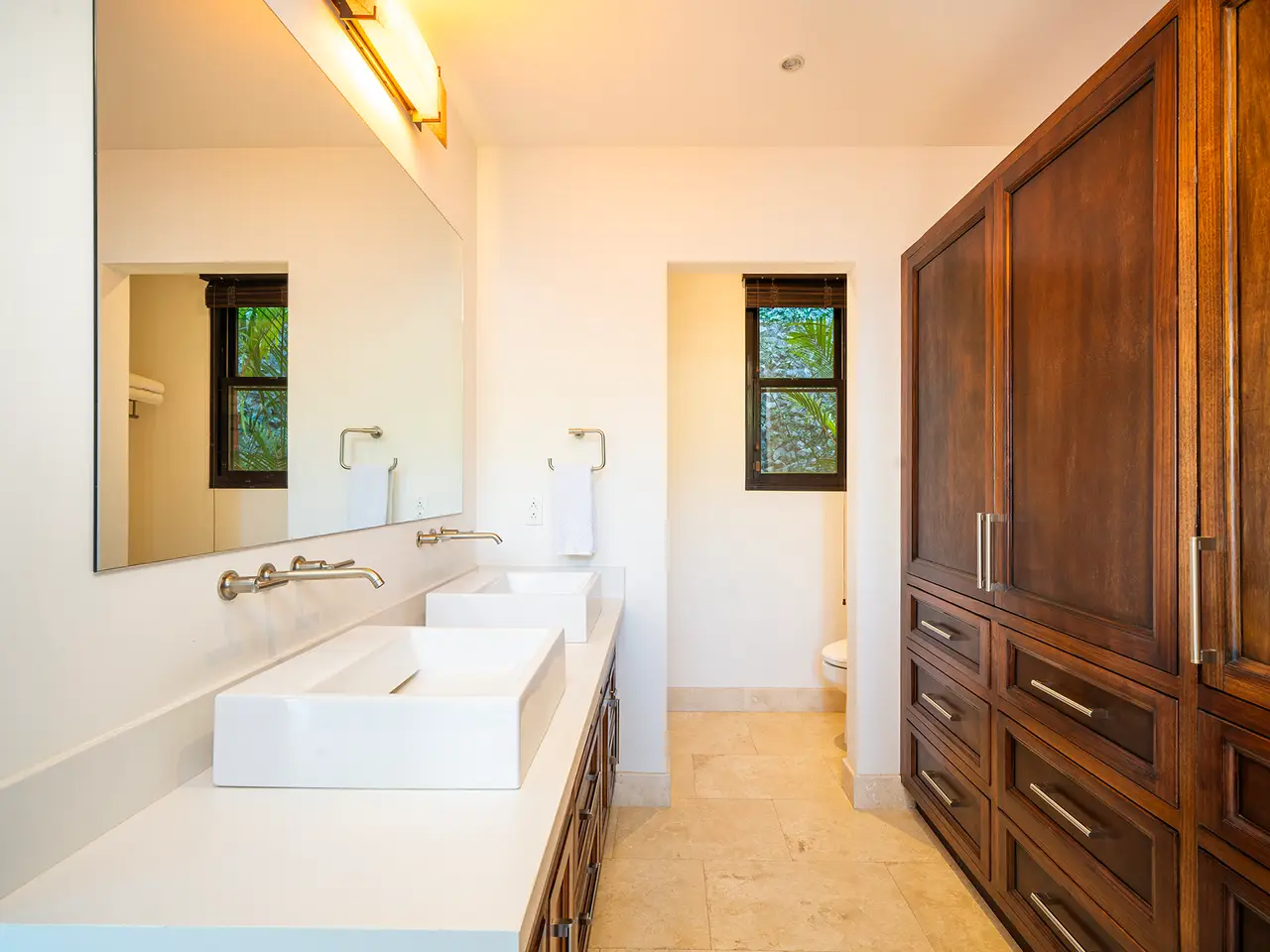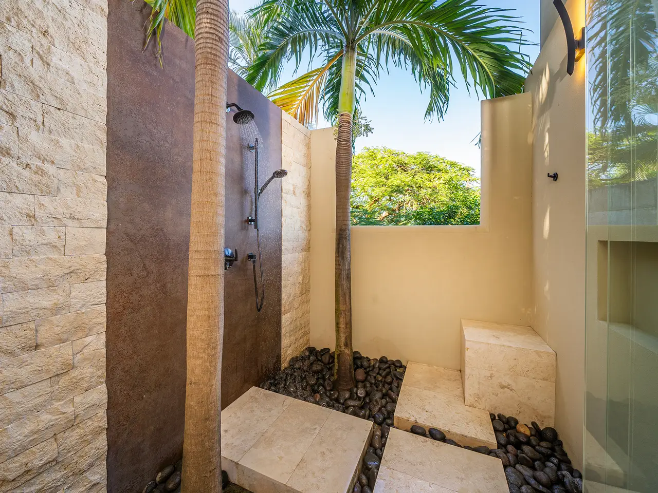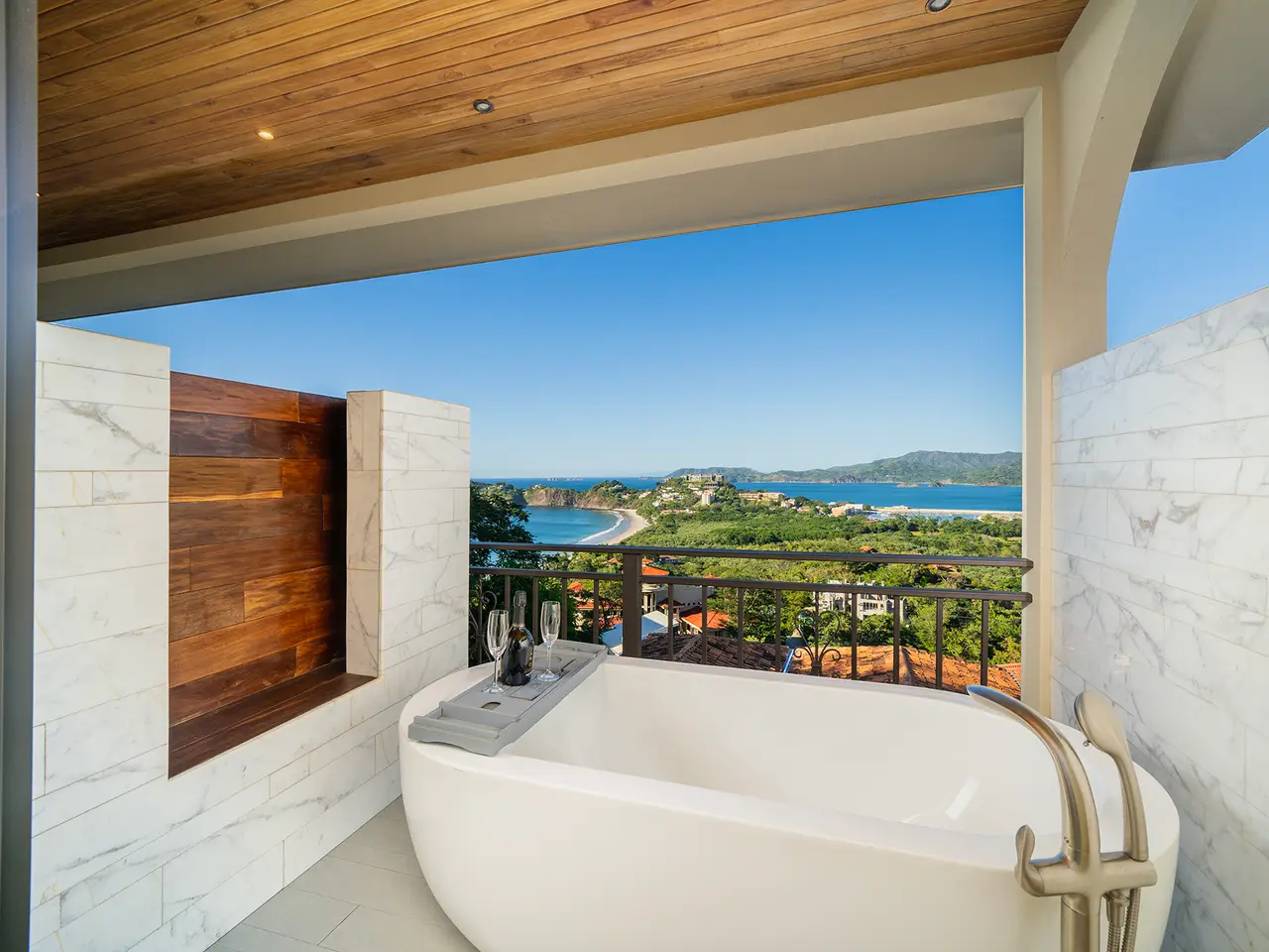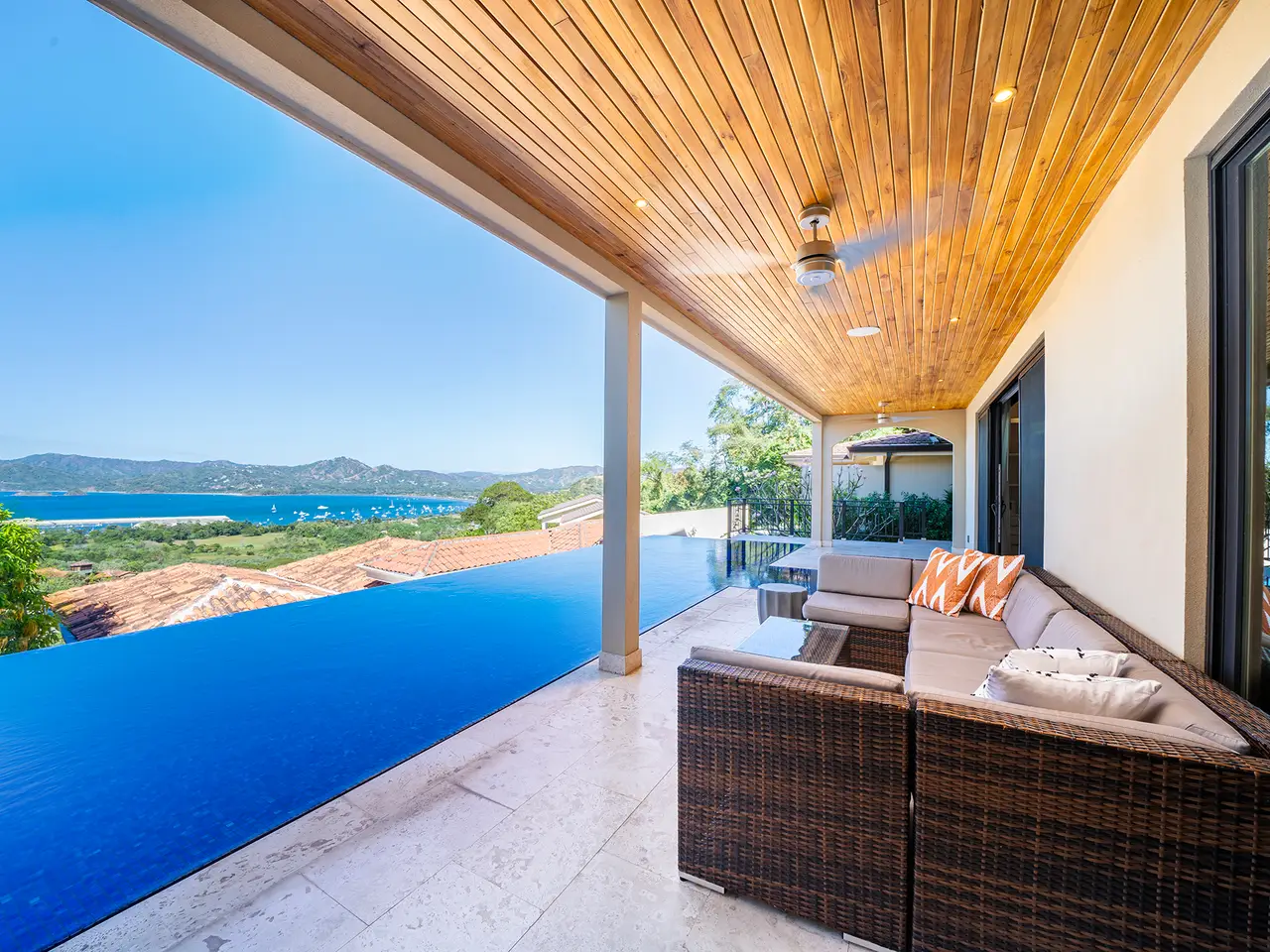 Welcome to Casa Todo Bien and Guest House, a masterpiece of luxury living nestled into the prestigious Southridge mountainside of Playa Flamingo. This opulent estate boasts an expansive main home with 4 bedrooms, and 4.5 baths. The property also includes a luxury guest house, featuring 1 bedroom and 1 bath, a full kitchen, a private plunge pool, and a floatation spa suite with an additional 1.5 baths. With a total construction spanning 7500 sq ft, this residence is a testament to elegance and sophistication. This home has some of the best views in the area and is so close to the beach, you will hear the crashing surf. Best of all, it’s just a short, ten-minute walk down to the beach! The views from the property include the beautiful white sands of Playa Flamingo, the brand new Flamingo Marina, the bay of Potrero all the way north to Las Catalinas, and even the mountain ranges of Nicaragua. As you enter the main house, Venetian plaster walls, travertine floors, a sculptural curved stairway, and a custom-made Italian hand-blown glass chandelier set the tone for the grandeur that awaits. Hand-forged lighting fixtures, imported from Vermont, illuminate the space, creating a timeless ambiance throughout the home. Oversized sliders allow an expansive view of the zero-edge, saltwater lap pool with a Jacuzzi and LED lighting. An outdoor shower is conveniently located nearby the pool. The pool deck area also features custom cabinetry housing a five-burner Cal-Flame barbeque grill. A granite countertop and sink round out the outdoor kitchen. The main house is spread over three levels. The first level includes an open living and kitchen area. The ceiling dramatically soars two stories over the cooking space, with a large, arched window that fills the living environment with natural light. The gourmet kitchen is equipped with GE’s Café line of stainless-steel appliances and includes a five-burner stove with two full ovens. The beverage center resides along a side wall of the kitchen, providing easy access to a wet bar with a mini-fridge and kegerator. A custom pantry, laundry room with dog wash, powder room, and two-story “loftice” (office with loft) are also included on the main level. Custom woodwork in the office includes a desk, cabinetry, window seat, and bookcases. The office loft is accessible by ladder – or a hidden entrance on the second floor. A dumbwaiter just off the kitchen provides a convenient way to deliver drinks, meals, or luggage to the second and third floors. Audio zones in the kitchen, pool terrace, office, and third-floor suite add the perfect touch that makes this home an amazing setting for entertaining. All four of the home’s bedrooms are designed as primary suites and can comfortably accommodate king-size beds. Each suite has ocean views from the bedroom AND the bathroom. The main level includes the Garden Suite, with a bidet and two showers – one of which is outdoors, flanked by palm trees, with a view overlooking the bay of Potrero, with its fishing boats and catamarans. The king bed faces the view of the pool, ocean, mountains, and marina. The second floor includes two more primary bedrooms with ensuites. These bedrooms share a spacious balcony to enjoy the incredible ocean and mountain views that only get better with each floor. The Marble Suite bath highlights Carara marble on the walls and vanity. Step outside to the elegant soaking tub, and sip a glass of wine while enjoying the most incredible sunset view in all of Flamingo. An additional second-floor suite is currently used as an art studio. A large mirror on the bedroom wall conceals a surprise – a secret door to the loft in the office. The loft area includes tigerwood floors, a television, and one of the home’s four audio zones. It’s a great spot to escape and relax. This suite also features the most spacious bathroom in the house, with a huge shower and window with an ocean view. The third-floor Penthouse Suite is the largest of the home’s four bedrooms. The views are expansive and breathtaking. The bathroom includes a shower system with shower head, wand, and wall jets – and again, those ocean views! With a stunning granite accent wall, and a huge full-wall mirror, this bathroom is an extravagant, spa-like retreat. There are two outdoor spaces in the suite: The balcony includes a built-in bench and a custom beverage center with mini-fridge. An additional spacious deck is the perfect place to practice yoga, enjoy sunset drinks, or spend a romantic evening stargazing. Among the many thoughtful touches in this home are a professionally installed alarm system, six outdoor security cameras, high-speed fiber optic internet (up to 200 Mbps), and wifi boosters. A whole-house Generac generator engages automatically in the event of power outages. The Guest House is a fully independent haven with its own pool, ocean views, full kitchen with dishwasher, single-stall garage, and private laundry room on the first floor with a large-capacity washer and dryer. This home is built with the same level of luxury and quality as the main house. Natural stone highlights of granite, slate, and travertine are found throughout the home. The private, infinity-edge plunge pool includes both a spill-through waterfall and a weeping wall, which creates the soothing ambiance of a gentle rainfall. A beautiful laurel wood ceiling and a relaxing soaking tub with a pool view make the bedroom suite feel extraordinarily romantic. The guest house has plenty of space to host extended family, or provide a separate and private space for rental income. Another exclusive feature of this property is the flotation spa, located on the first level of the guest house. Flotation therapy is a deeply relaxing experience. Floating in complete darkness and silence, buoyed by 1,200 pounds of dissolved Epsom salt, provides a super-infusion of magnesium that is absorbed transdermally. This vital mineral helps to improve muscle function, redu