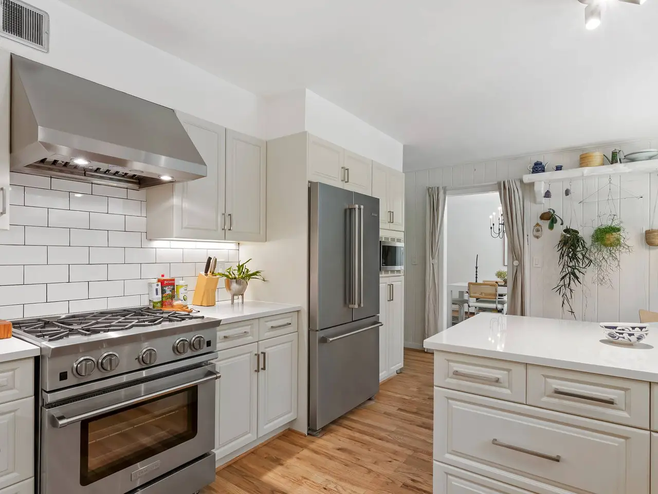 Top-of-the-line appliances: Blue Star gas range, matching refrigerator/freezer