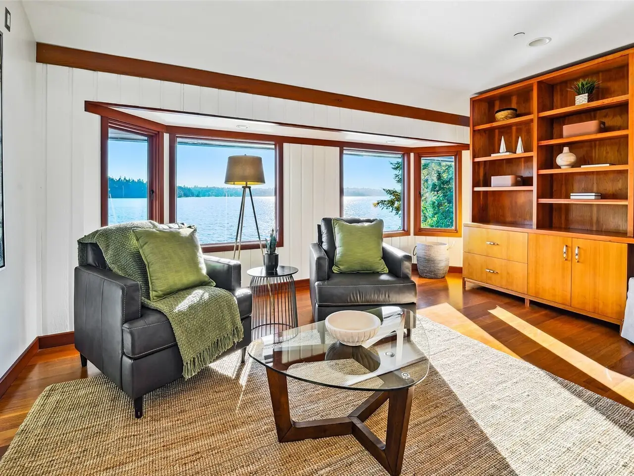 Cruise home to a spectacular legacy residence found tucked upon the coveted western shore of Mercer Island. Set upon 137+/- feet of private no bank waterfront, this soul satisfying, custom five bedroom residence was conceived in 1974 with active entertaining in mind. The heart of the nearly 5,200sf home is centered with an updated kitchen allowing a natural flow indoors & out to entertaining spaces and places of welcoming retreat. The primary suite offers tranquil views of Lake WA and Seward Park from the private deck, an ample walk in closet, and luxurious five piece bath. Additionally, the second level enjoys two bedrooms with west facing lake views & large bonus/flex room- perfect for play, media or workout studio.