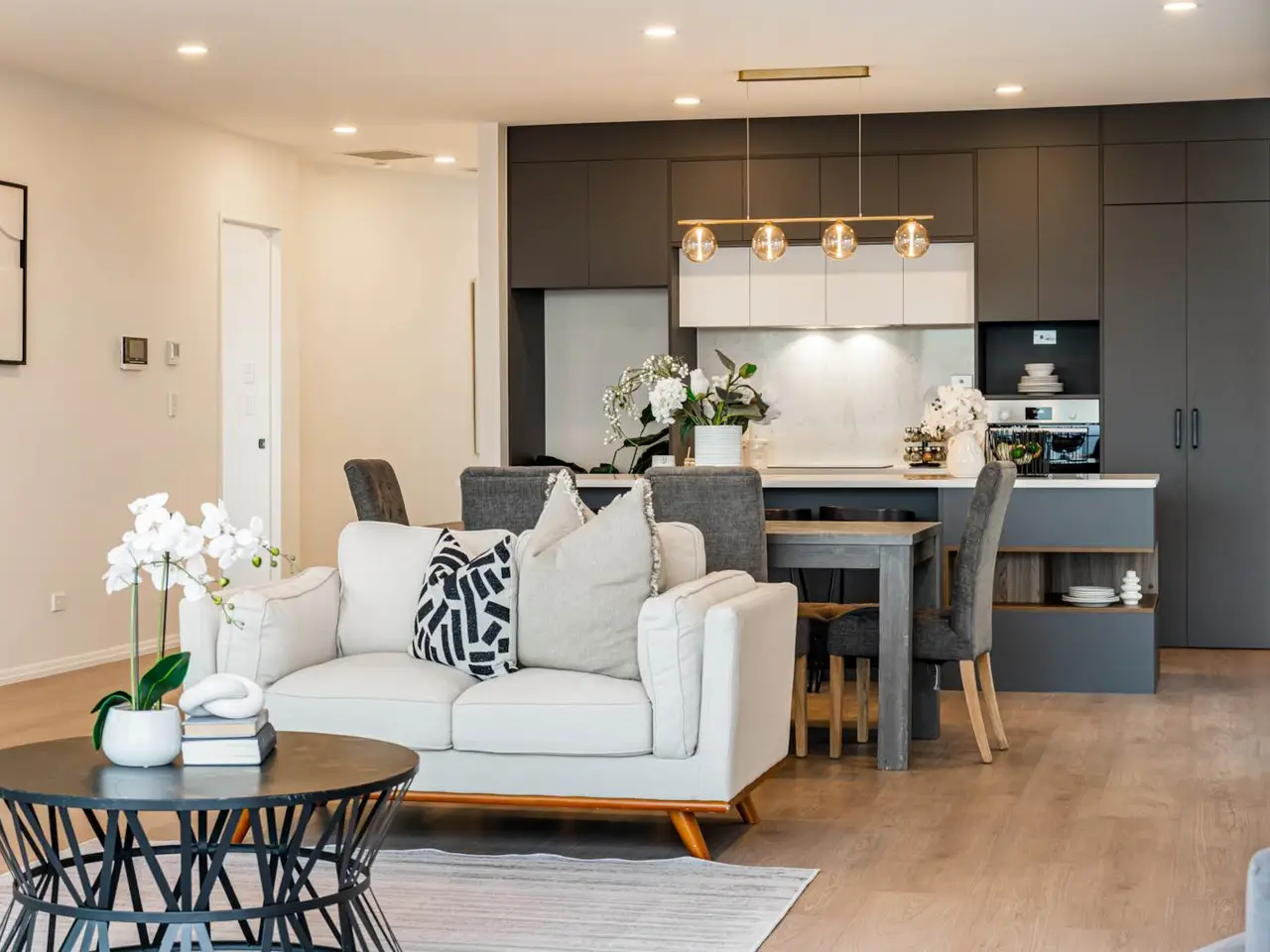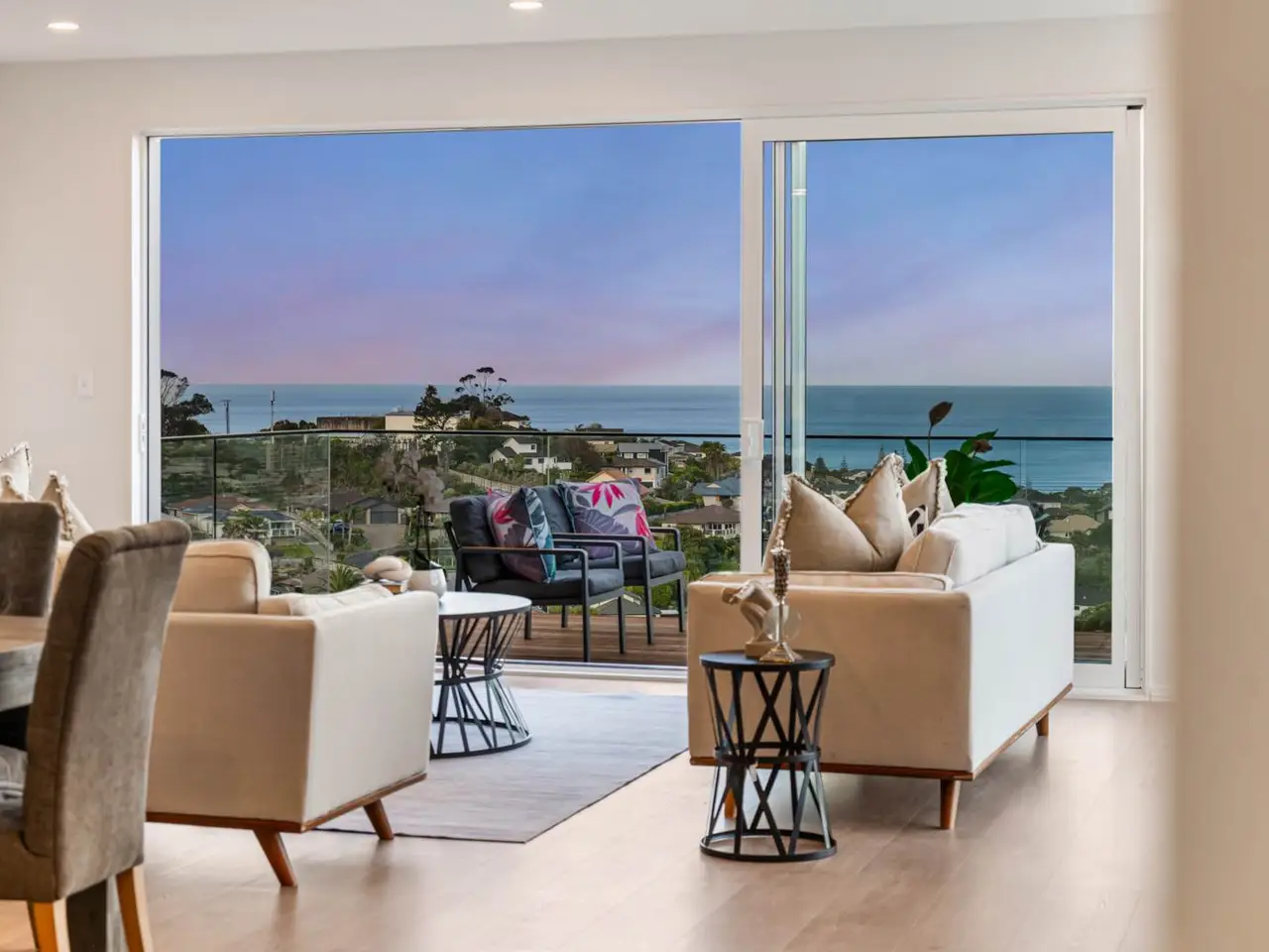 Open-plan living with large balcony